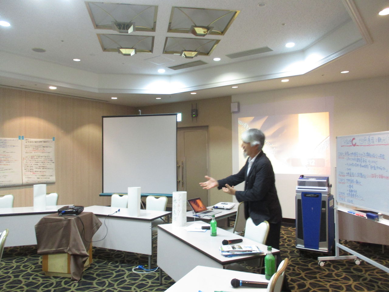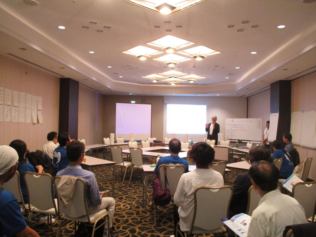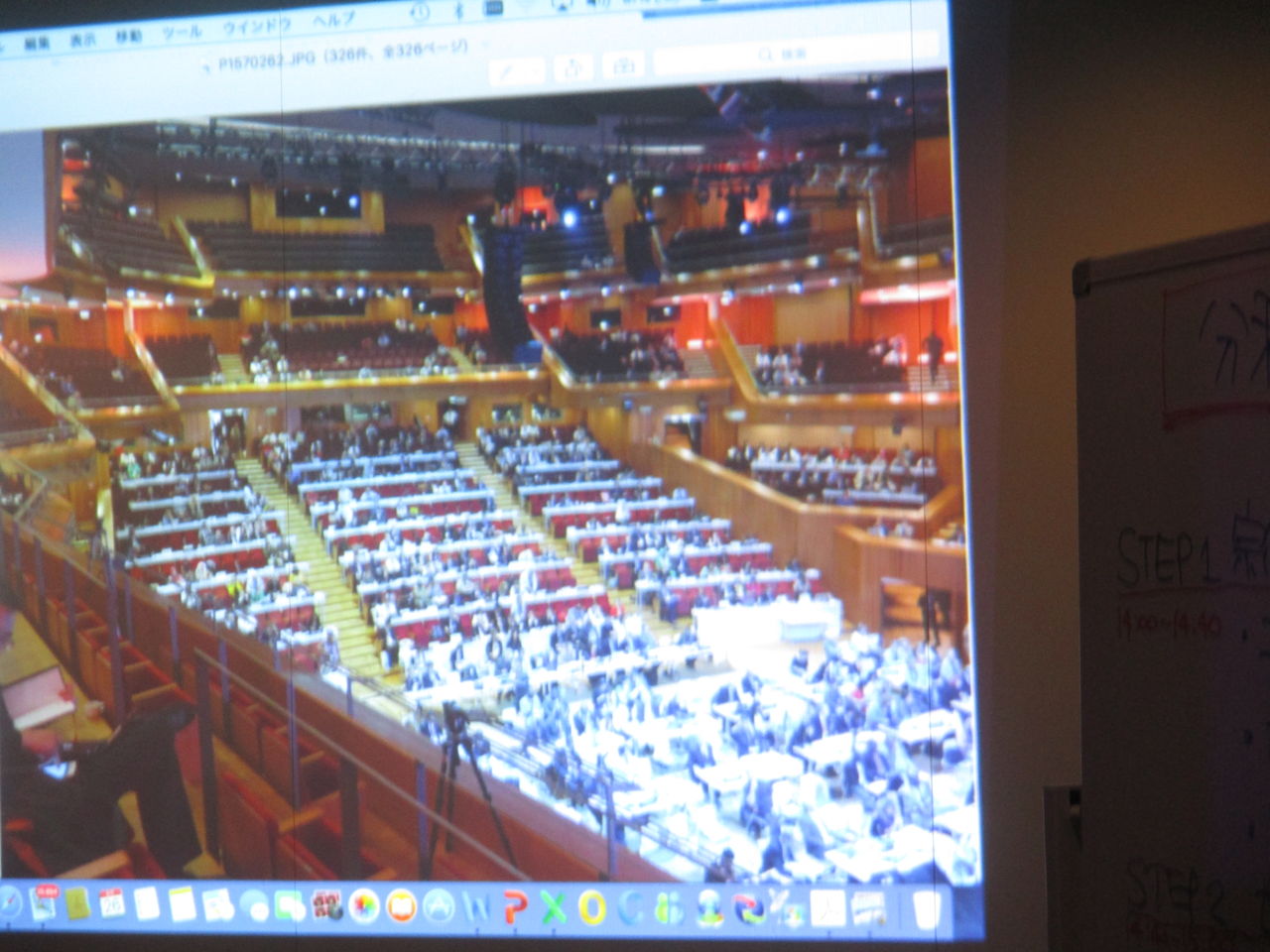 お愛嬌ですが、会場はユネスコ世界遺産委員会の国際会議風に机を並べられました。参加者は35名を超え、2時間半にわたり熱心な意見交換がなされて行きました。