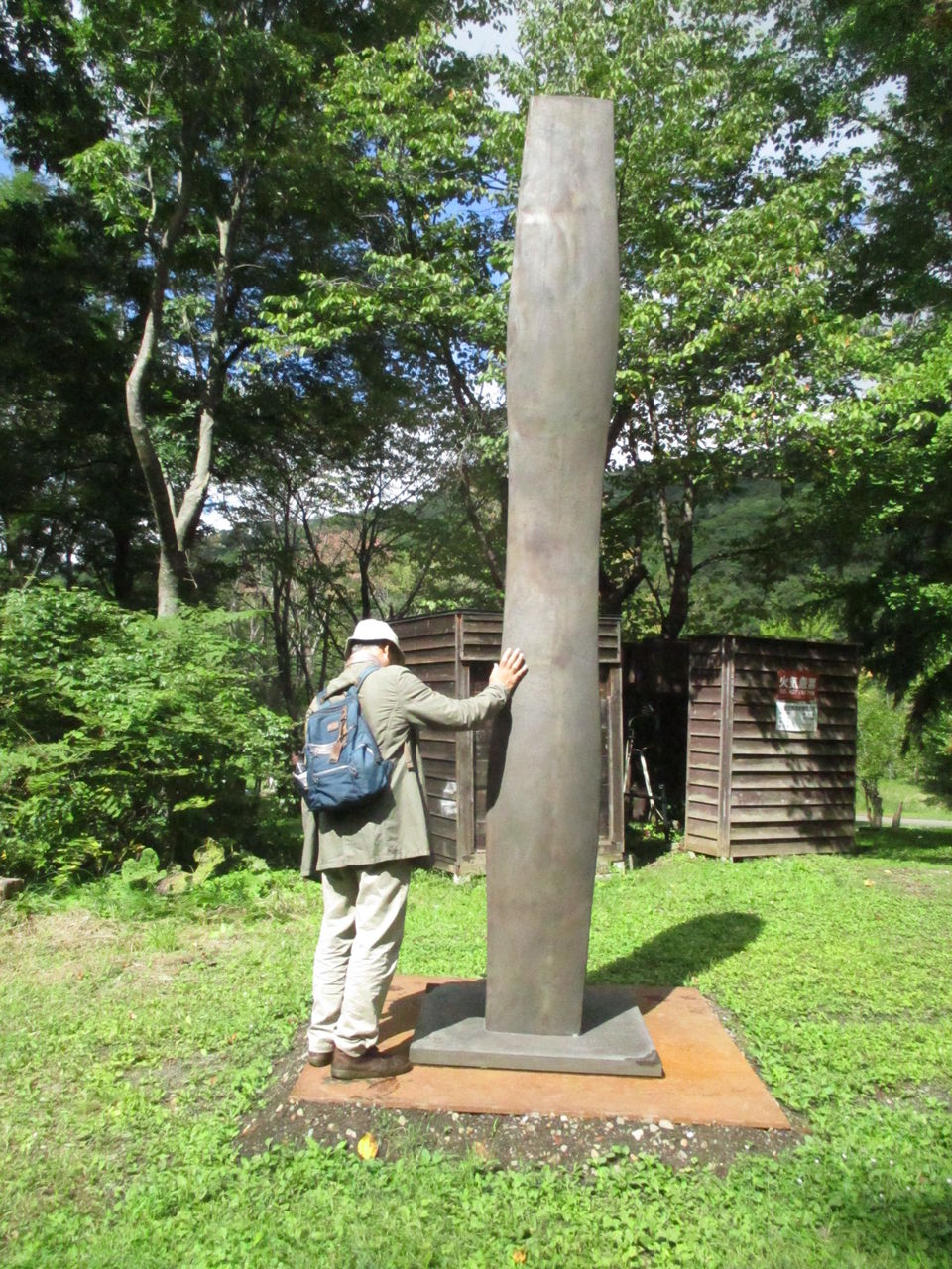 ↓は、アルテピアッツア美唄から更に奥にいった我路のファミリー公園内にある安田侃『炭山(ヤマ)の碑』です。これは、炭鉱で亡くなり今も地下深くに眠る人々への鎮魂の碑として美唄市からの要請を受けた安田侃氏が構想し設置したと聞いています。アルテピアッツア美唄より10年以上前の作品です。