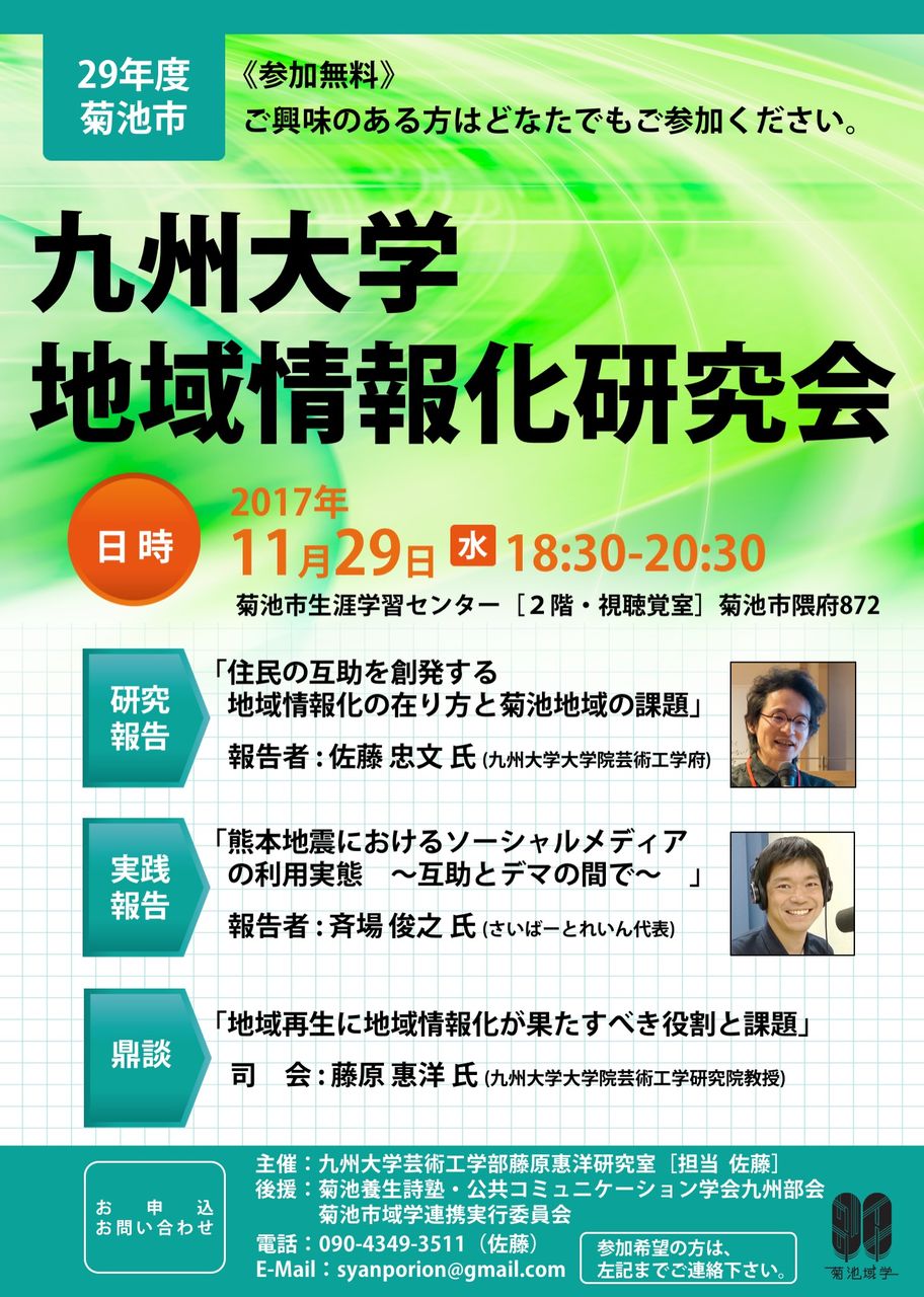 熊本県菊池市で、来たる11月29日に九州大学地域情報化研究会を開催します。