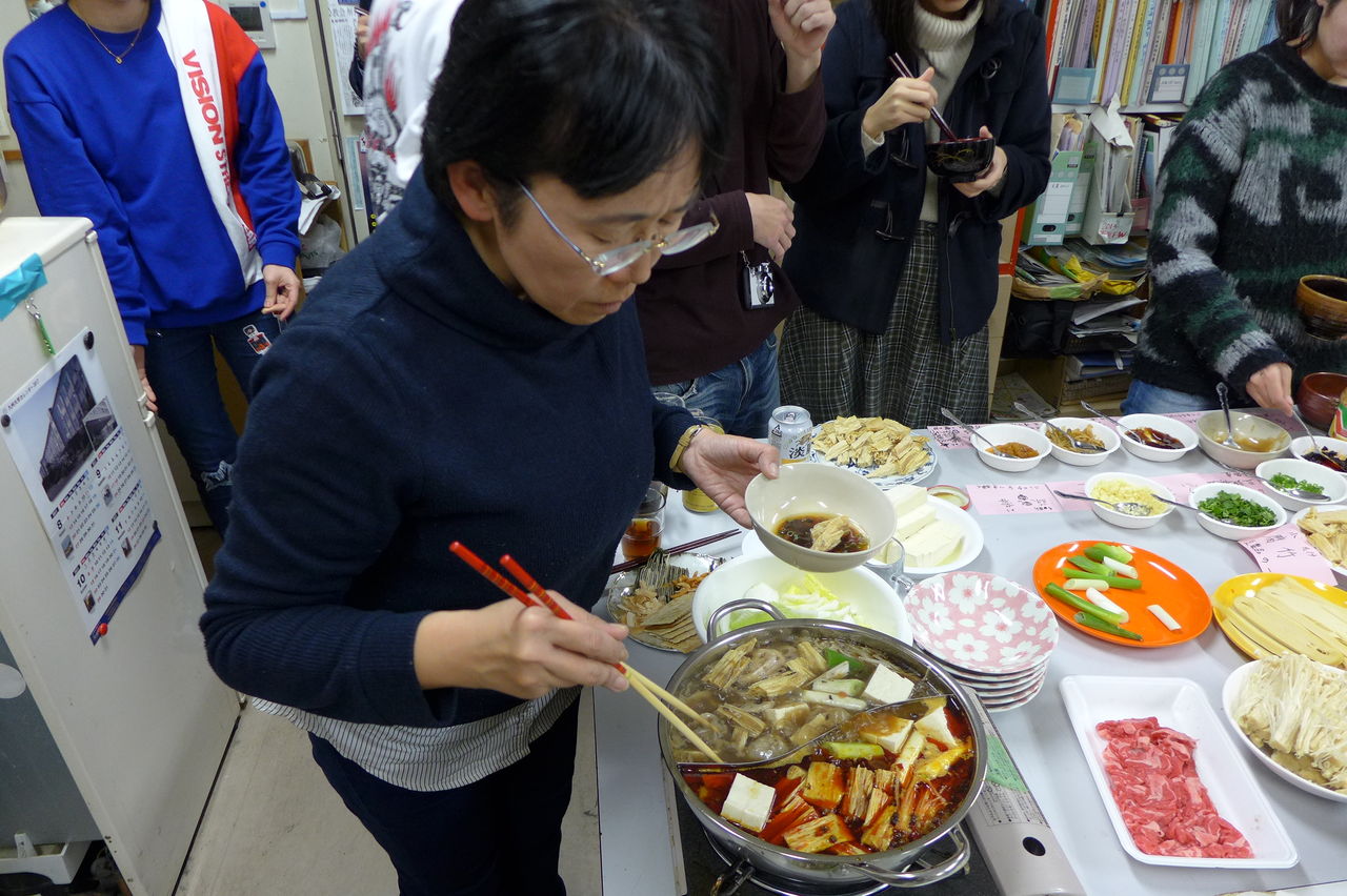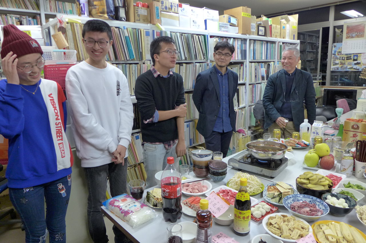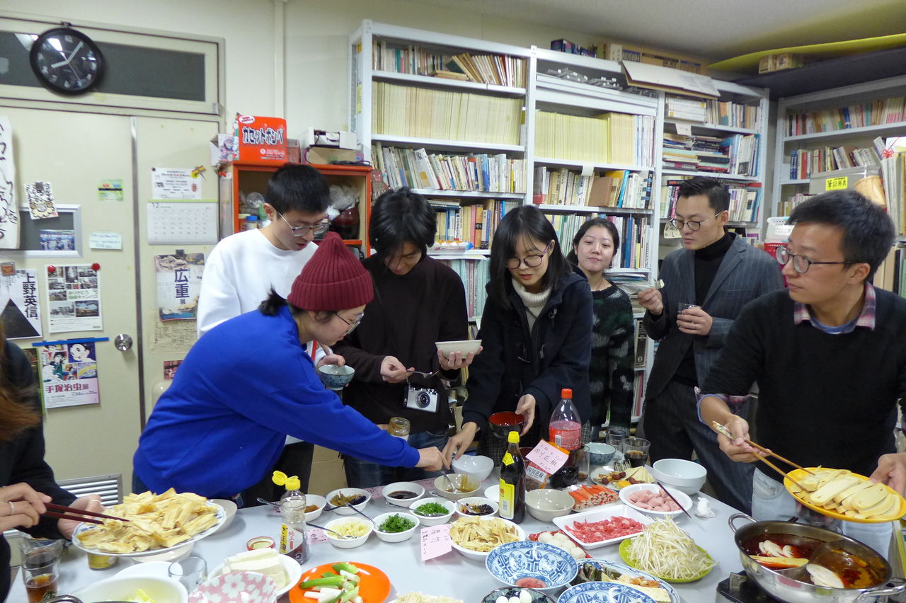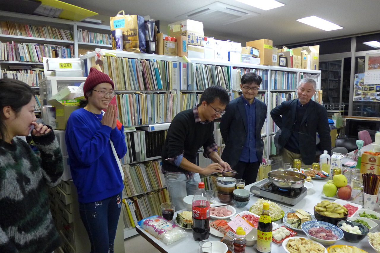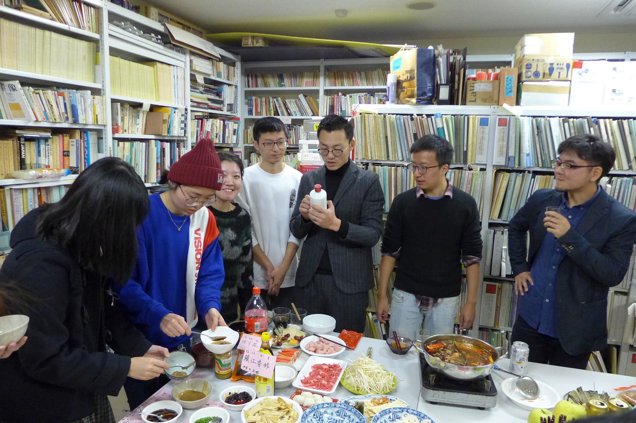 ◆ 幹事役 冬まっしぐらの季節、今回の趣向は、幹事役にふ印ラボのニューフェース研究生の高勝蘭さん(中国・重慶大学卒)と学府環境・遺産デザインコース藤田直子先生研究室の唐明暉くん(中国・四川省成都市出身)を迎え、本格的四川料理・重慶火鍋です!→唐くん、みんなが美味しい美味しいと驚くほどの、たいへん見事なシェフぶりでした。