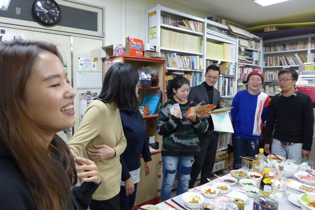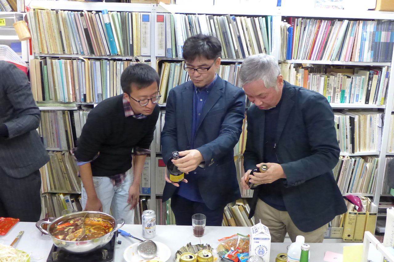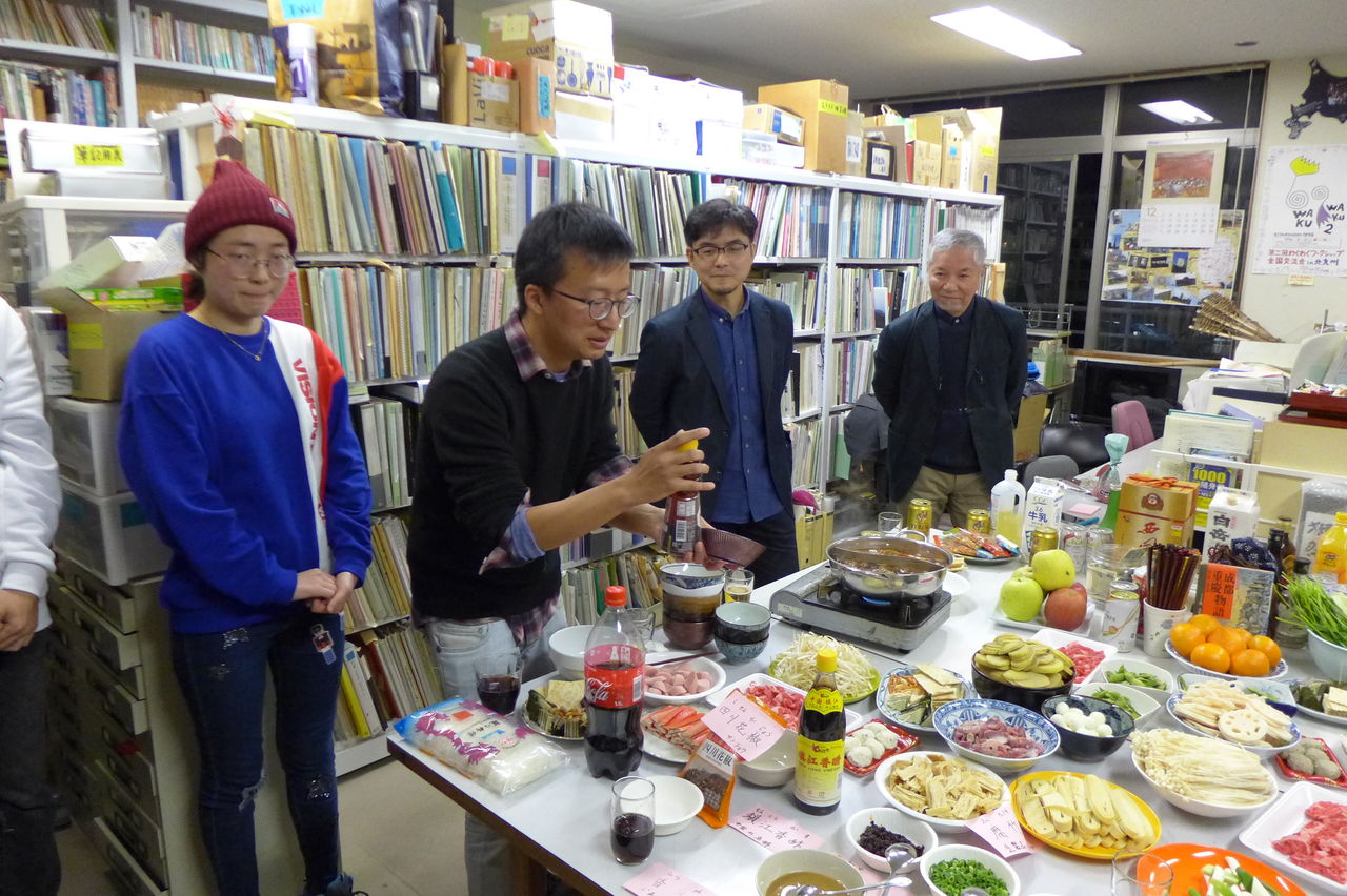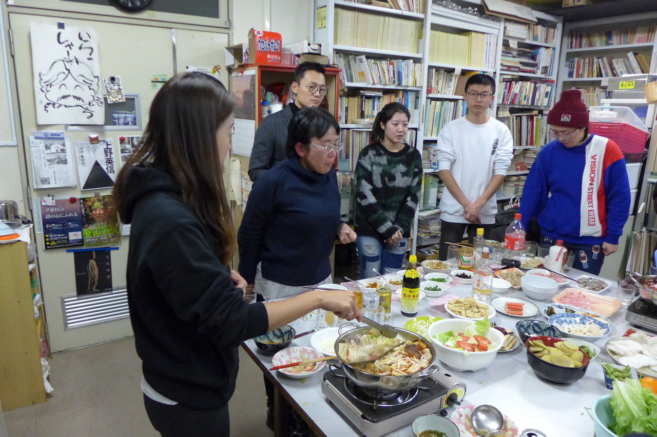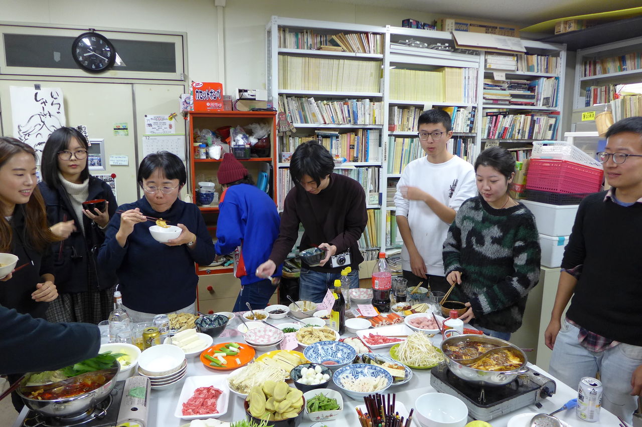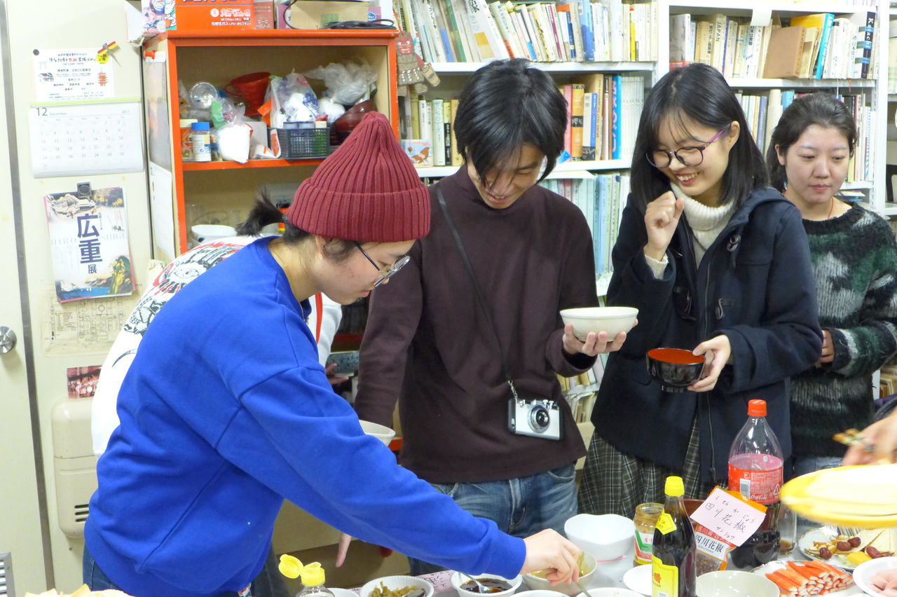 ◆ 幹事役 冬まっしぐらの季節、今回の趣向は、幹事役にふ印ラボのニューフェース研究生の高勝蘭さん(中国・重慶大学卒)と学府環境・遺産デザインコース藤田直子先生研究室の唐明暉くん(中国・四川省成都市出身)を迎え、本格的四川料理・重慶火鍋です!→唐くん、みんなが美味しい美味しいと驚くほどの、たいへん見事なシェフぶりでした。