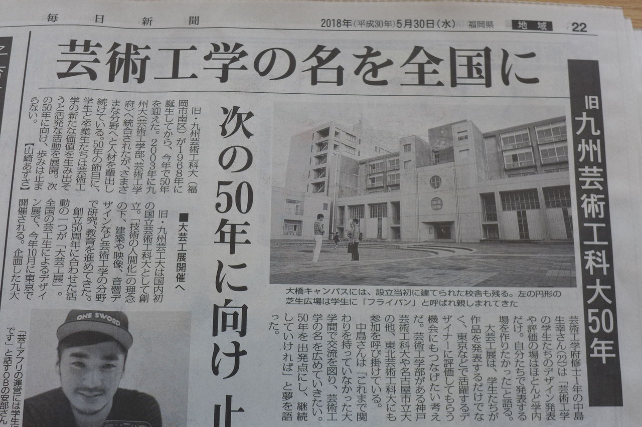 毎日新聞に芸工50周年を言祝ぐ記事を発見!