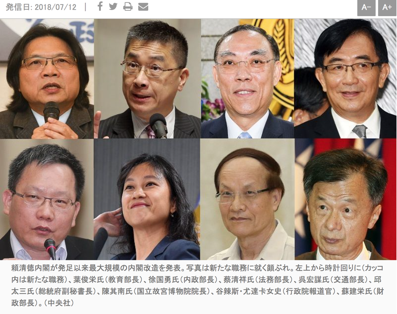 以下、この7月に行われた内閣改造人事です。(中央社)