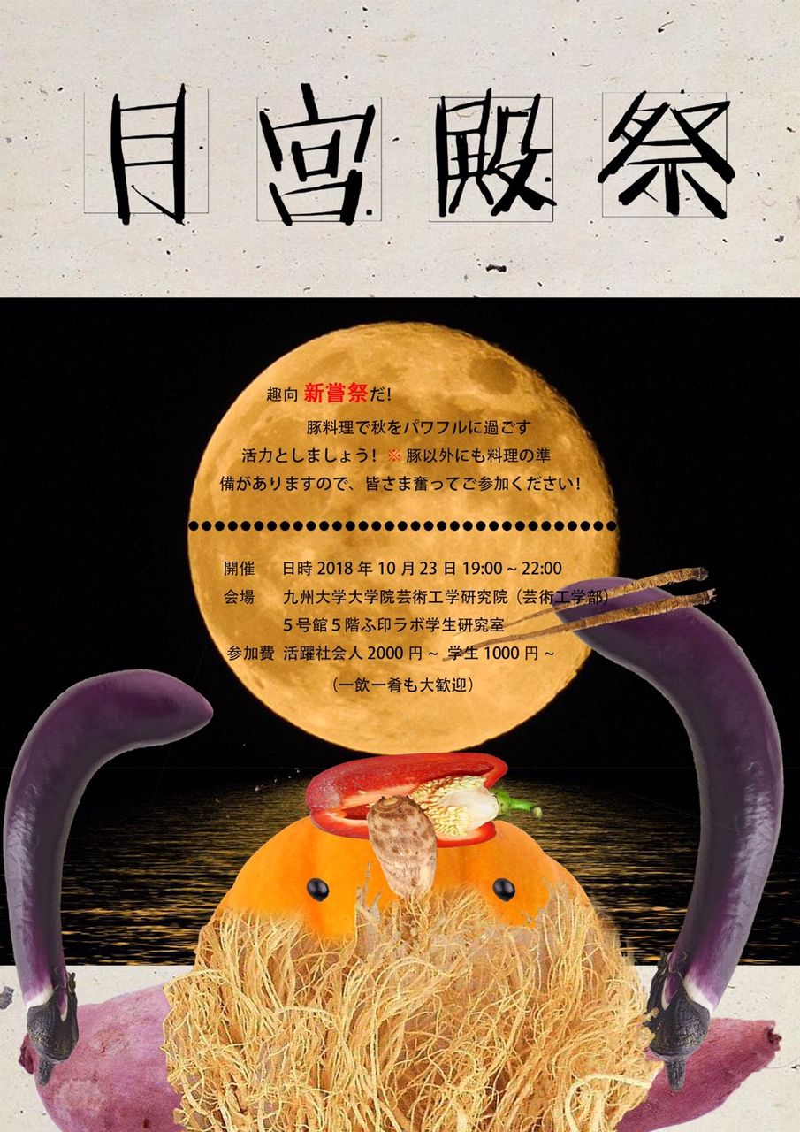 次週火曜日10月23日(火)19:00〜21:00(その後も続く)に私の研究室卒論生諸君が開催します満月交流宴「月宮殿祭」にぜひお立ち寄りくださることを期待します。