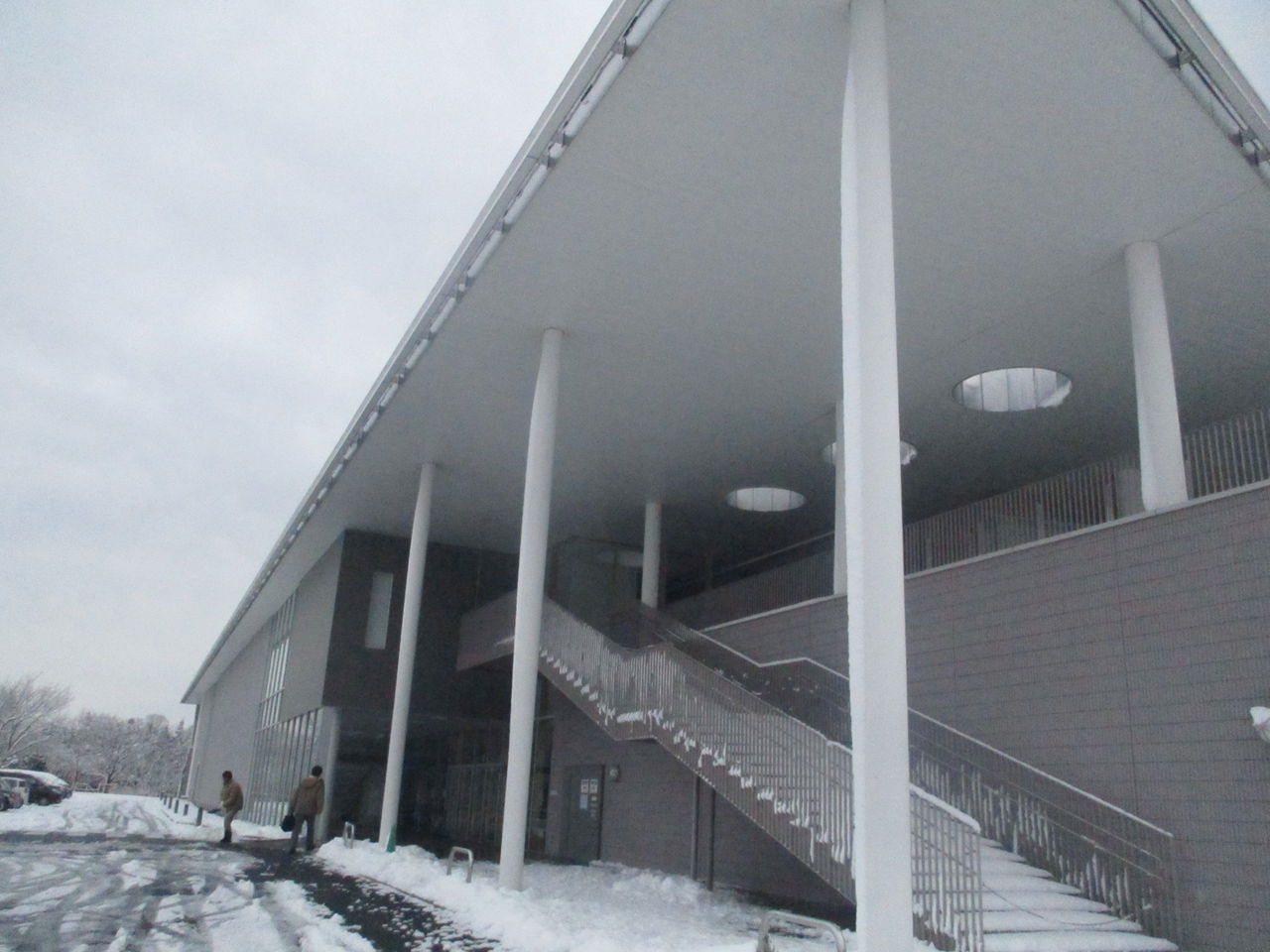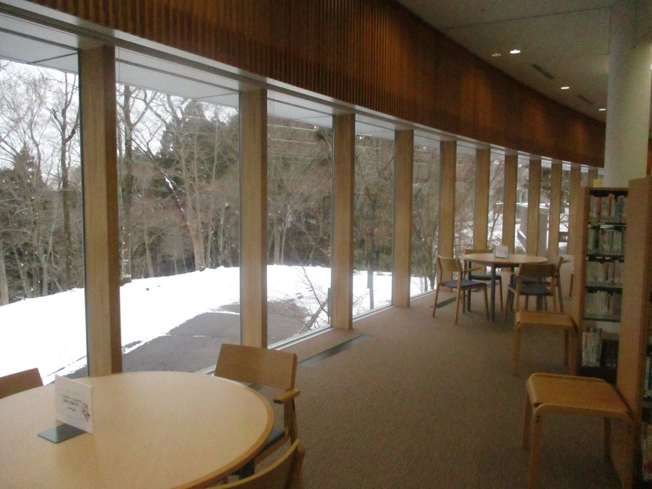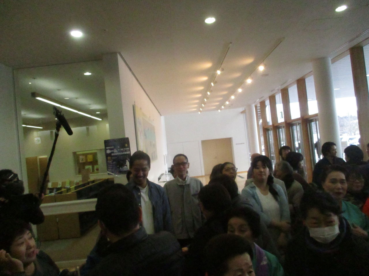 当日は雪。浜通りの富岡町は雪はほとんど降らないとのことでしたが、この日は降りました。町民劇が行われる「学びの森」は平成16年に建てられ、6年使われてきましたが、富岡町自体が平成22年の原発被害から平成29年3月まで帰還困難区でした。「学びの森」が使えるようになったのは平成30年から。この施設は、ホールや大小会議室、視聴覚室、お茶室、畳敷きの大きな部屋、授乳室、ワークショップ室、図書館、ヴァーチャルリアリティに似たゴーグルのようなものをつけて震災前の富岡の映像を体験できる部屋などがあります。