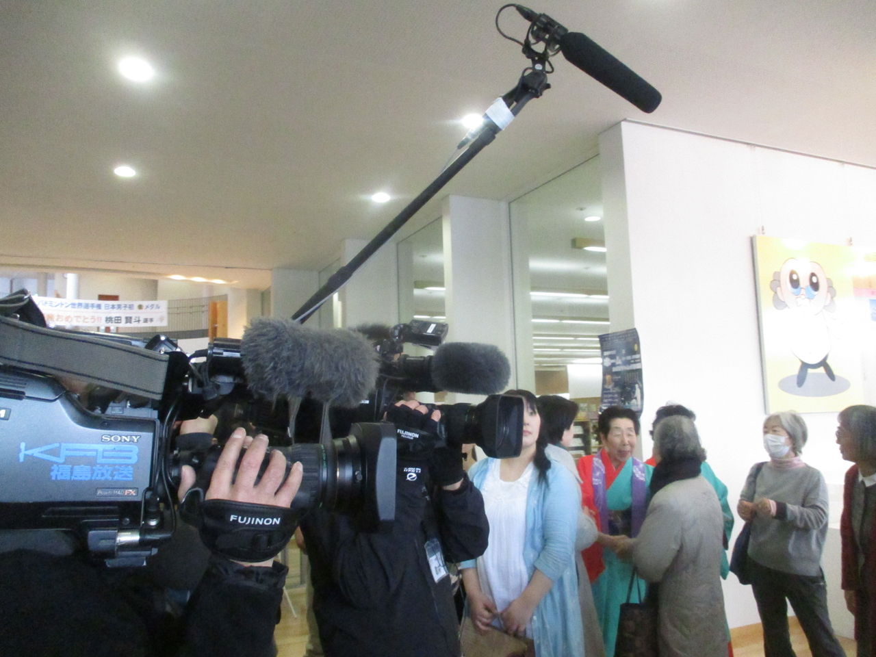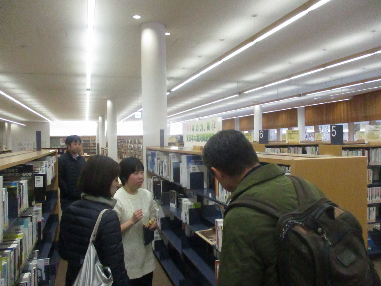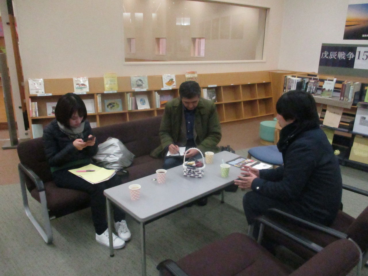 松隈くん出演応援団たちは図書館内の飲み物があるスペースで一休み。