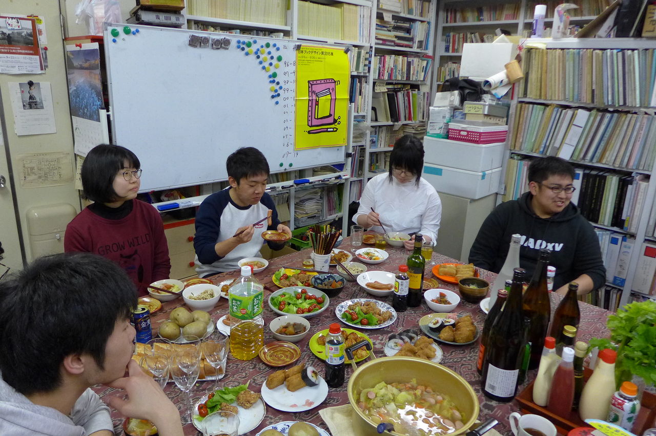 九州大学芸術情報設計学科ふ印ラボ4年生、最後の定例ゼミ、最後の月宮殿祭、堂々開催っ!