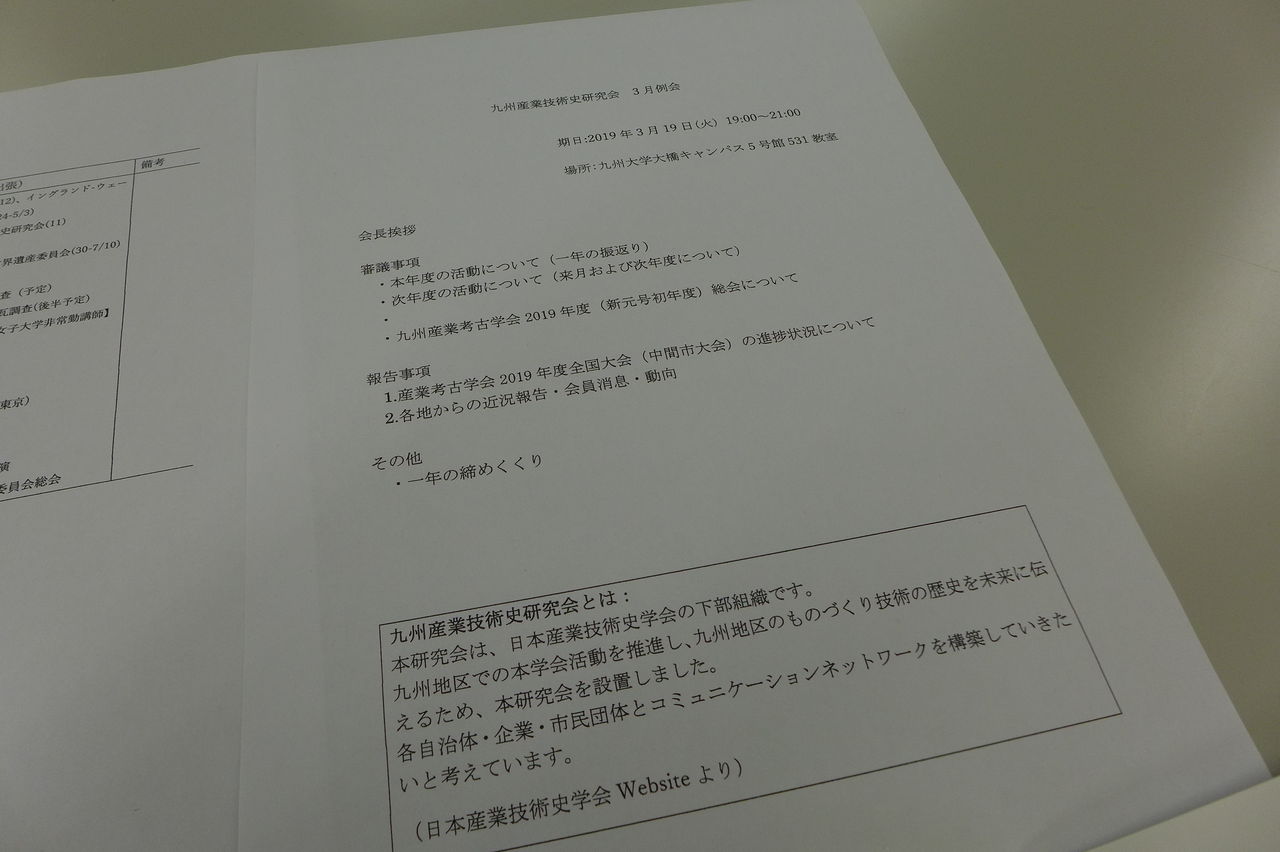 長年継続開催の九州産業技術史研究会[月例会]方式を暫時休止することとしました。
