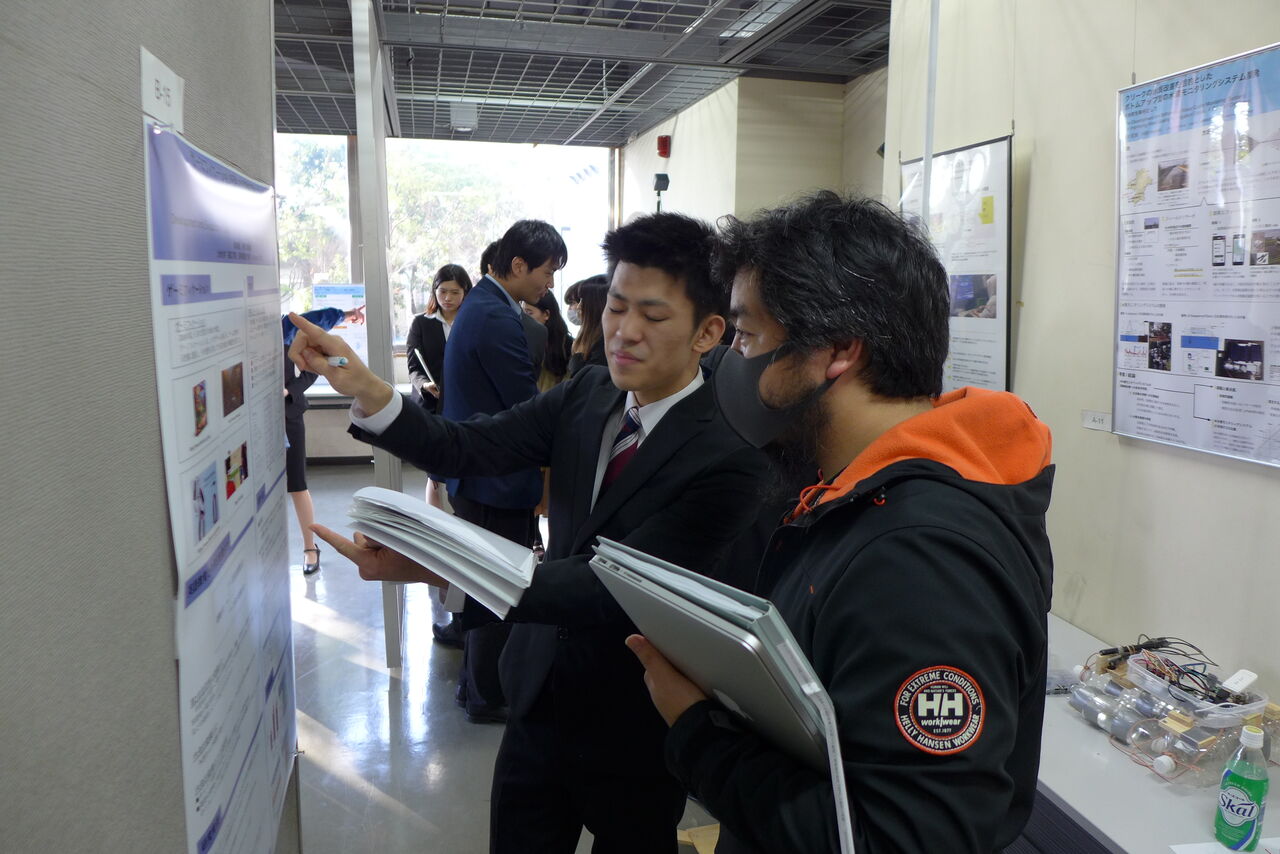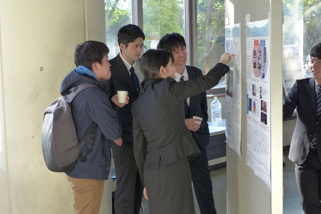 4名の卒業研究の成果を口頭でお伝えすると同時に、質疑応答・意見交換に挑みます。