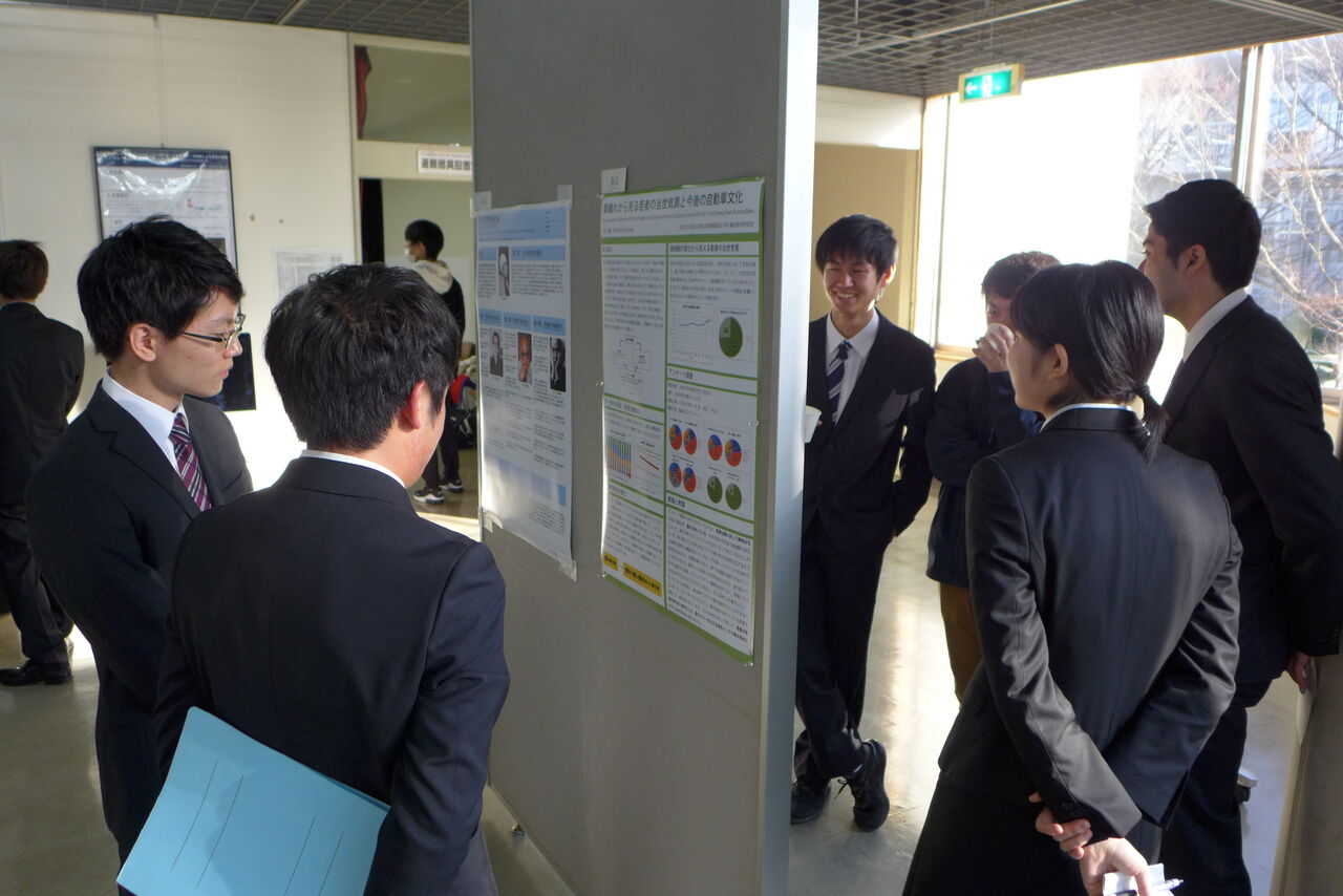 参加:ご自由にどうぞお立ち寄りください。卒論生諸君の発表に対して、質疑応答、意見交換、活発なひとときを生み出すことができれば幸いです。