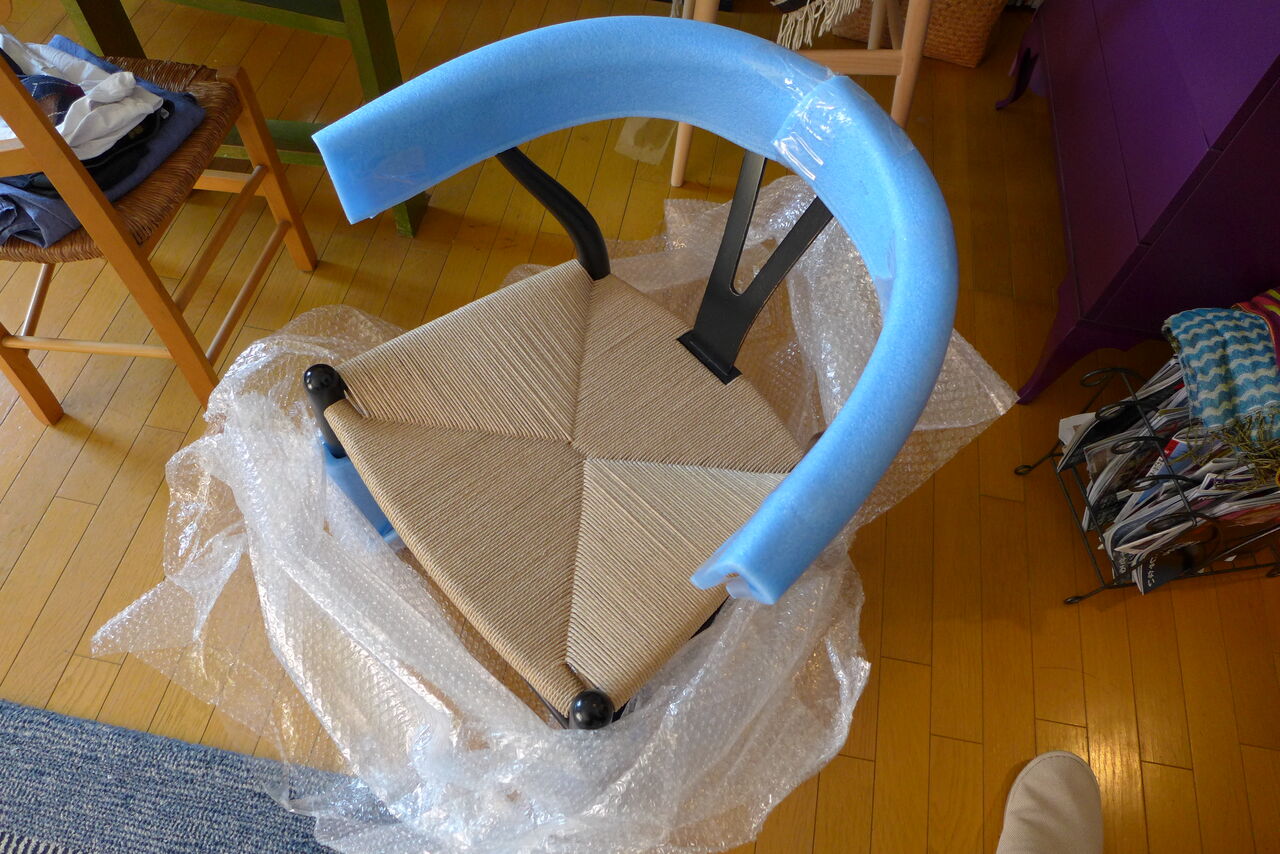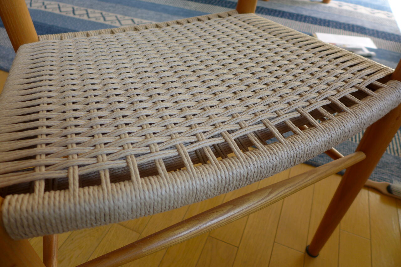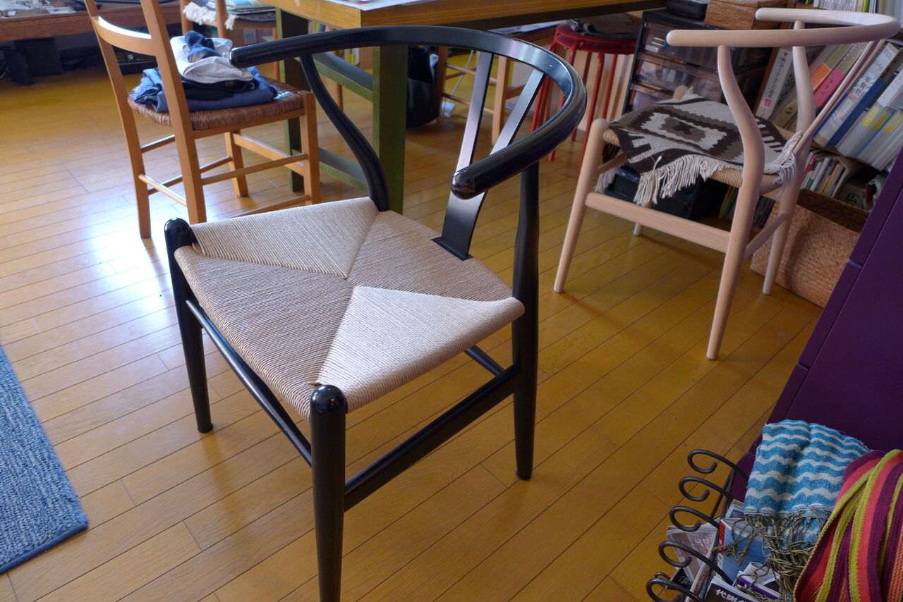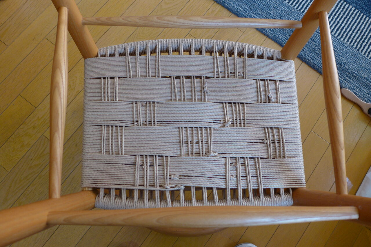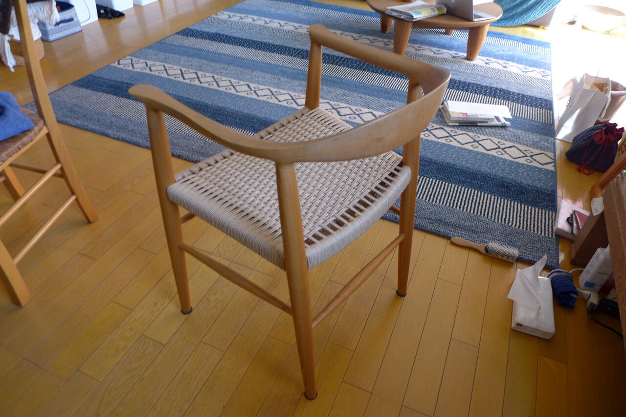 香椎浜巻々亭家宝の座チェア(岐阜県木工職人製/2012年入手)とYチェア(デザイン:ハンス・j・ウェグナー/カールハンセン&サン社製1983年以来37年愛用)の座面張り替えが完了!