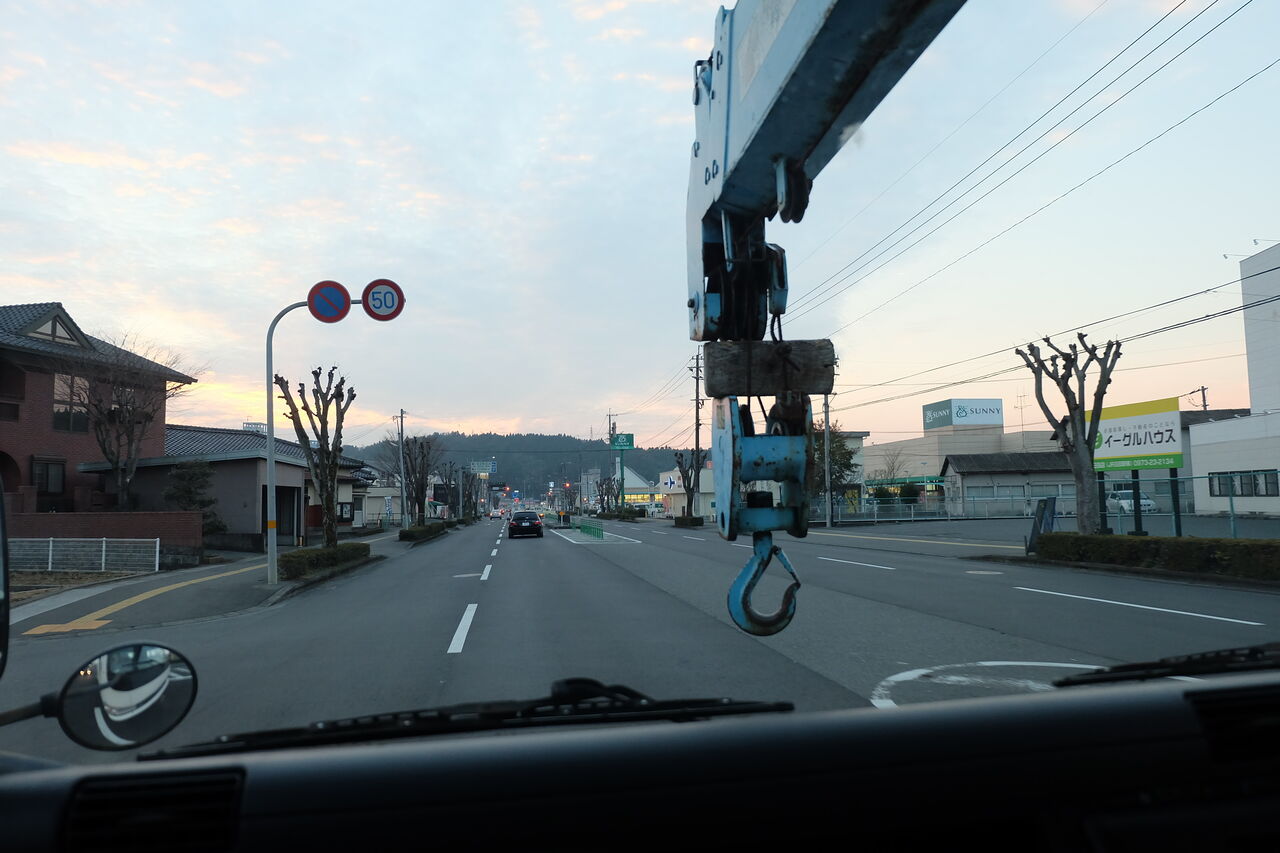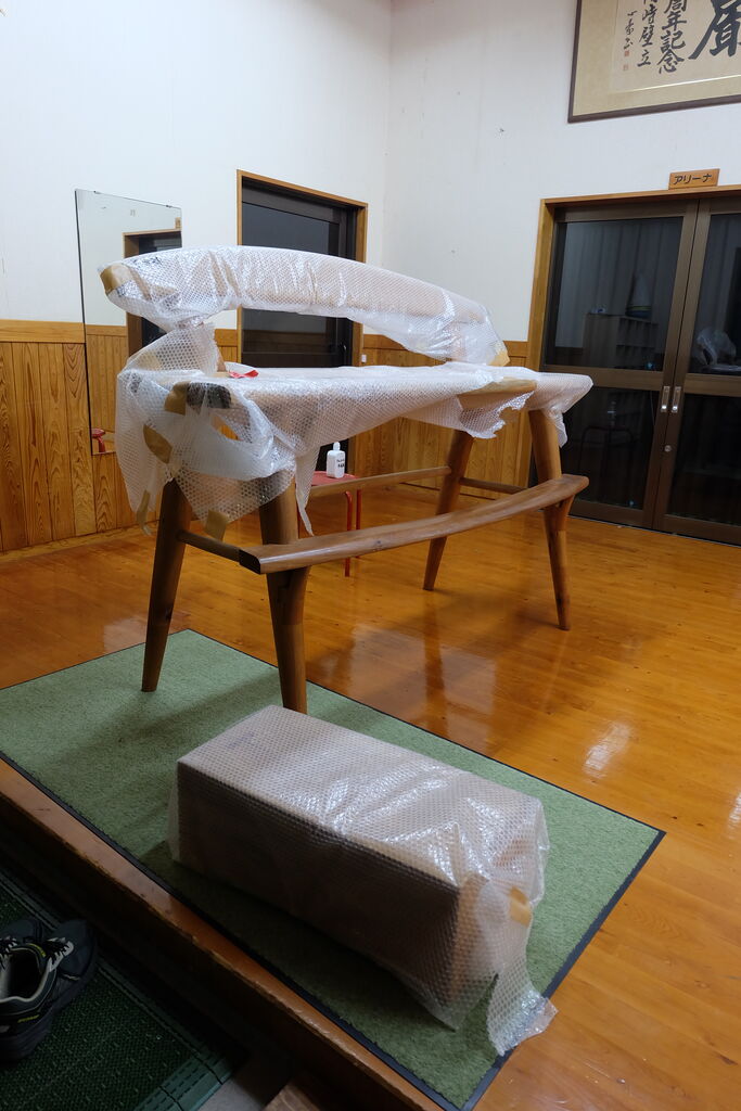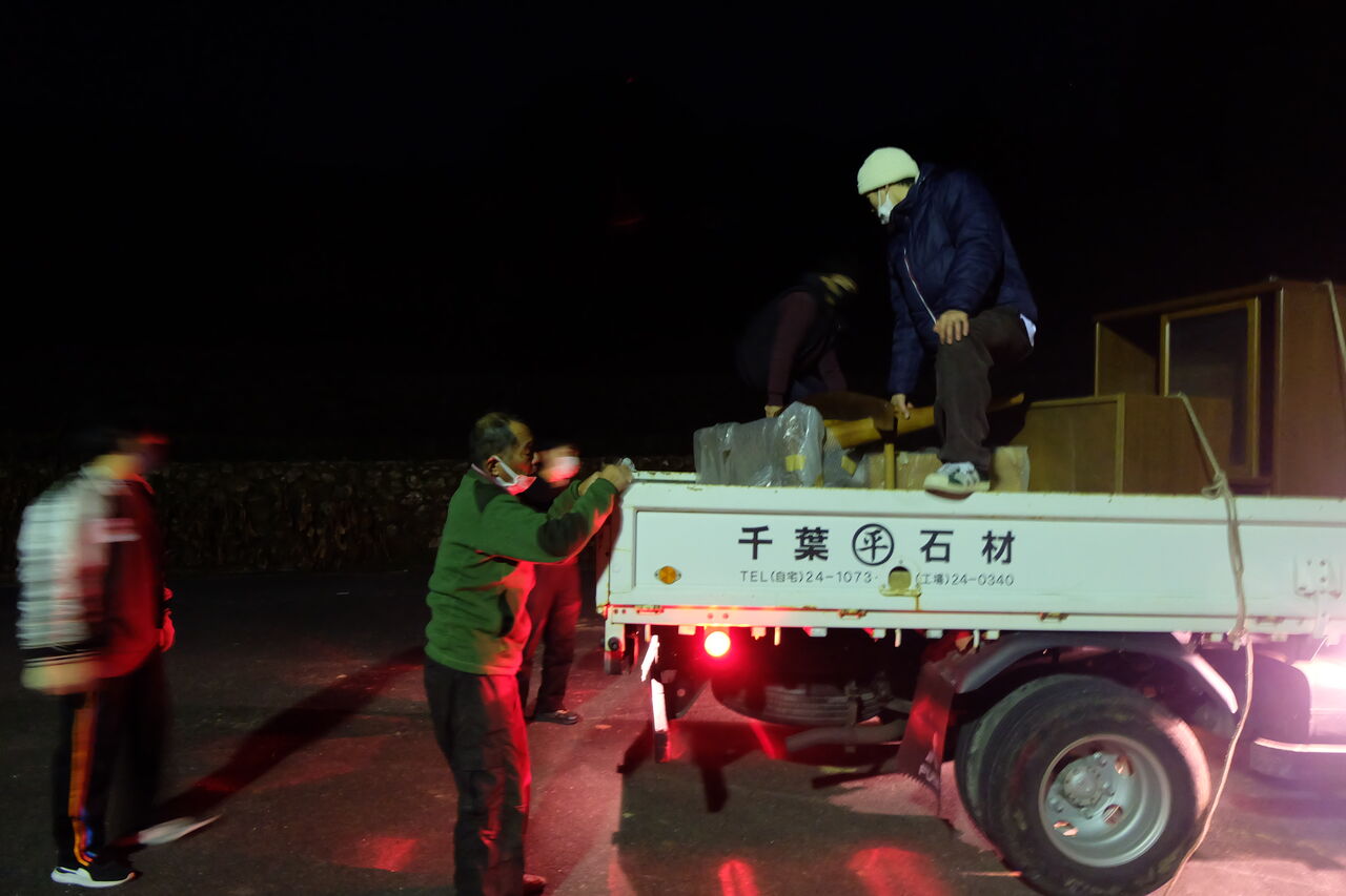 2020年12月23日(水)ふ印ラボ店じまいワークショップ その③ 西岡泰心工房(八女市黒木町笠原霊岩寺対岸)の鳥瞰ベンチを積み込み帰路へ!