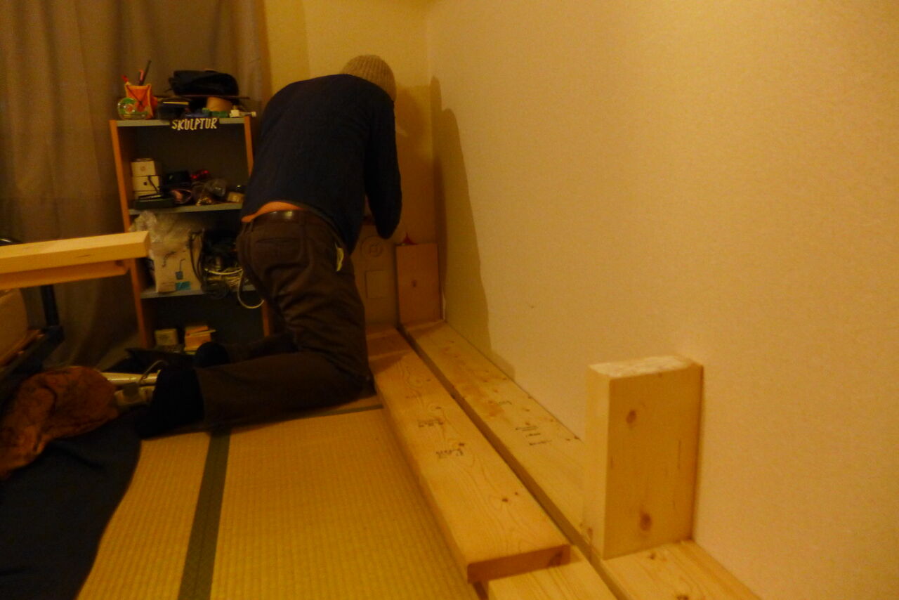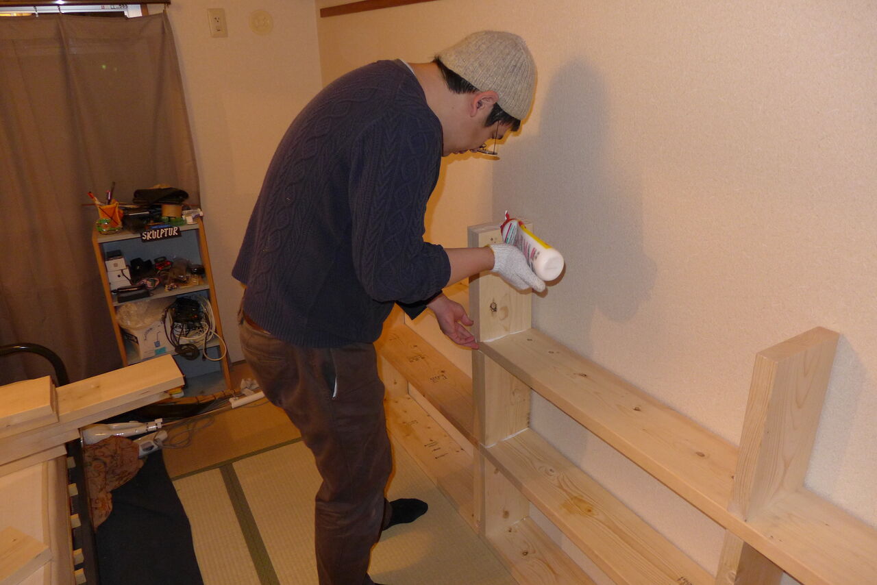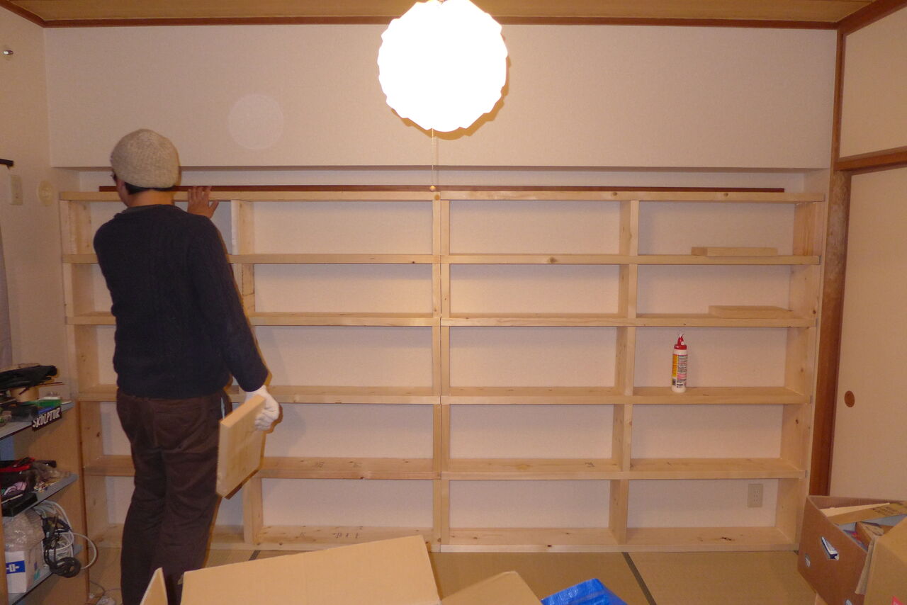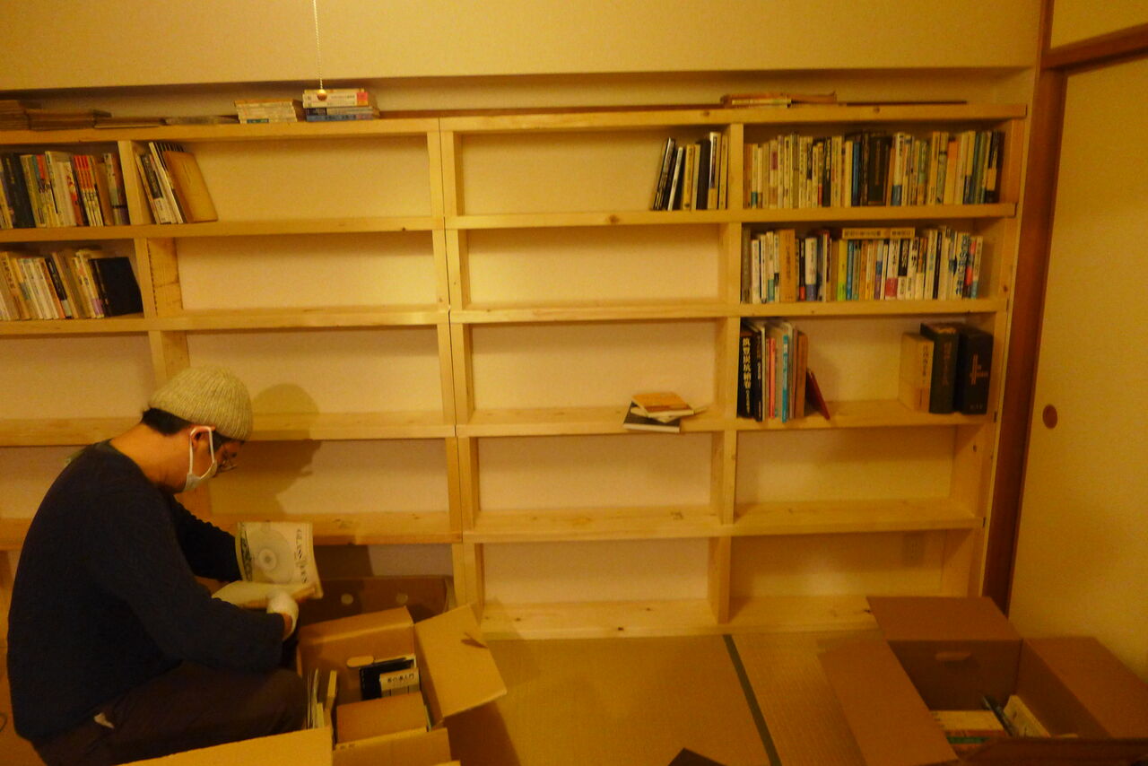 2021年1月3日(日)夜、ダビハウス(香椎若葉公団たびラボ)おニュウな書棚つくりこみ!わずか30分で完成!!