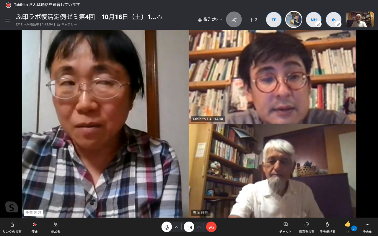 2021年10月16日(土)19:00〜21:45 ふ印ラボ(藤原惠洋九州大学名誉教授研究室門下)定例ゼミ第4回開催!