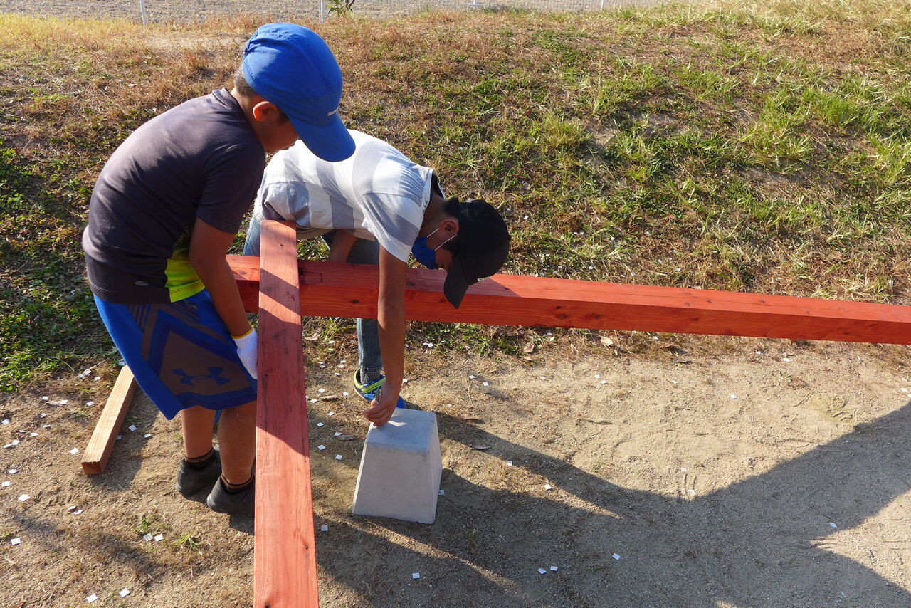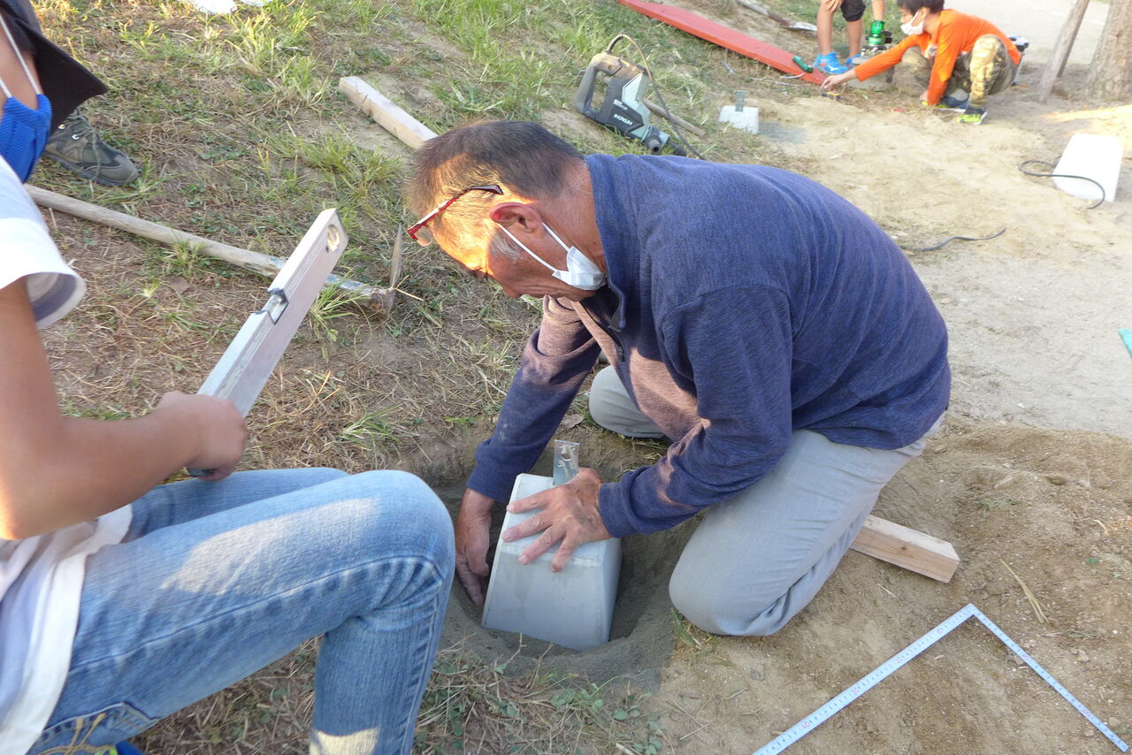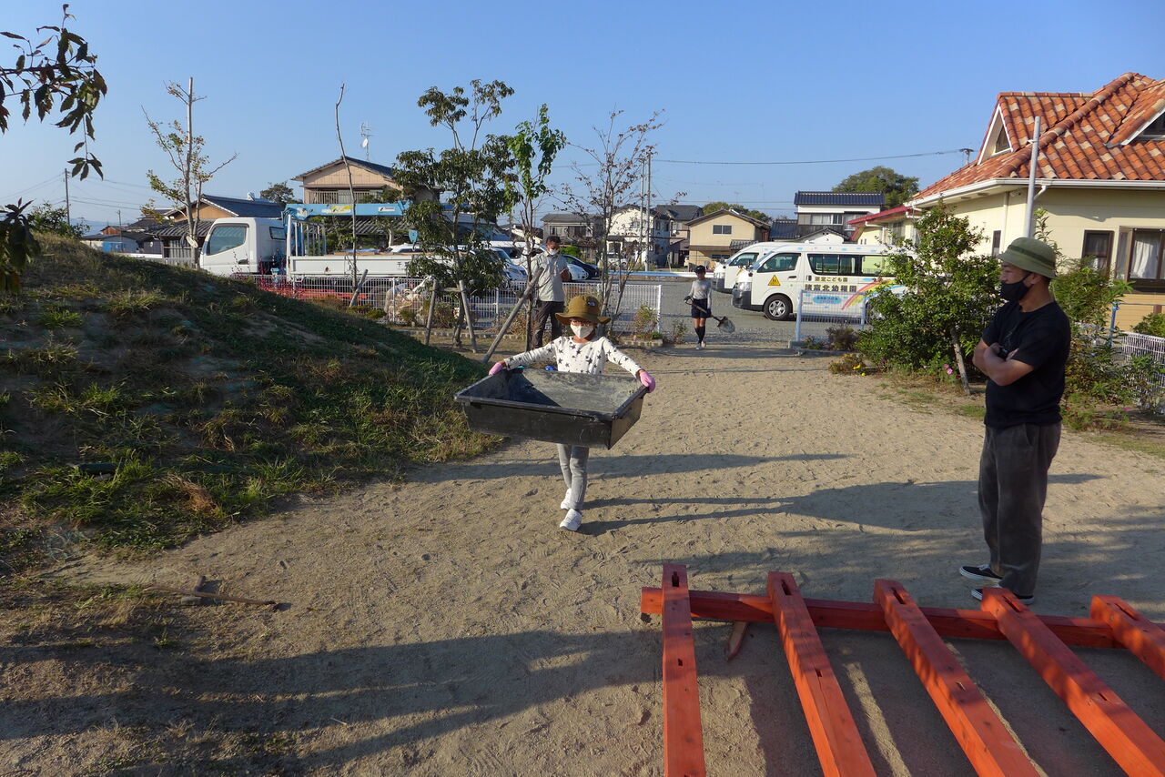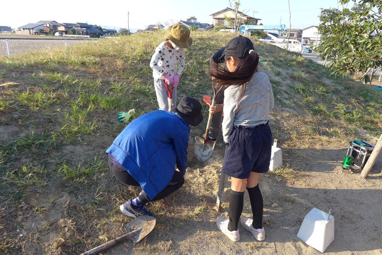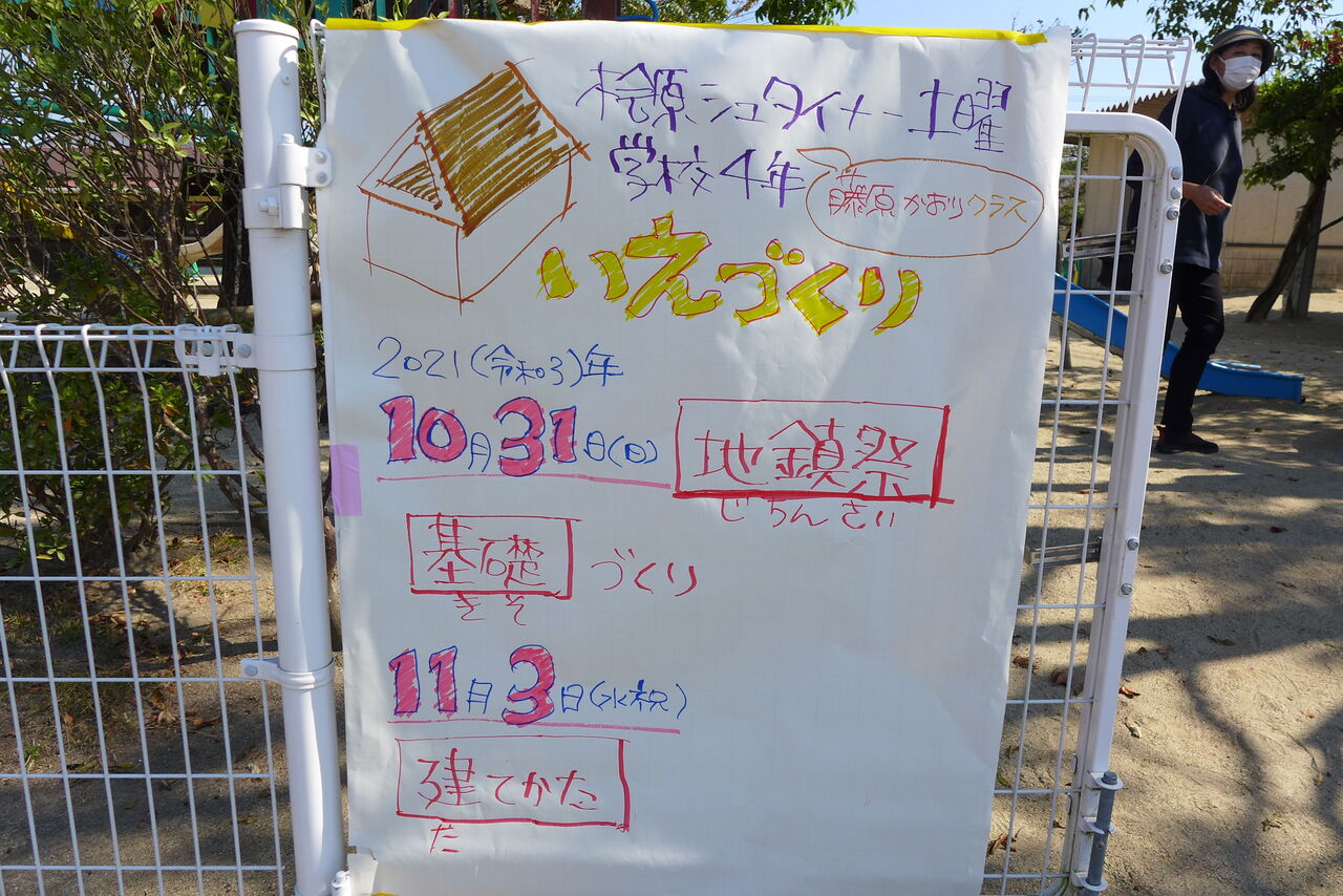 2021年10月31日(日)桧原シュタイナー土曜学校4年8名の「いえづくり」プロジェクト、基礎づくりin諸富北幼稚園!!