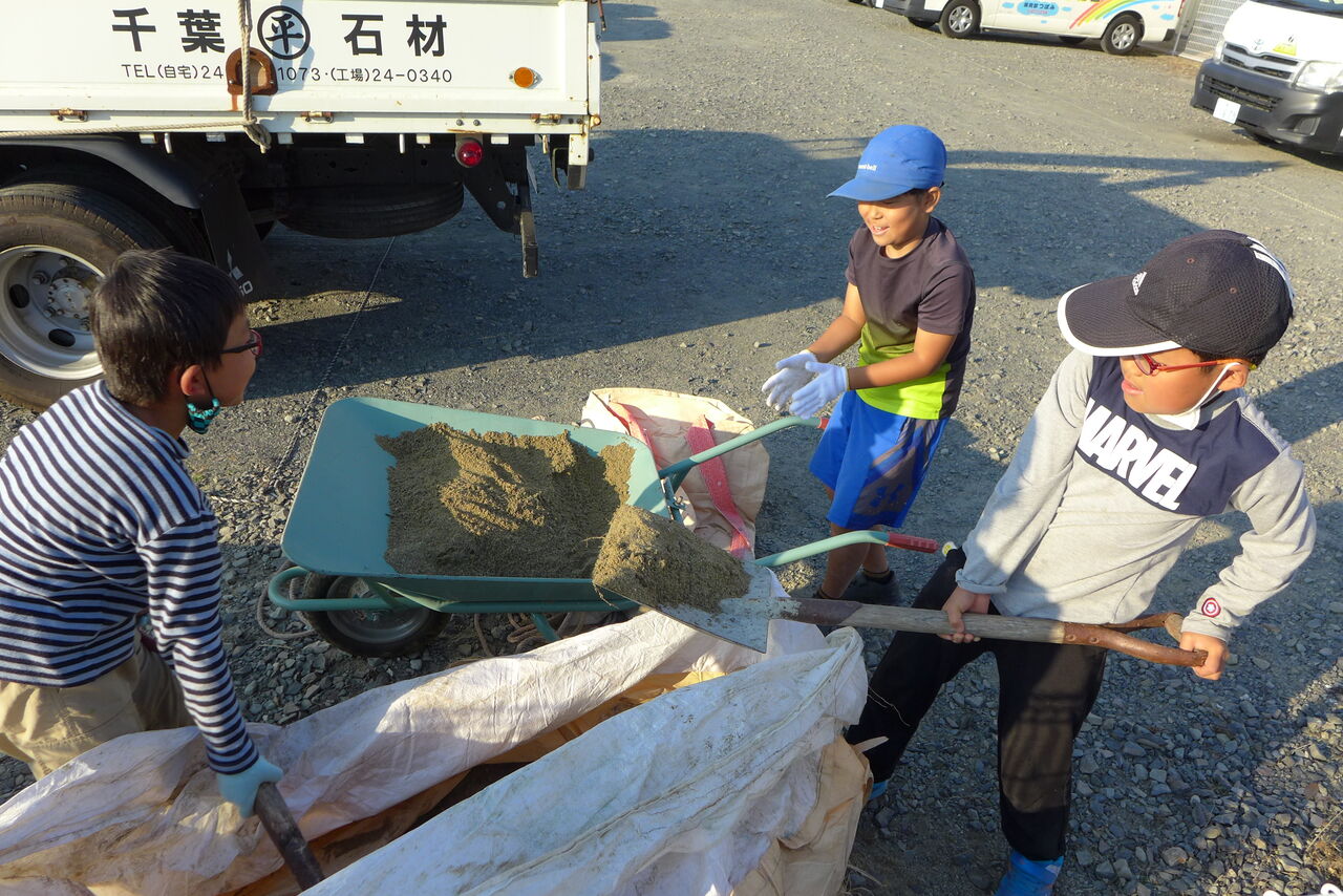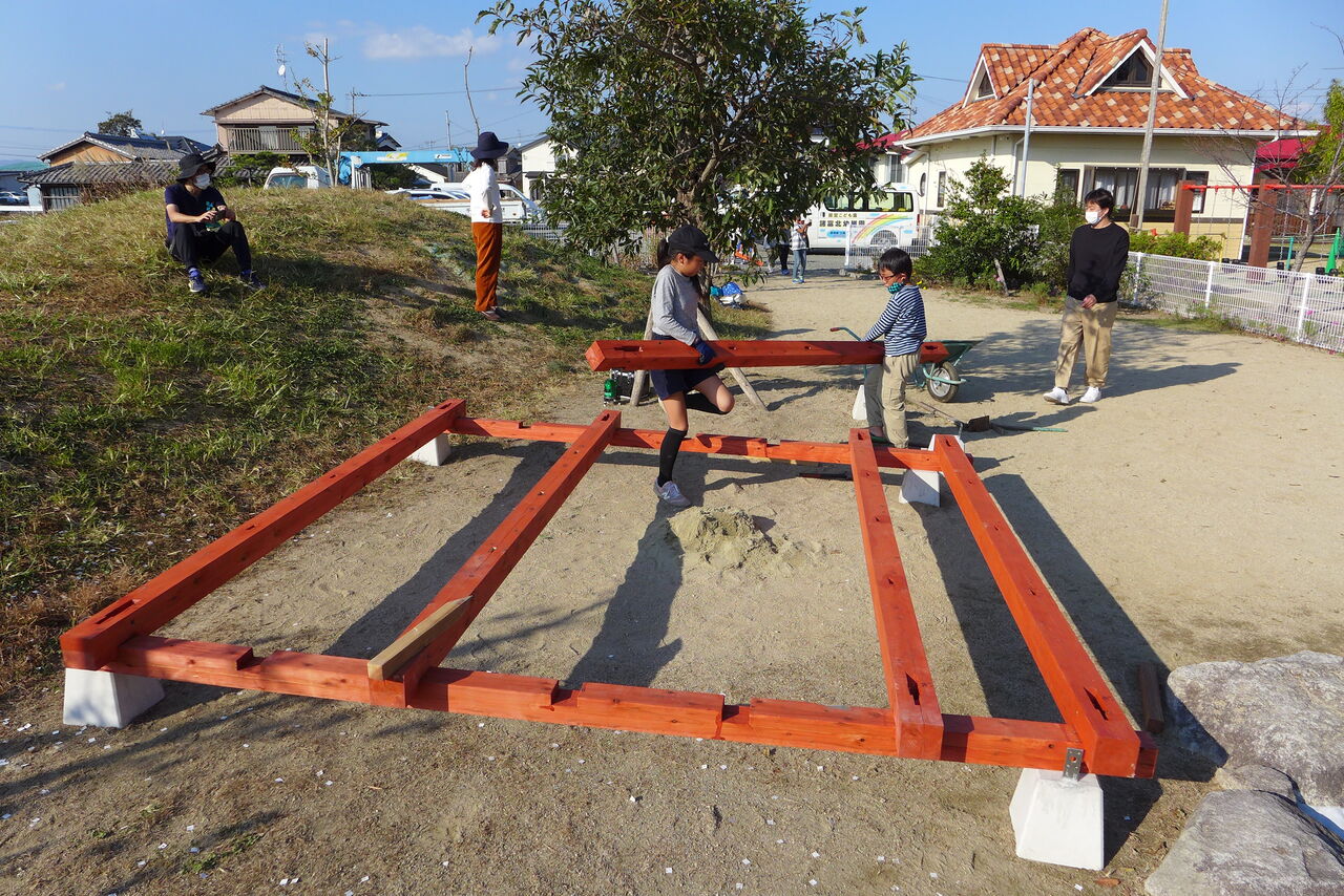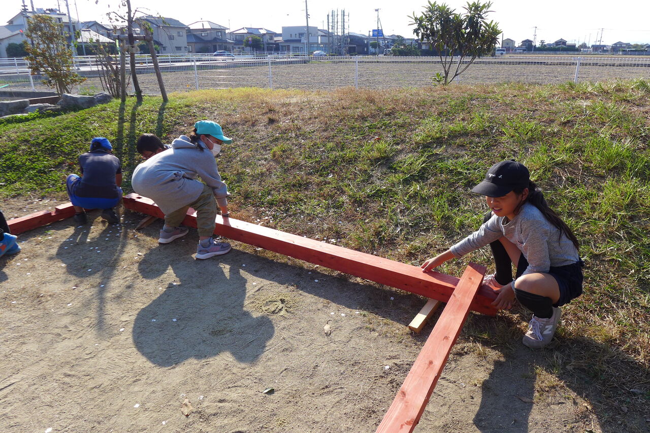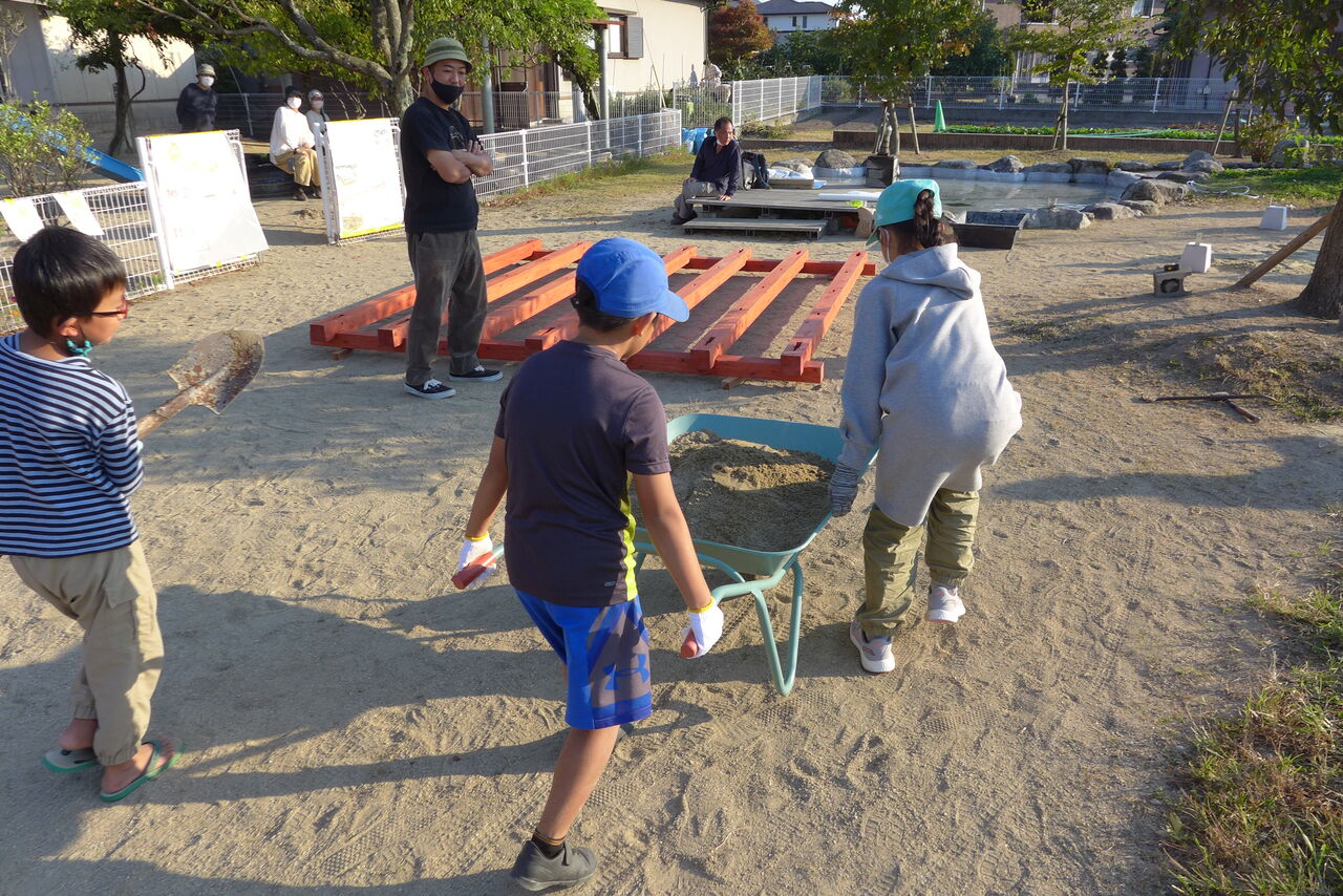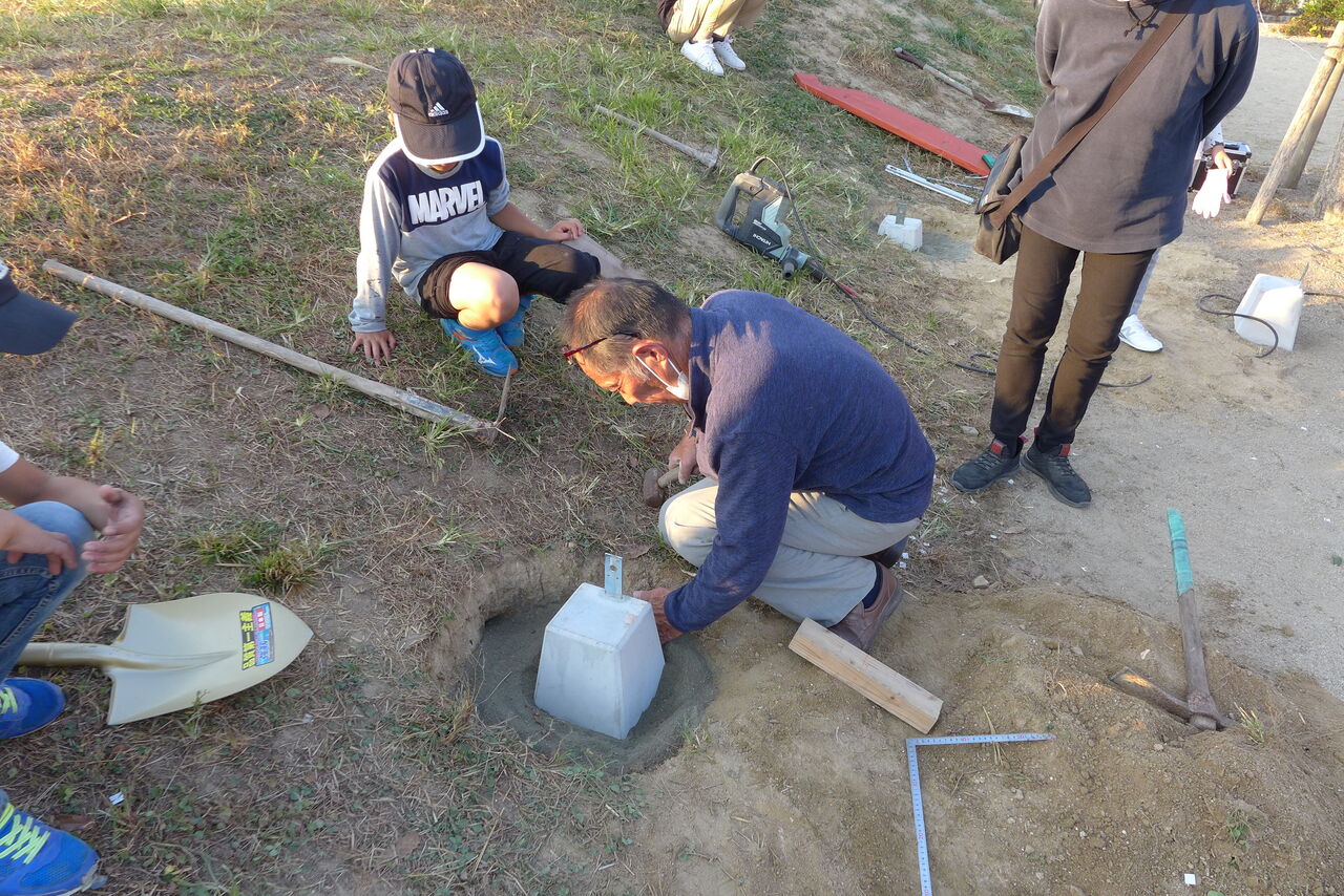 2021年10月31日(日)桧原シュタイナー土曜学校4年8名の「いえづくり」プロジェクト、基礎づくりin諸富北幼稚園!!