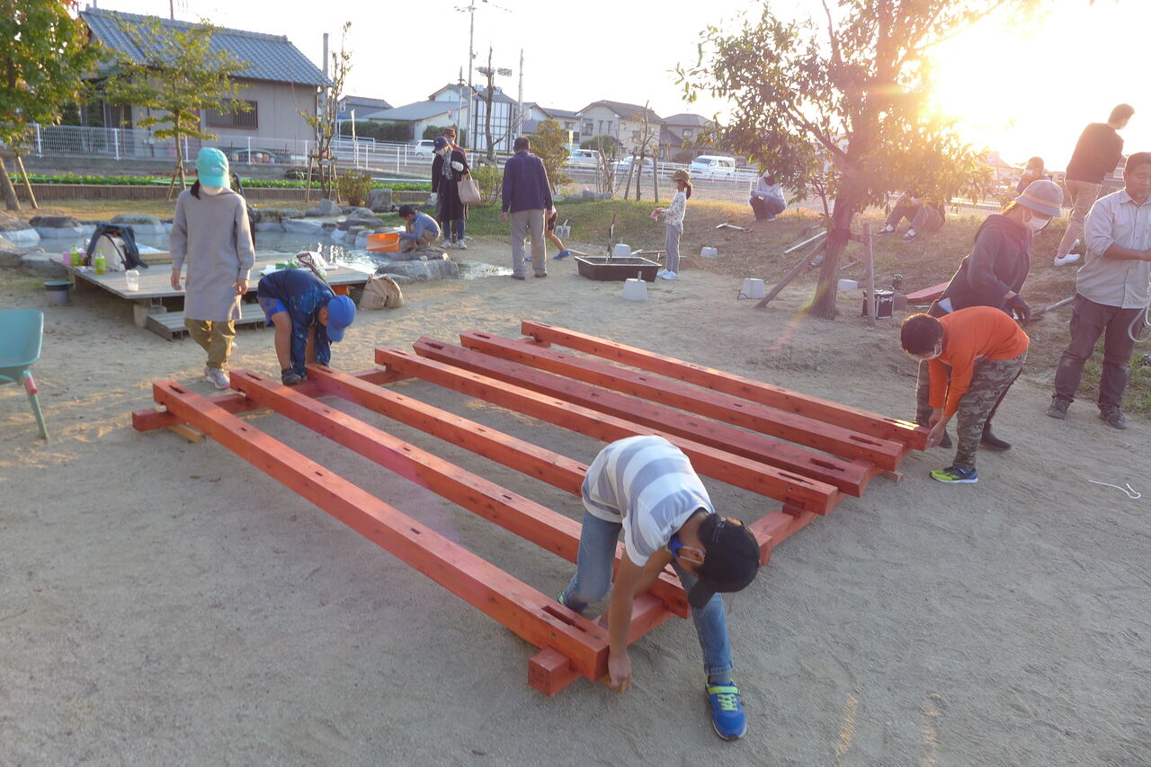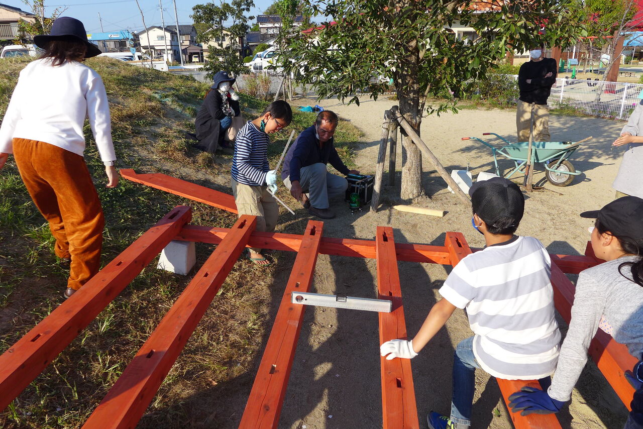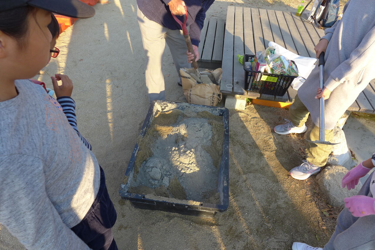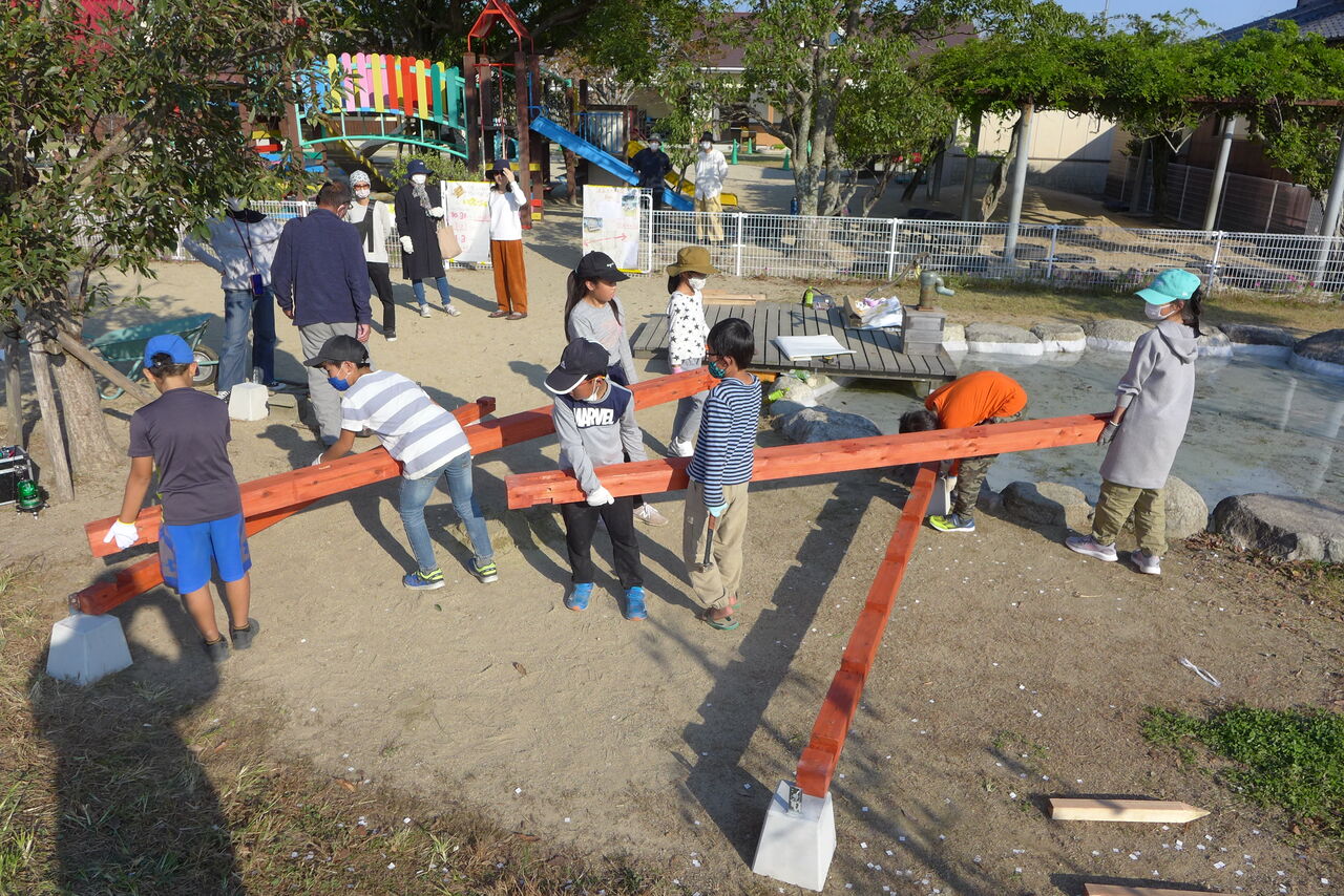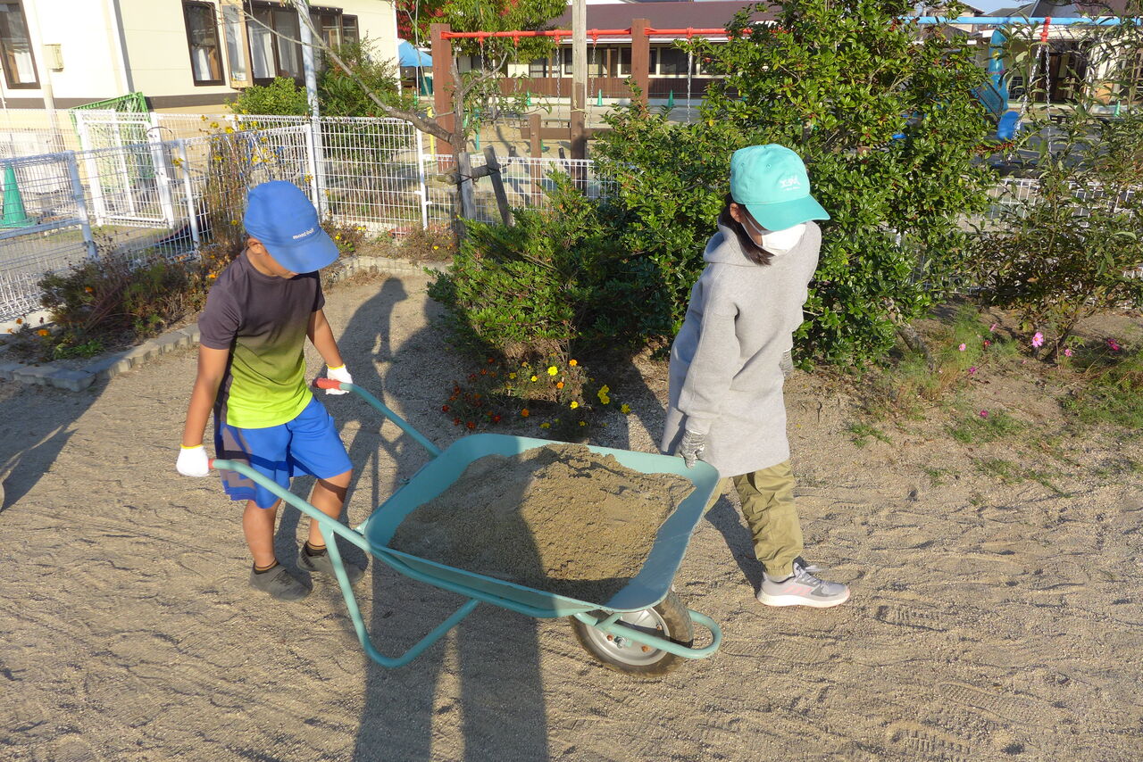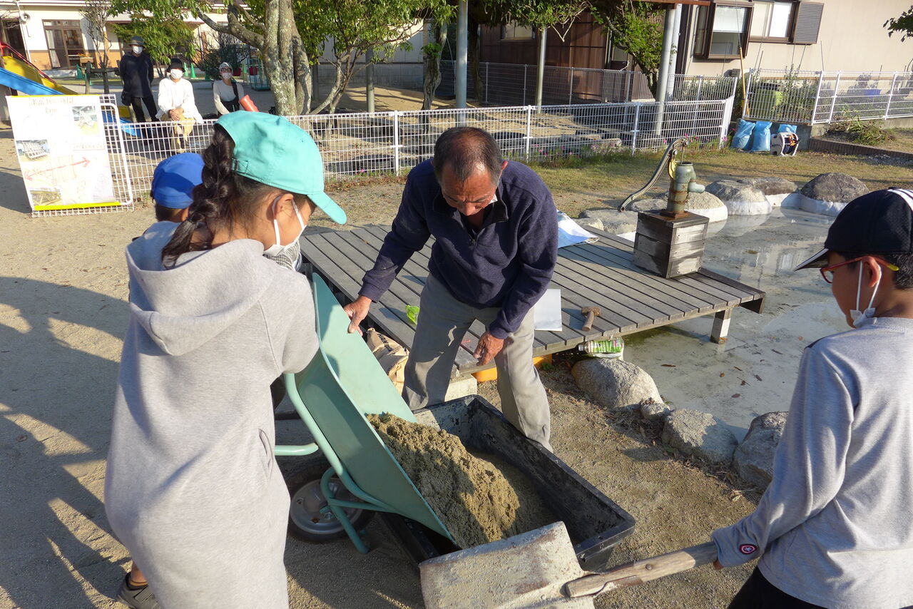2021年10月31日(日)桧原シュタイナー土曜学校4年8名の「いえづくり」プロジェクト、基礎づくりin諸富北幼稚園!!