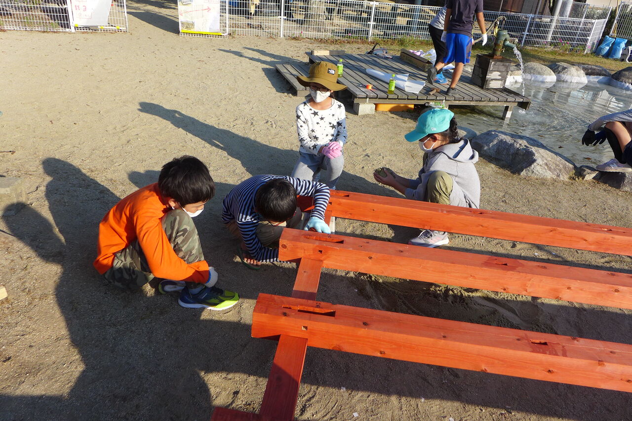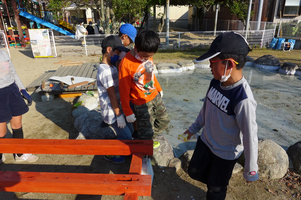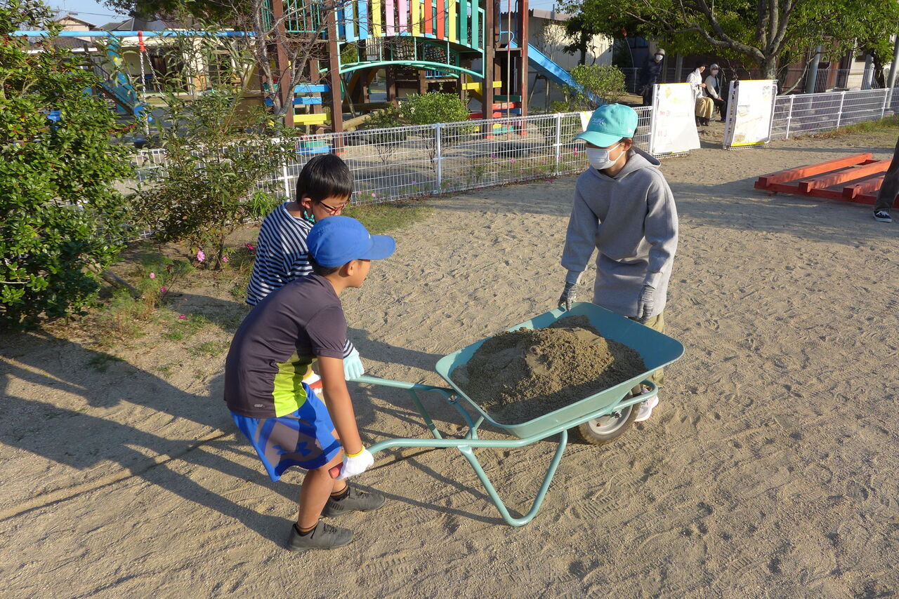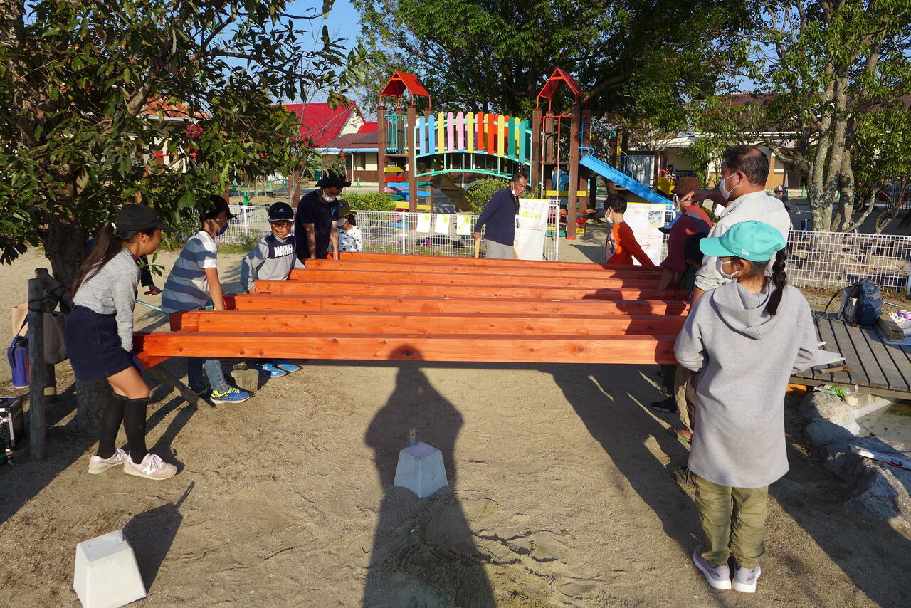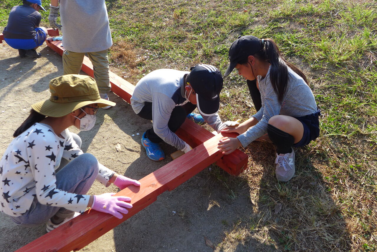2021年10月31日(日)桧原シュタイナー土曜学校4年8名の「いえづくり」プロジェクト、基礎づくりin諸富北幼稚園!!
