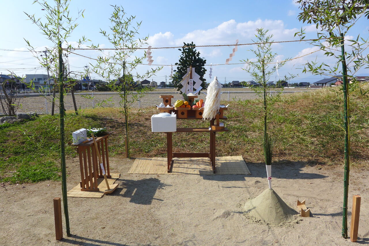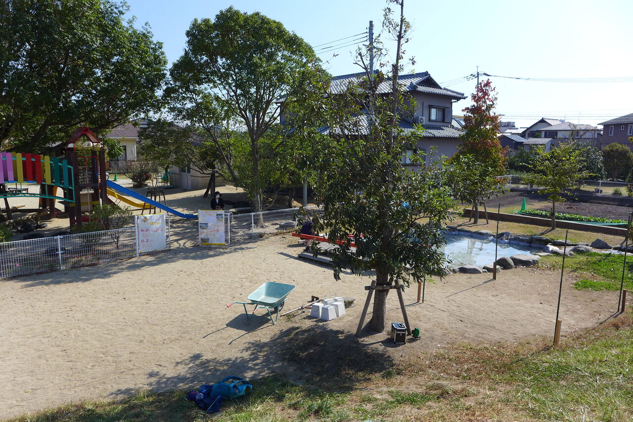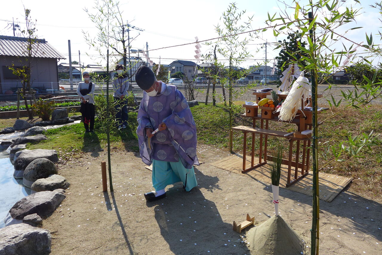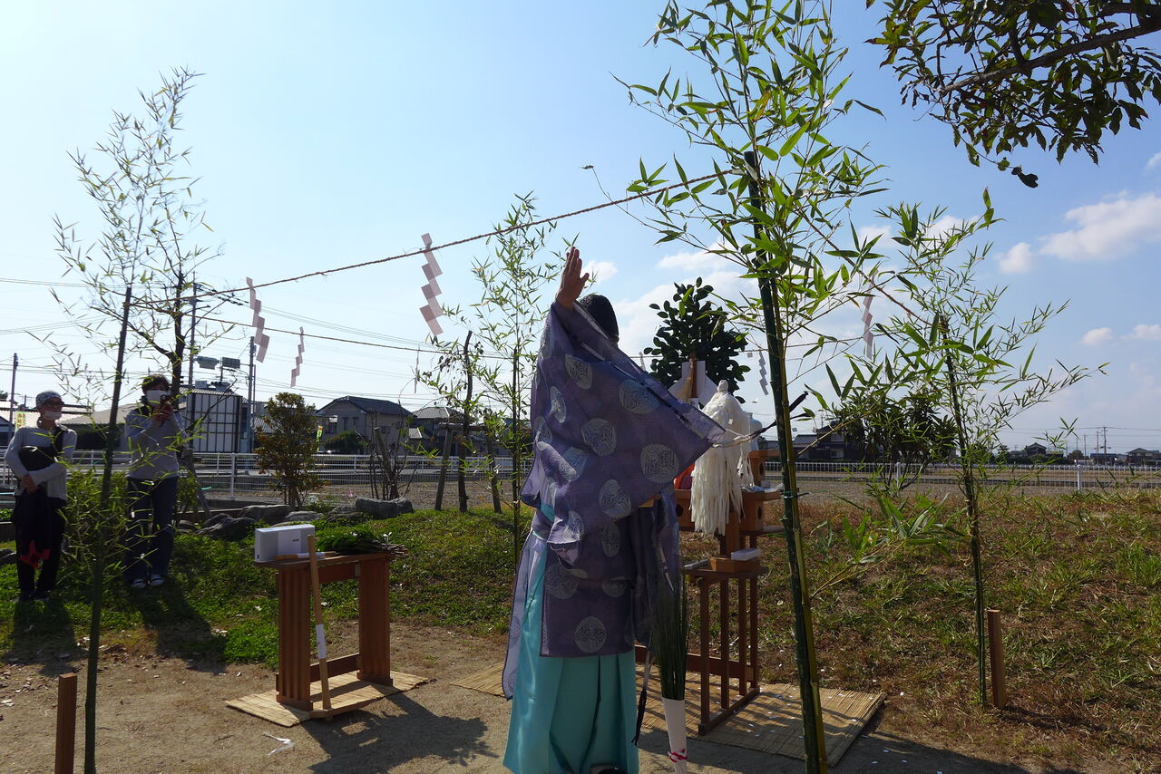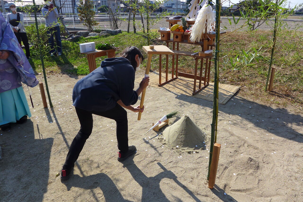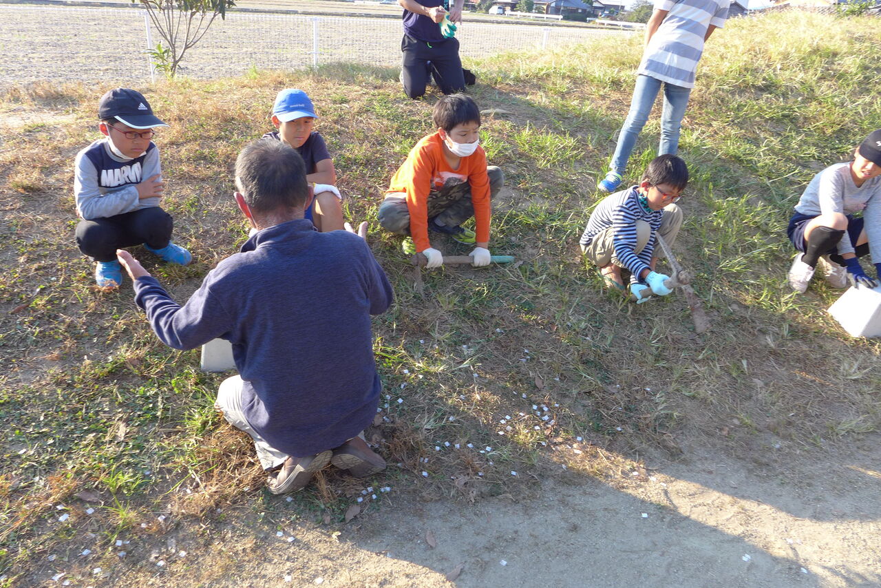 2021年10月31日(日)桧原シュタイナー土曜学校4年8名の「いえづくり」プロジェクト、地鎮祭から開始in諸富南幼稚園!!