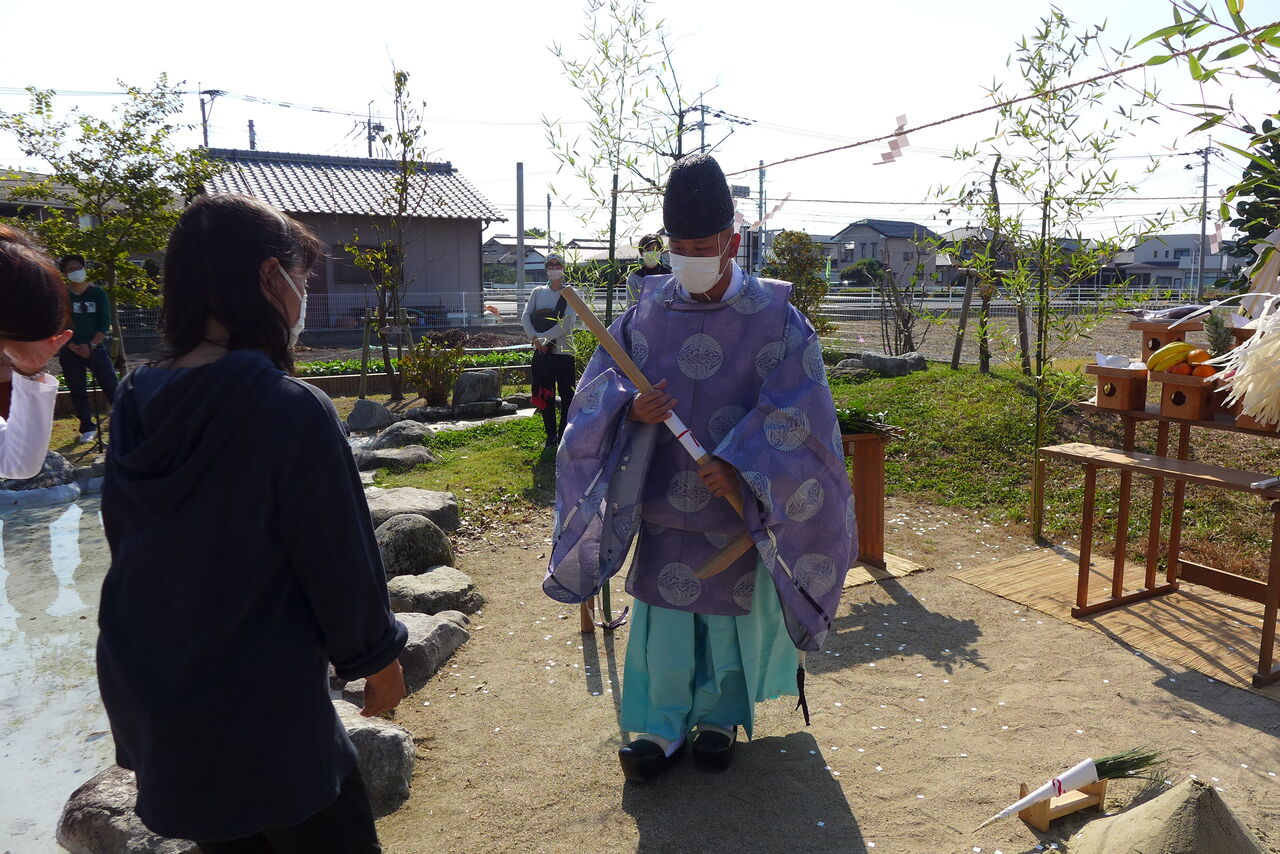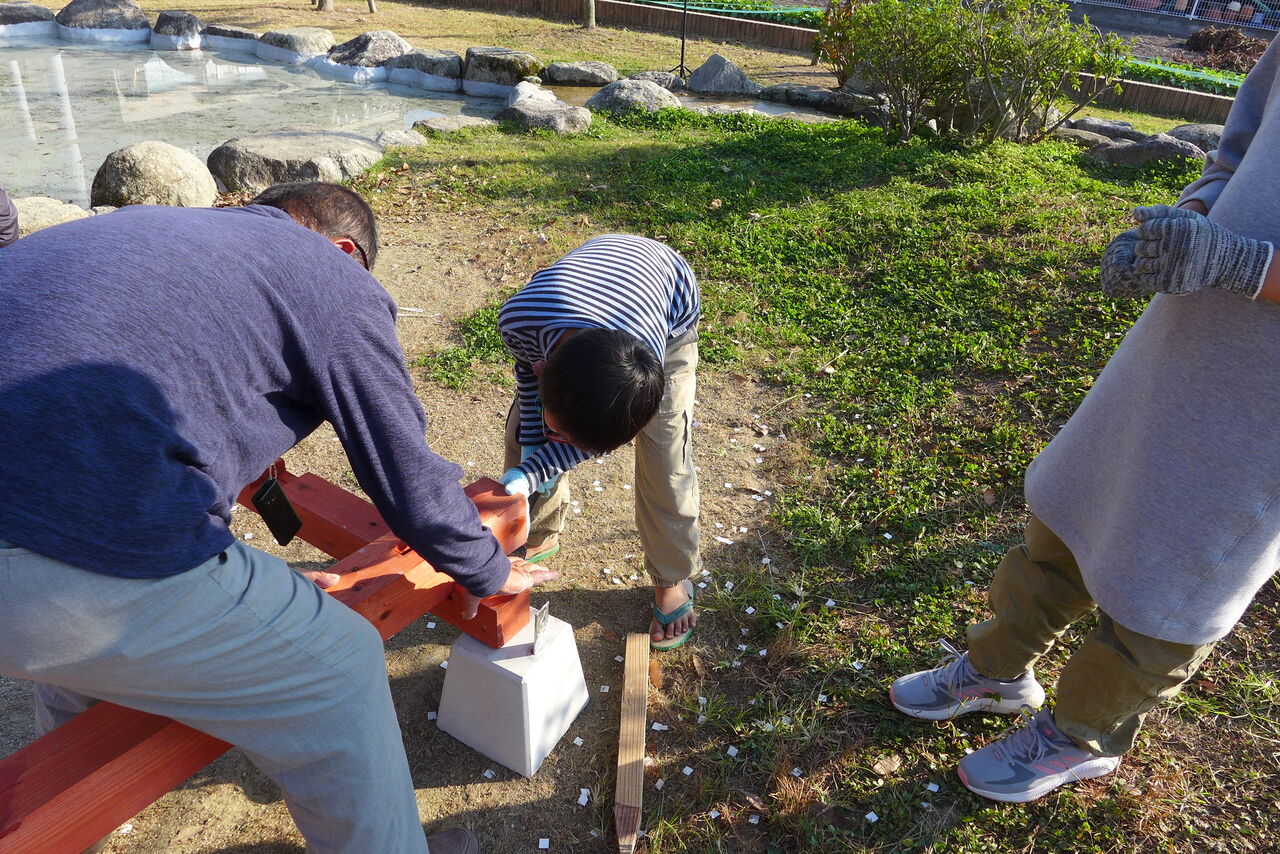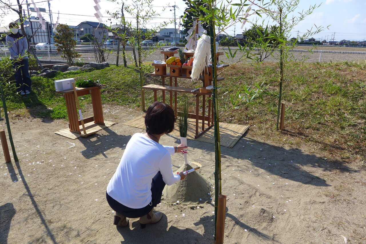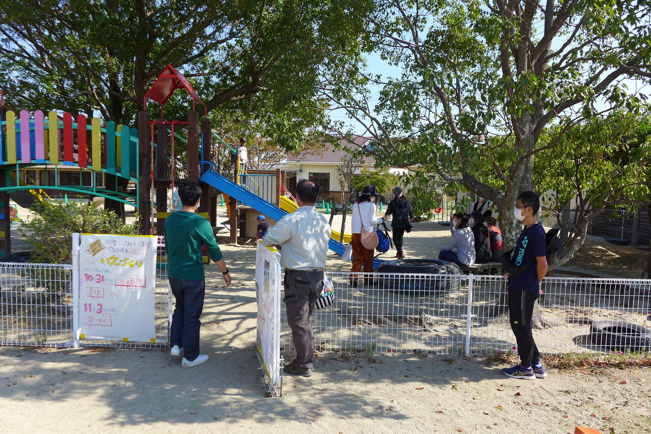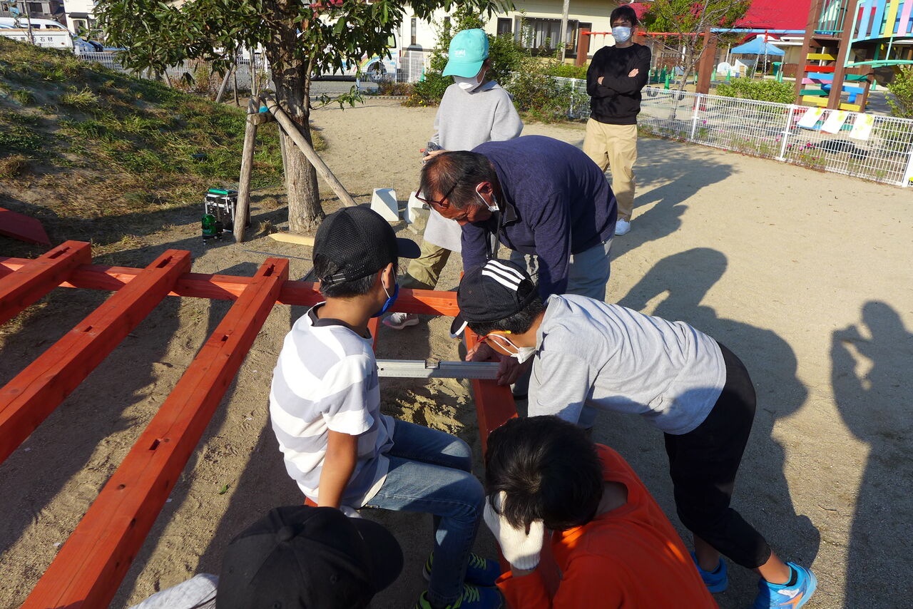 2021年10月31日(日)桧原シュタイナー土曜学校4年8名の「いえづくり」プロジェクト、地鎮祭から開始in諸富南幼稚園!!
