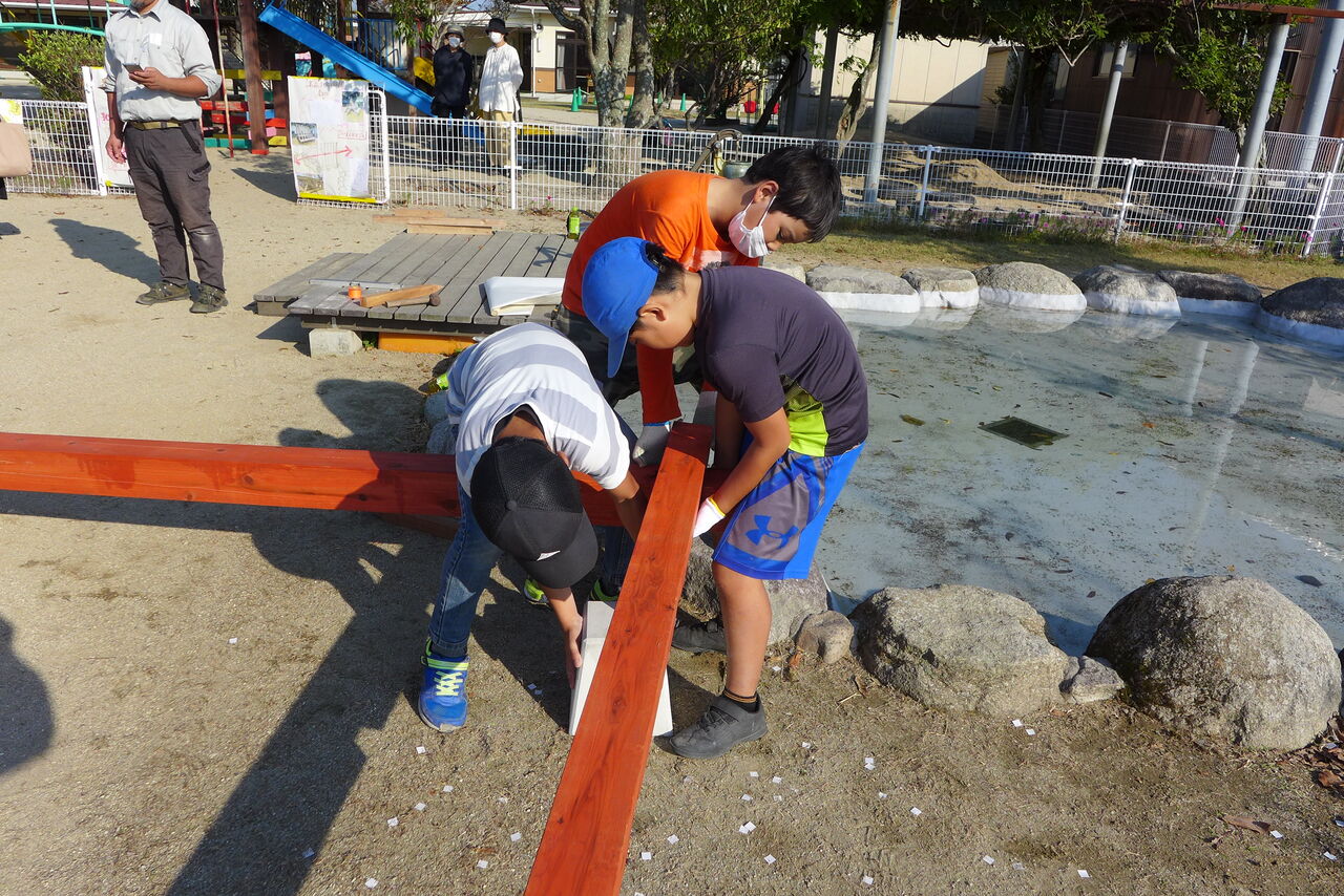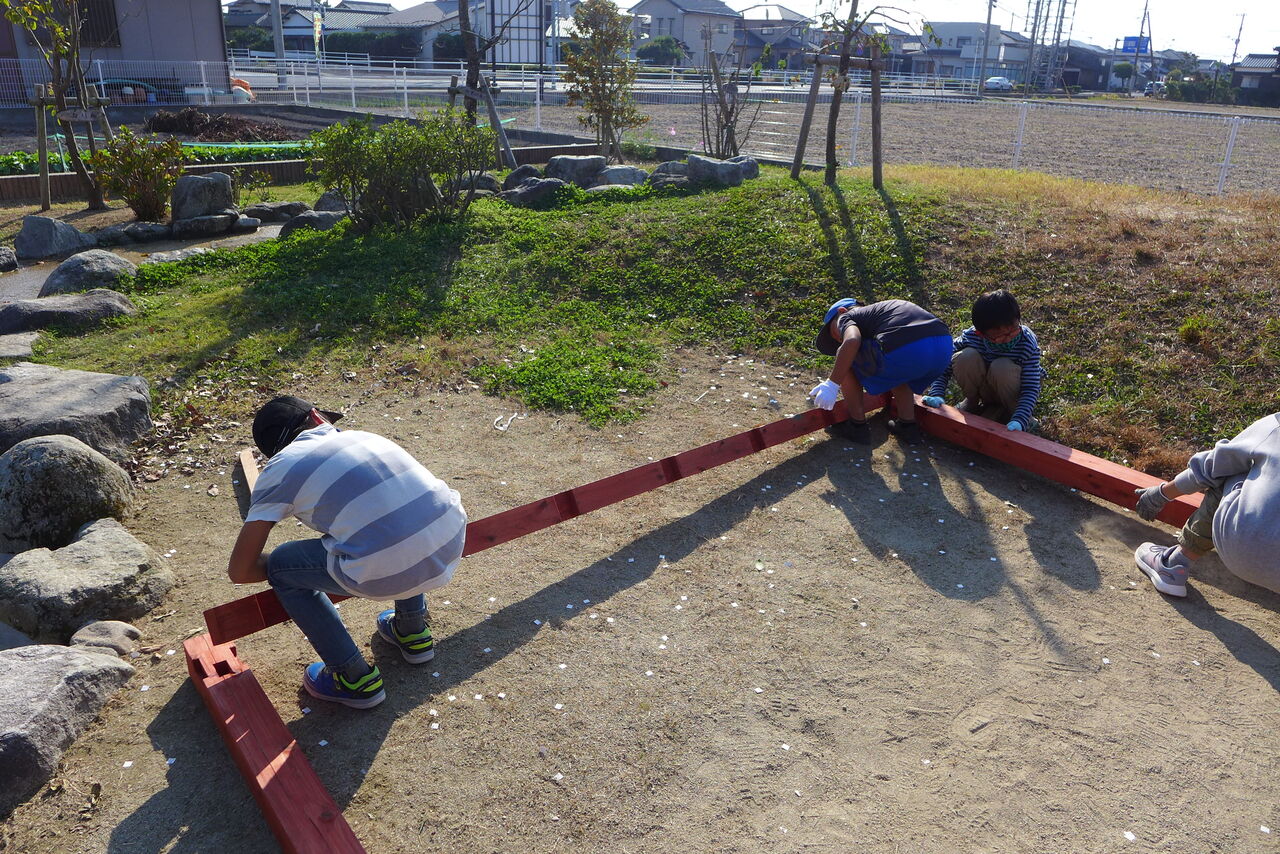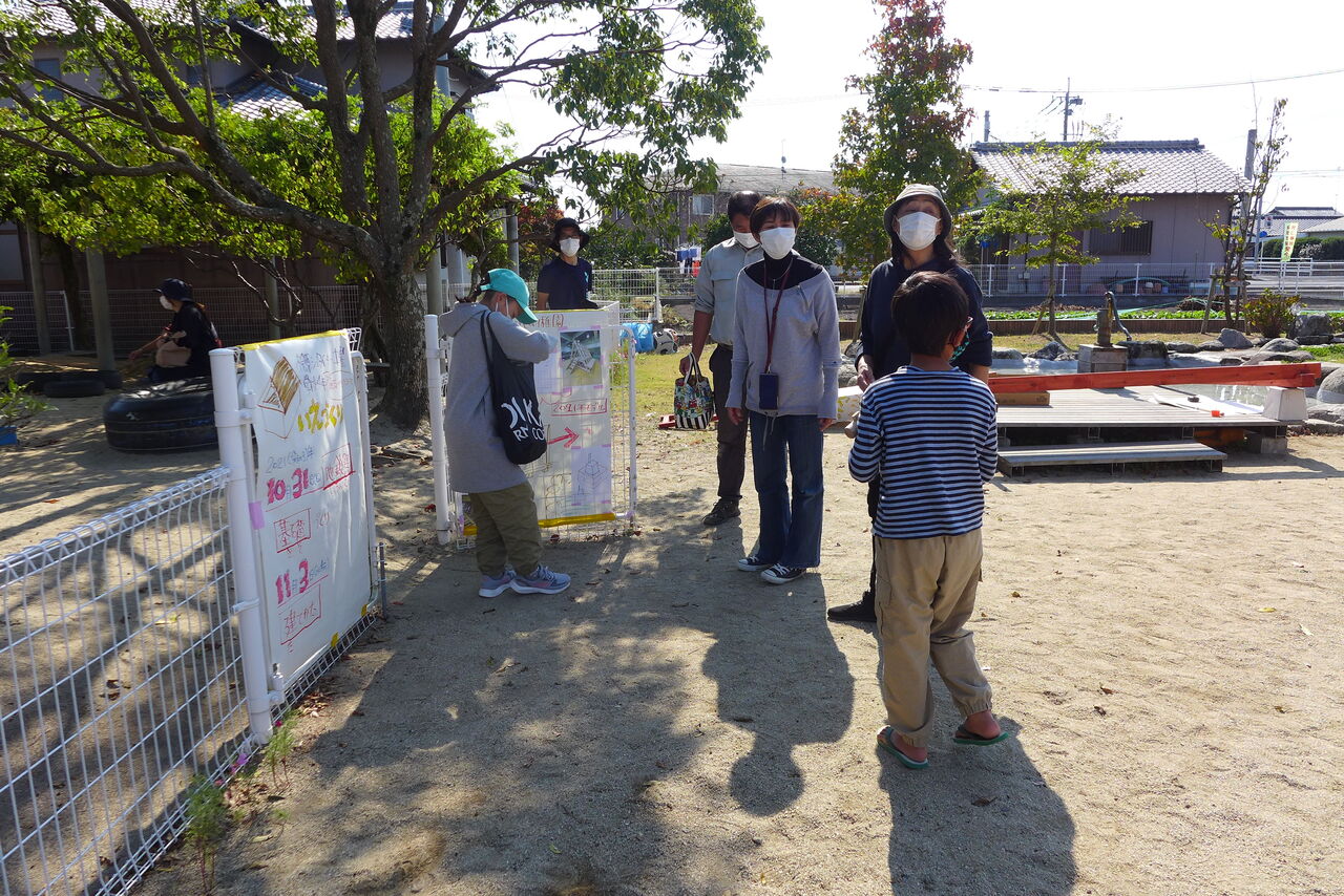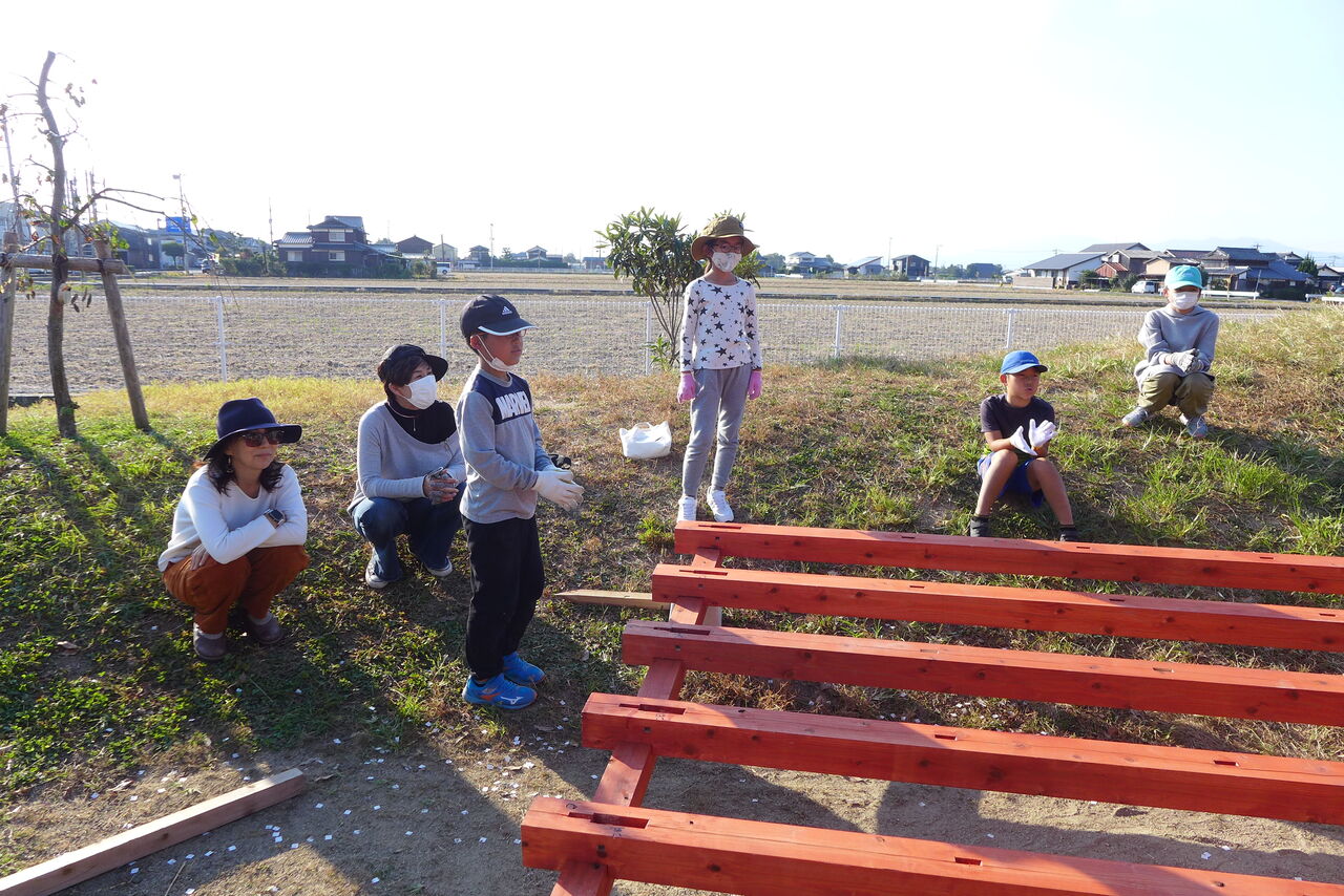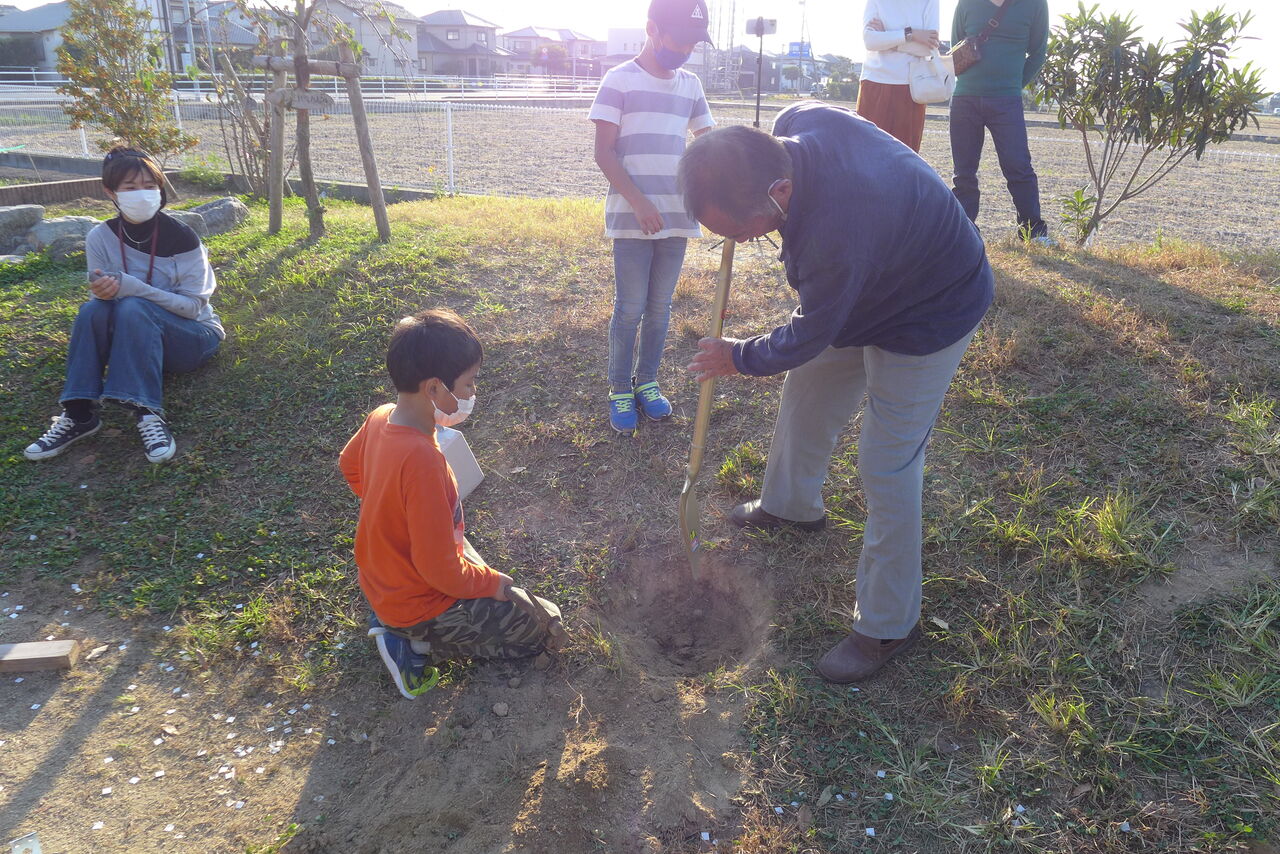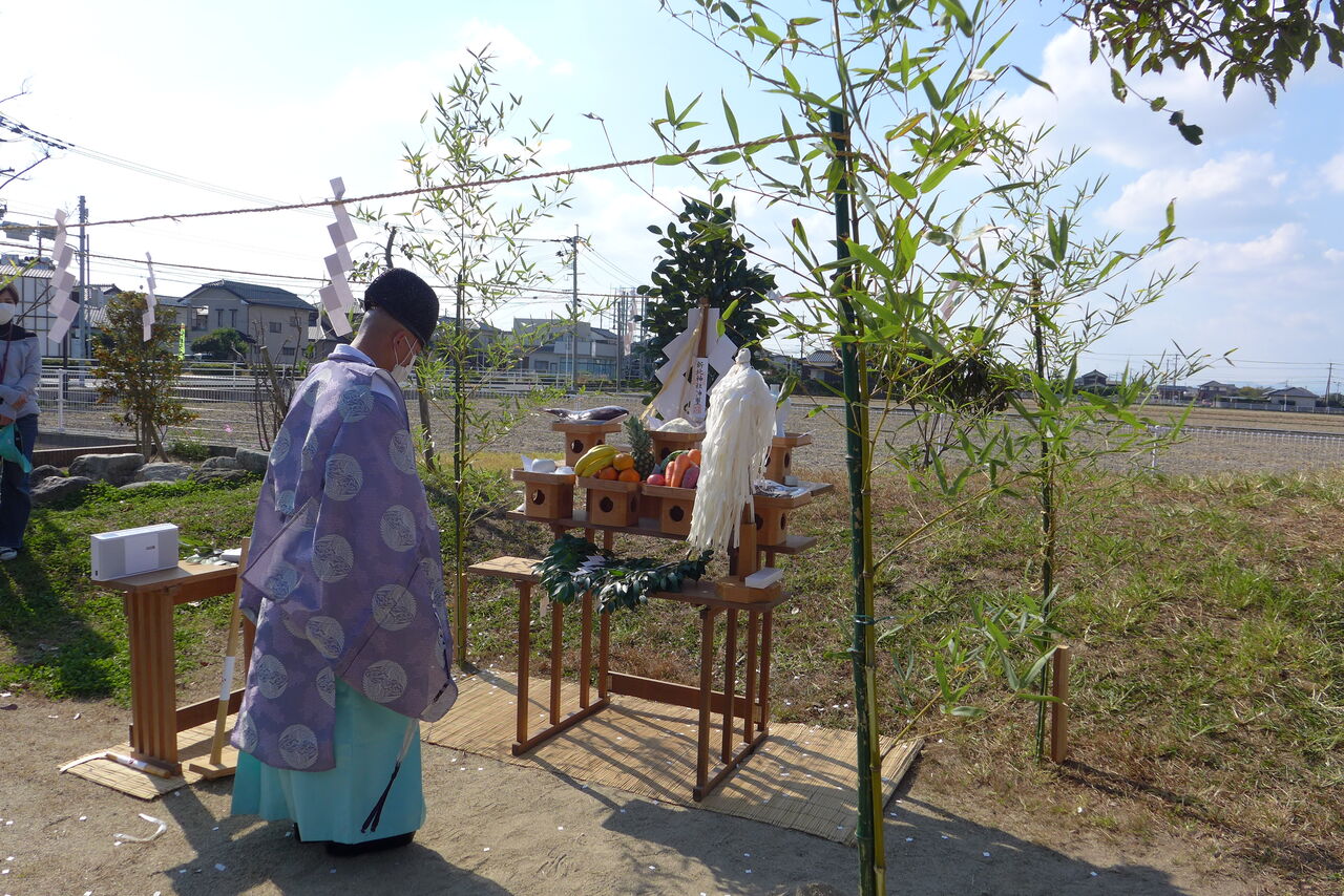 2021年10月31日(日)桧原シュタイナー土曜学校4年8名の「いえづくり」プロジェクト、地鎮祭から開始in諸富南幼稚園!!