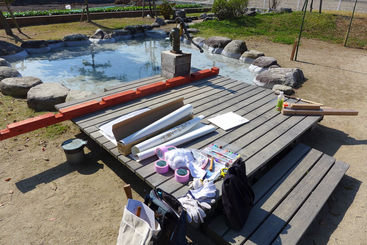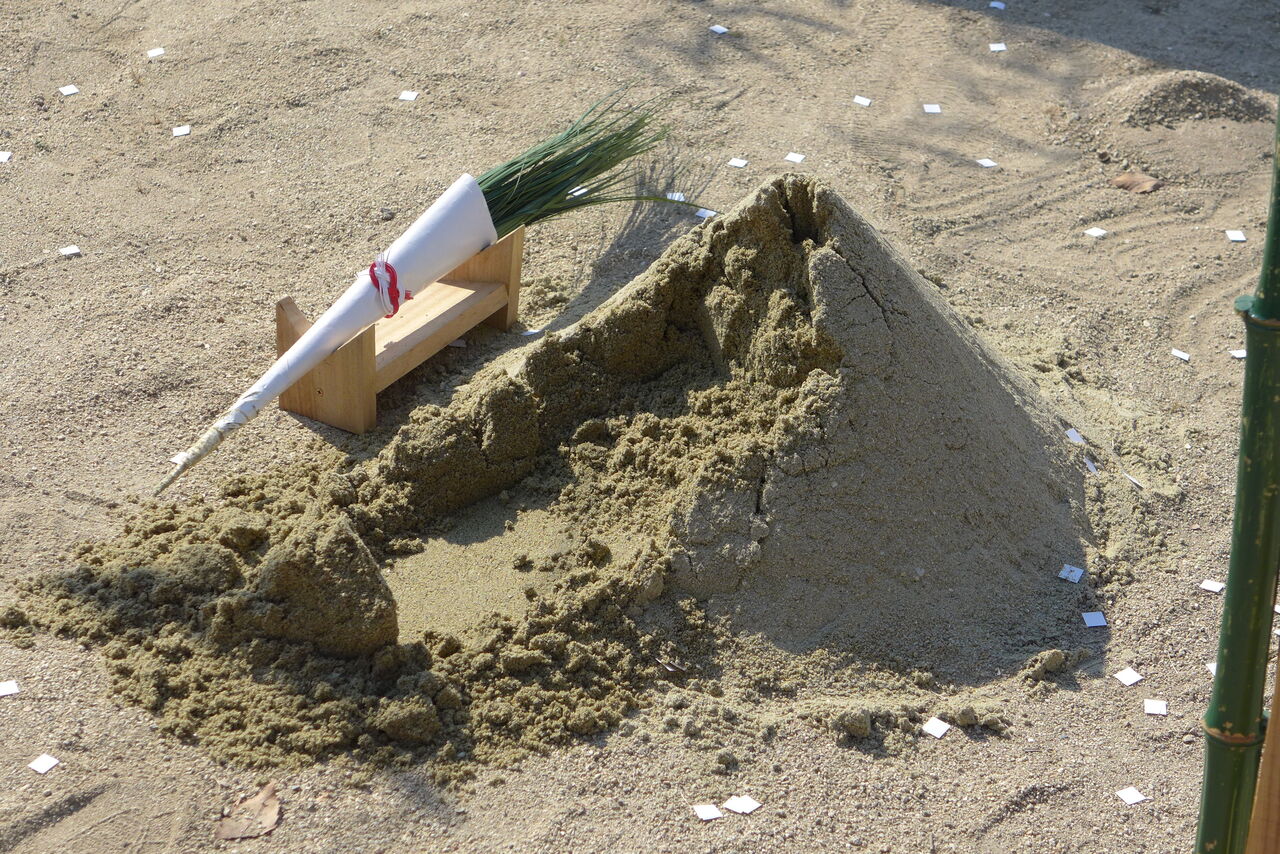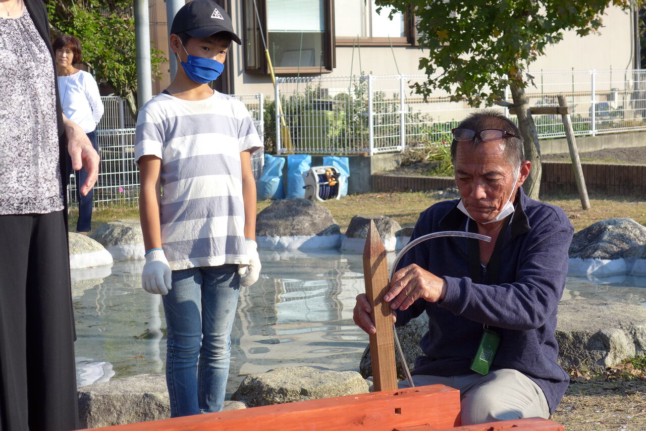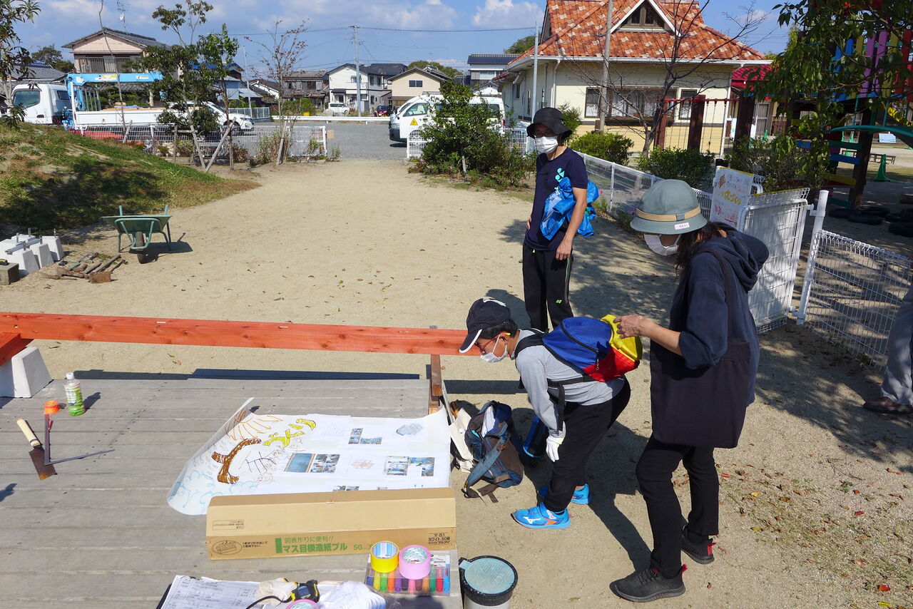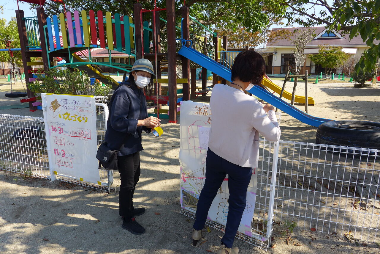 2021年10月31日(日)桧原シュタイナー土曜学校4年8名の「いえづくり」プロジェクト、地鎮祭から開始in諸富南幼稚園!!
