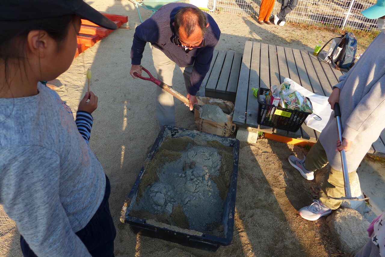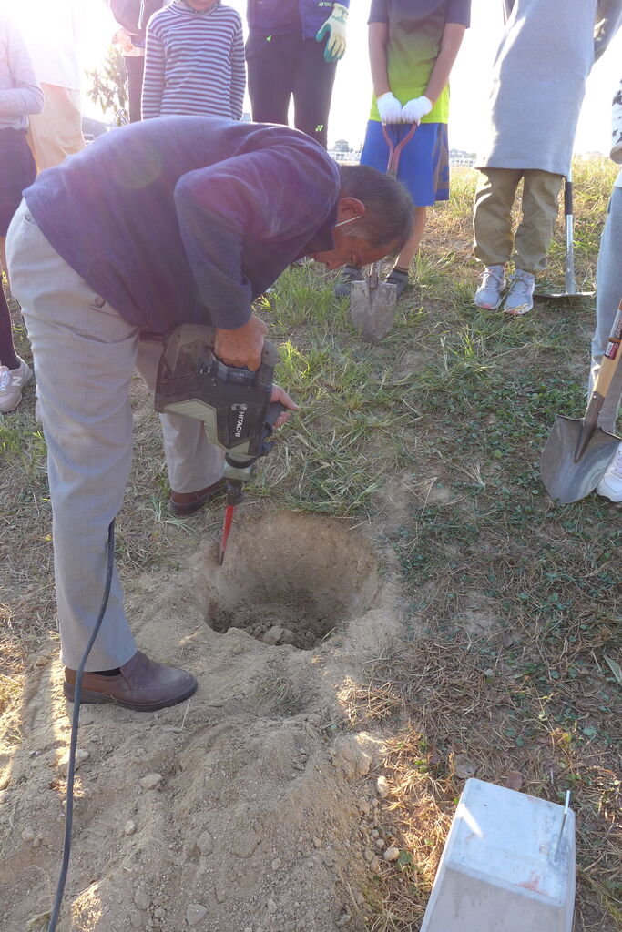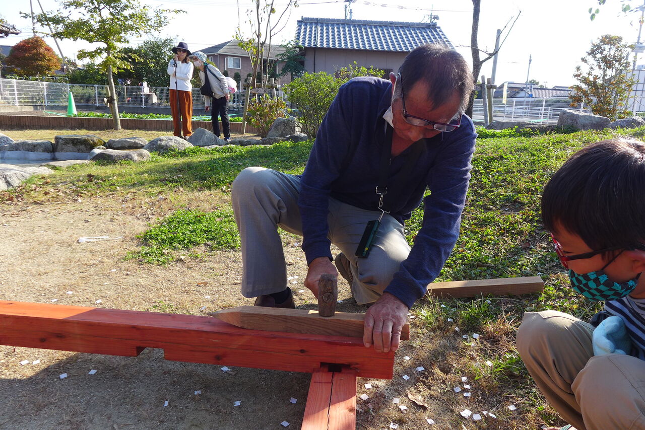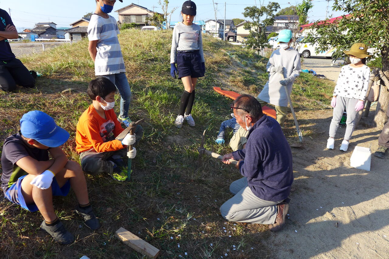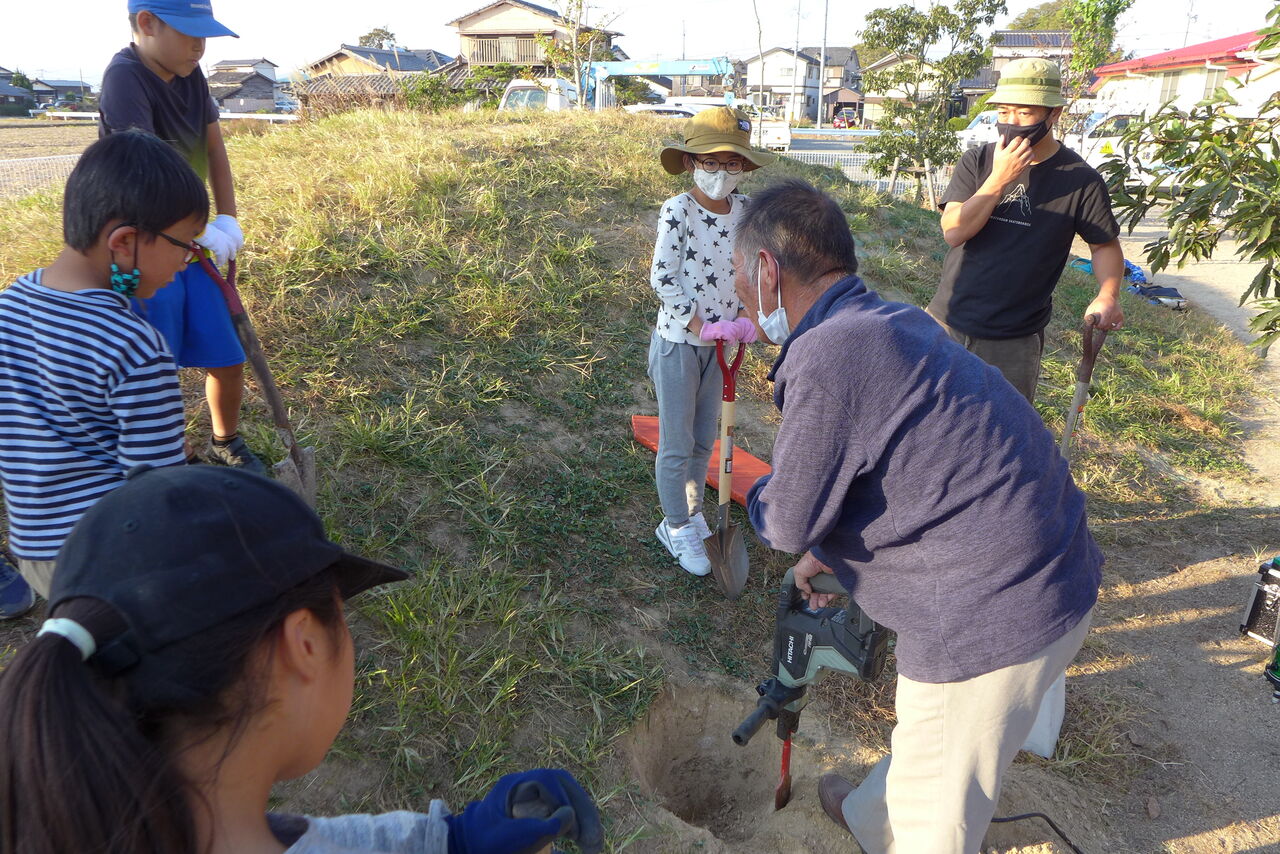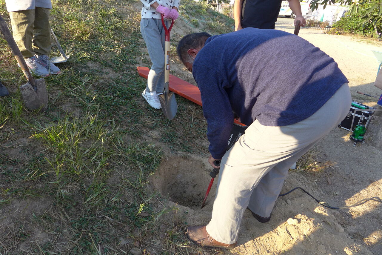 2021年11月1日(月)桧原シュタイナー土曜学校4年いえづくりサイト基礎づくり、千葉順次さん大活躍!午前は諸富北幼稚園サイト!