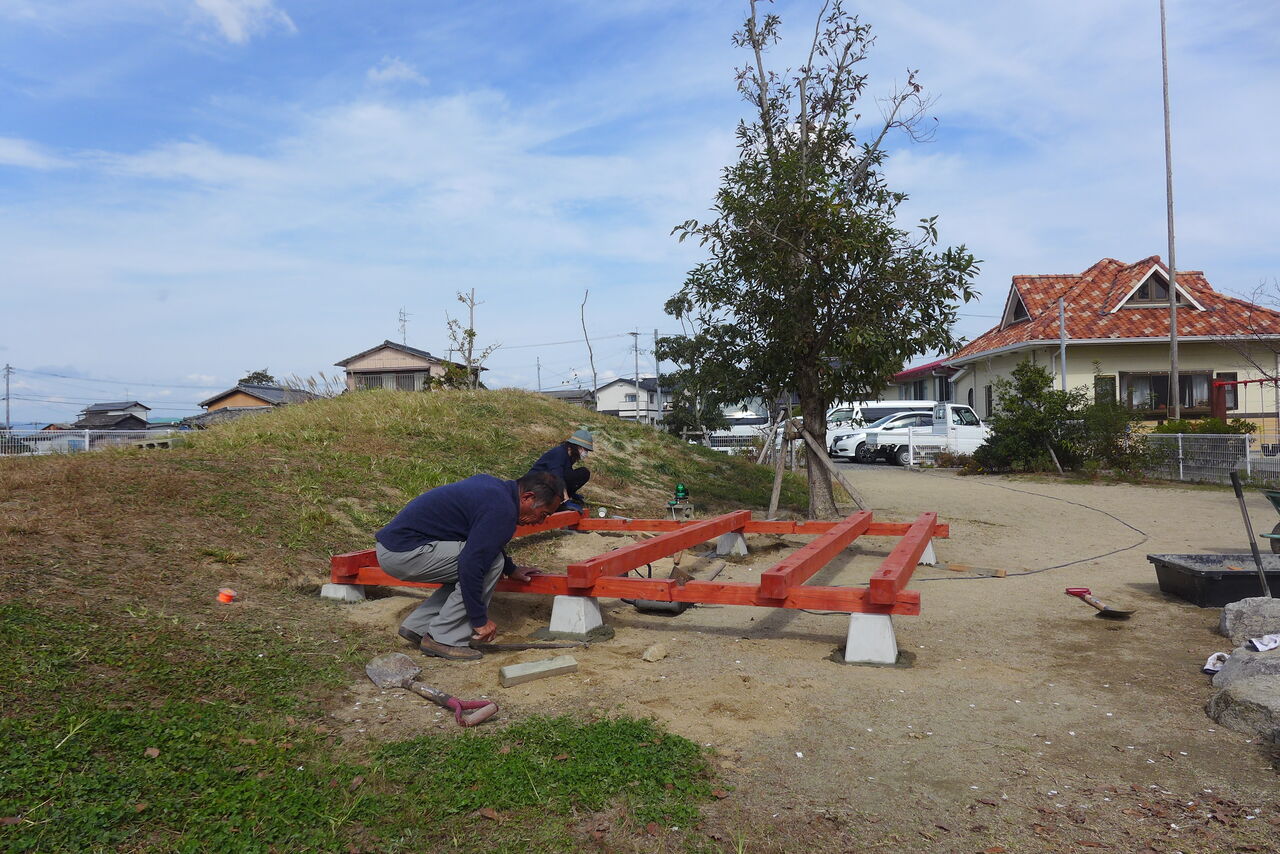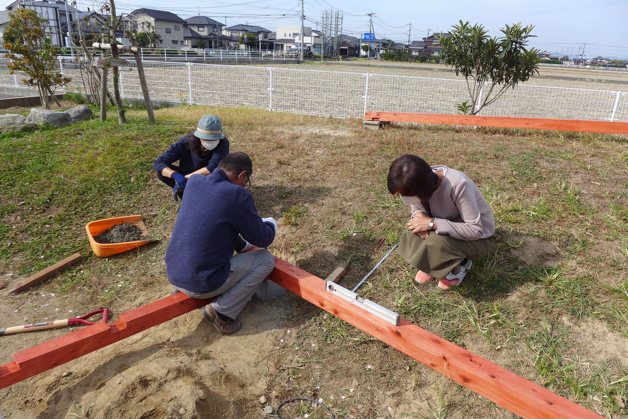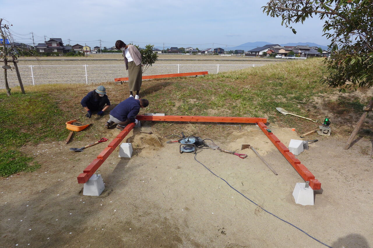 2021年10月31日(日)桧原シュタイナー土曜学校4年8名の「いえづくり」プロジェクト、基礎づくりin諸富北幼稚園!!