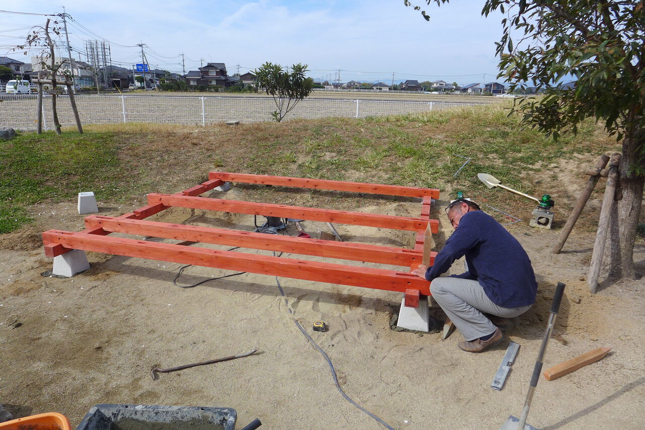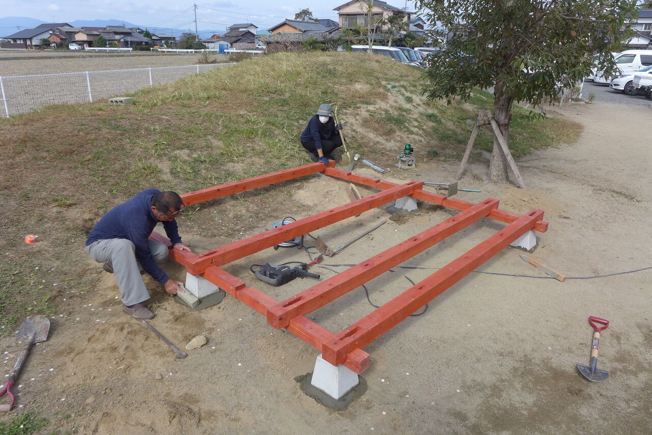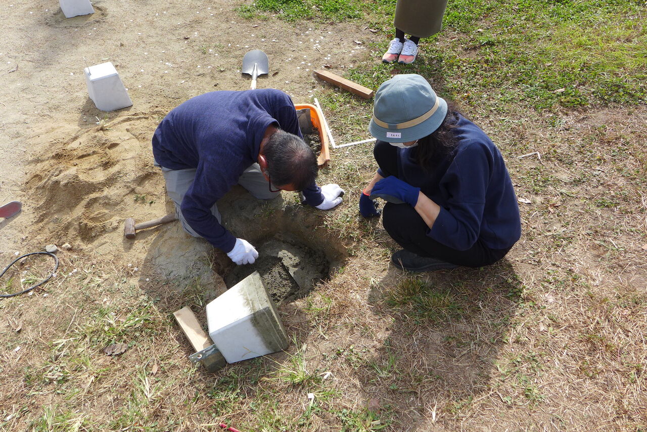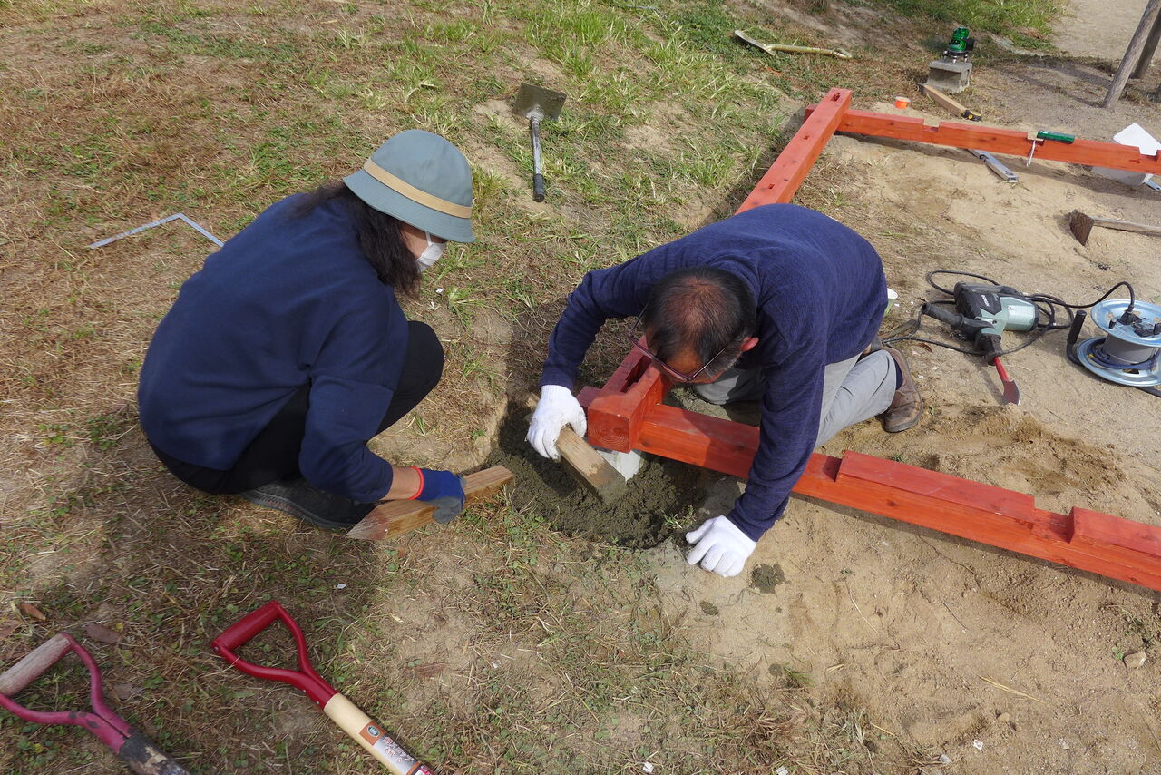 2021年10月31日(日)桧原シュタイナー土曜学校4年8名の「いえづくり」プロジェクト、基礎づくりin諸富北幼稚園!!