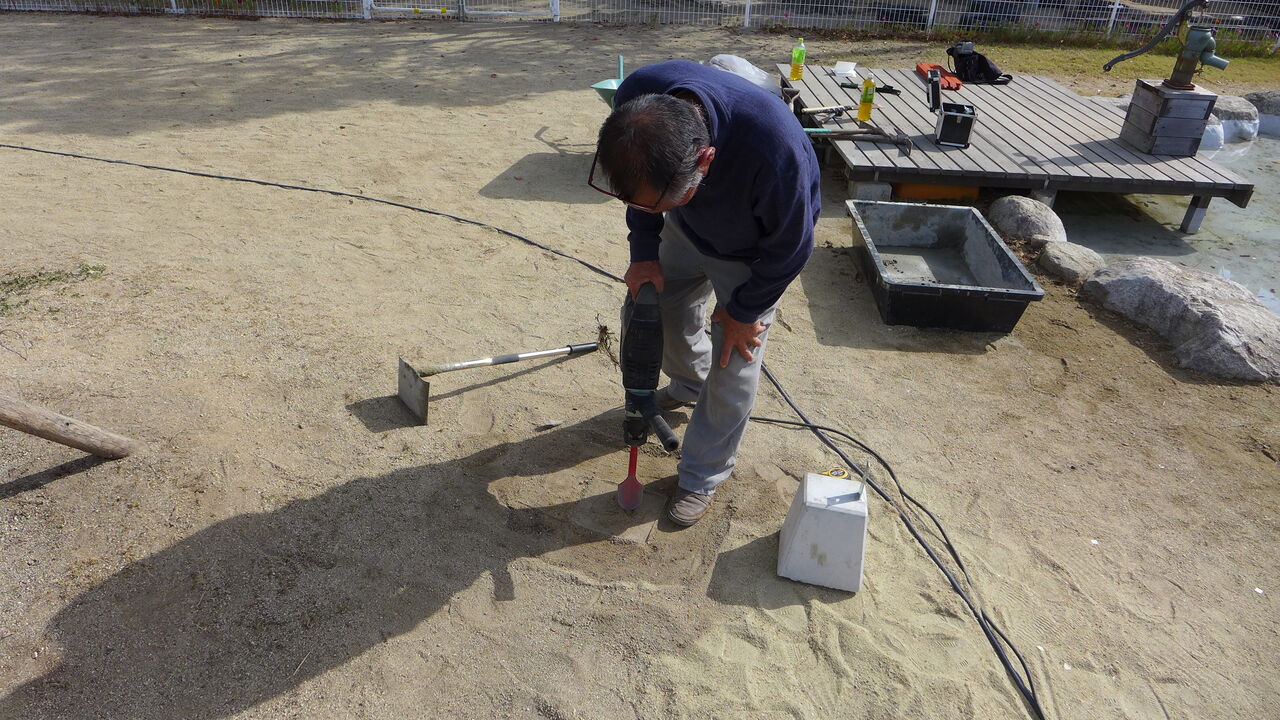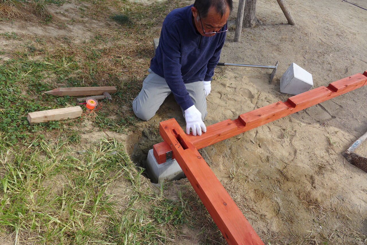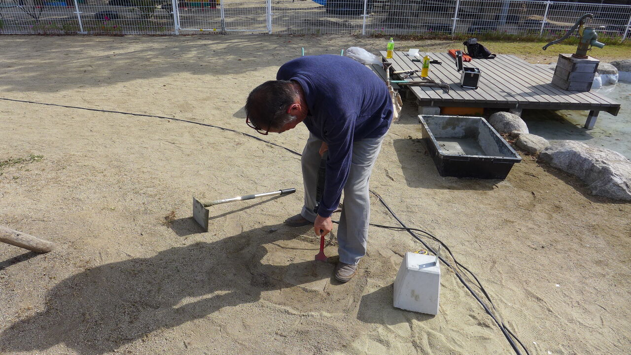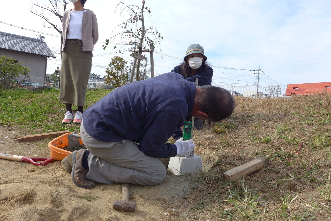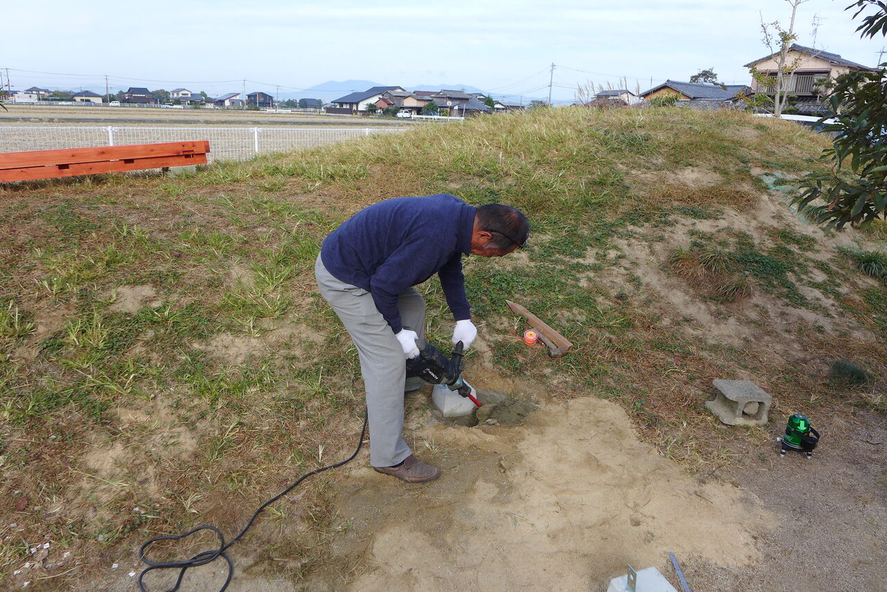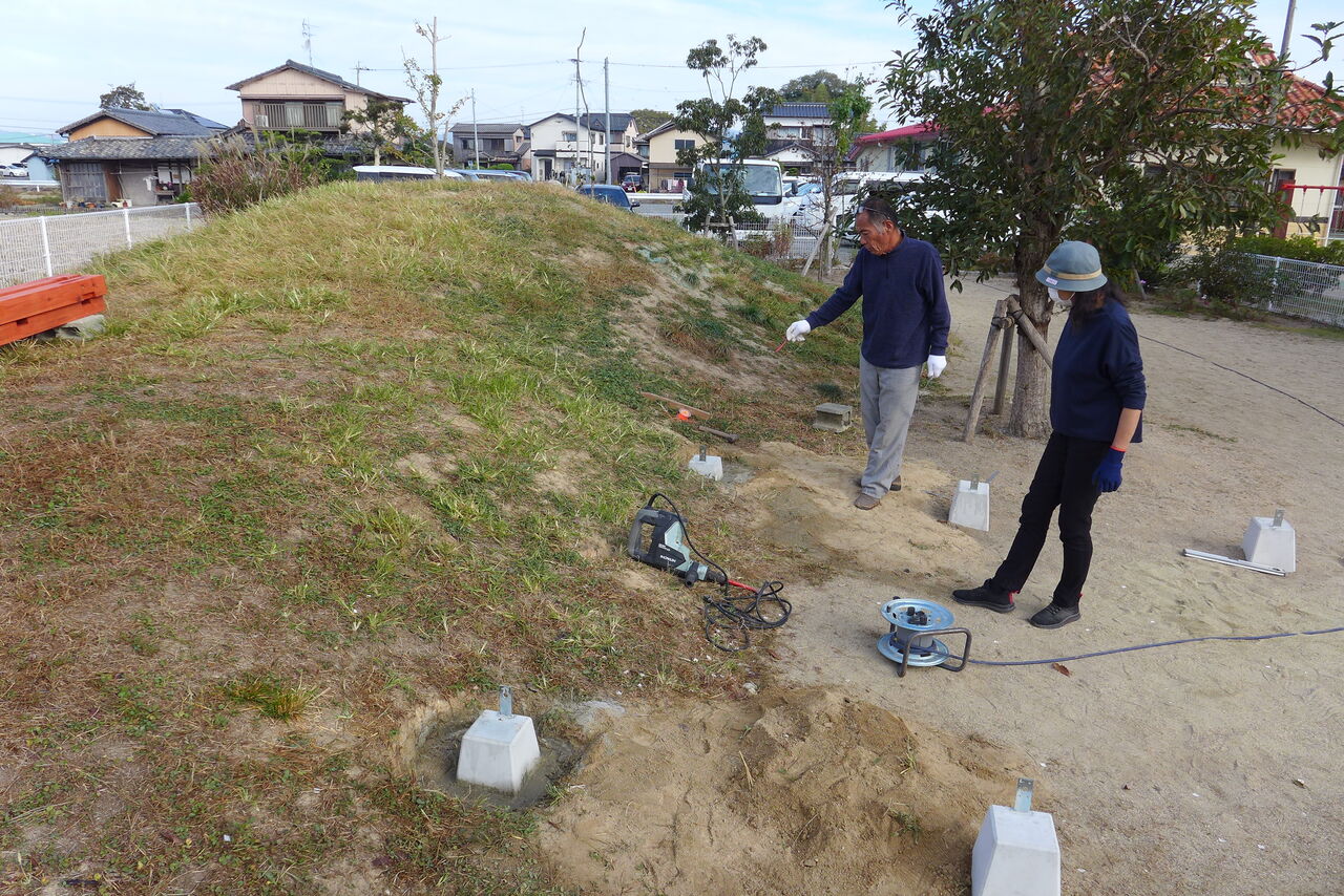2021年11月1日(月)桧原シュタイナー土曜学校4年いえづくりサイト基礎づくり、千葉順次さん大活躍!午前は諸富北幼稚園サイト!