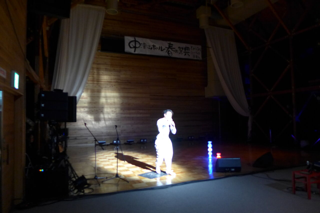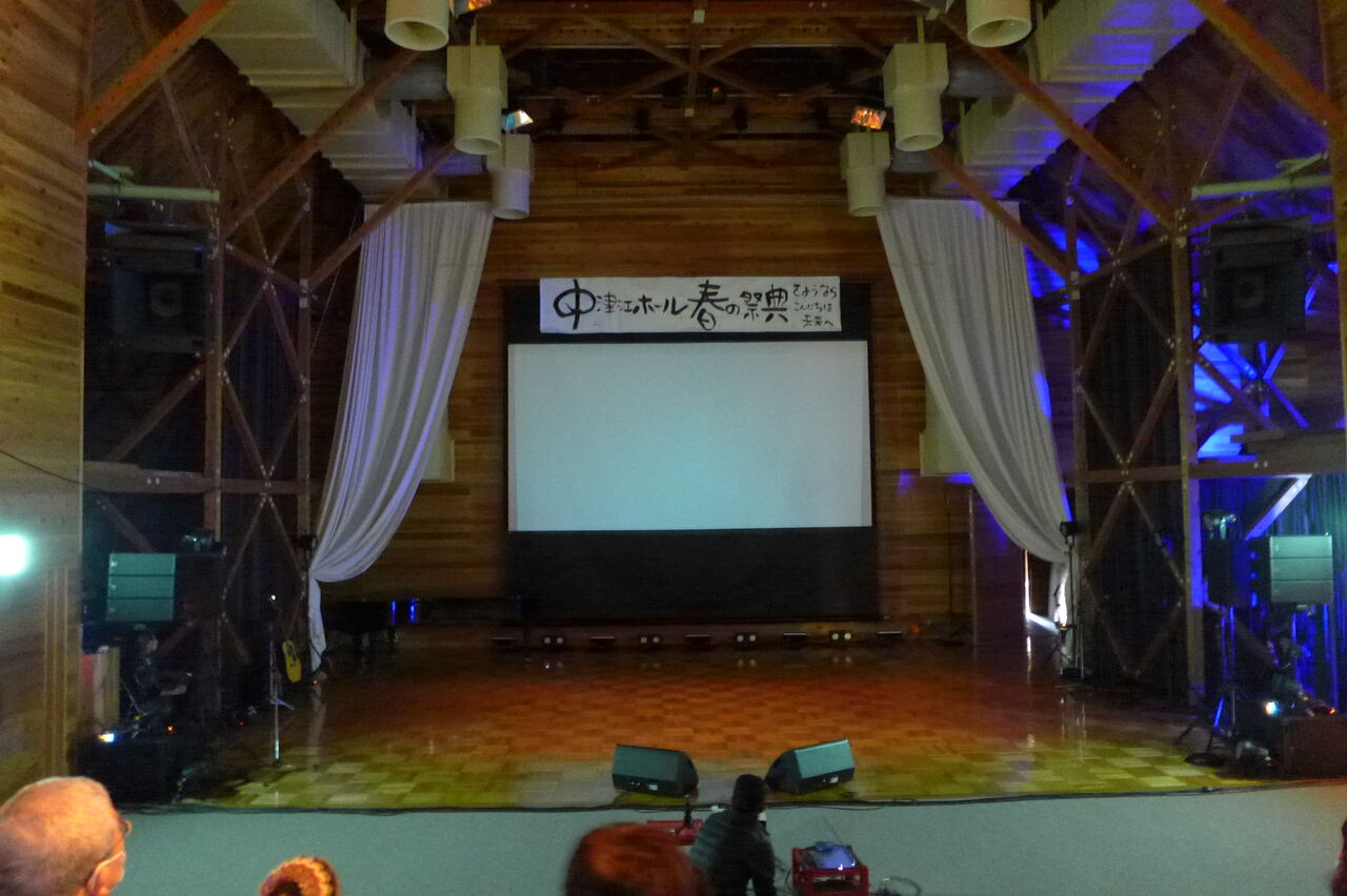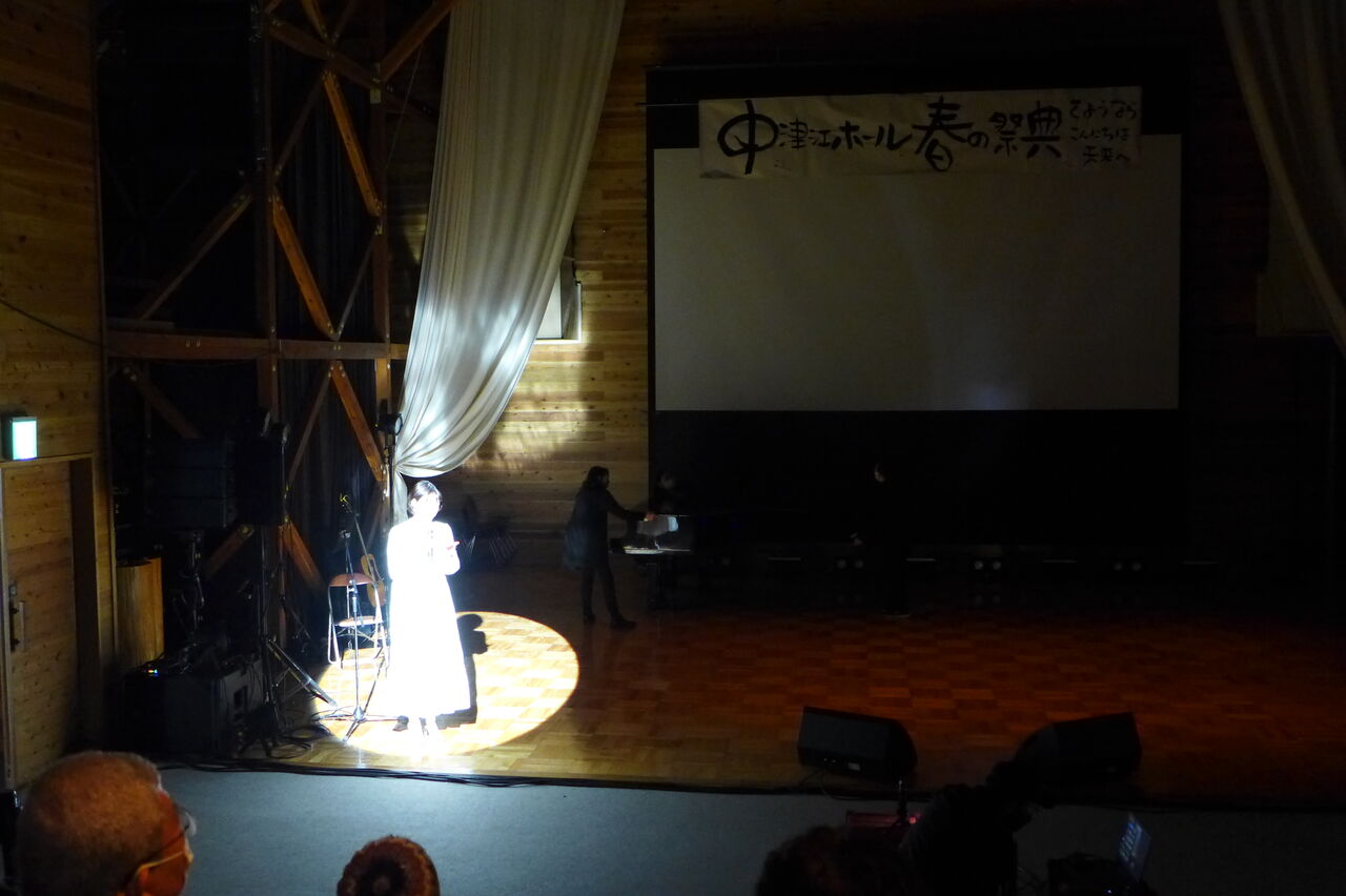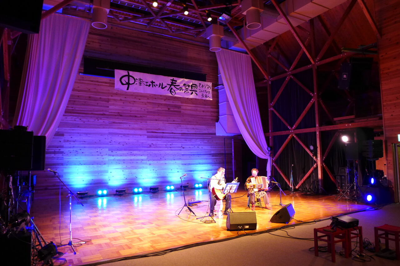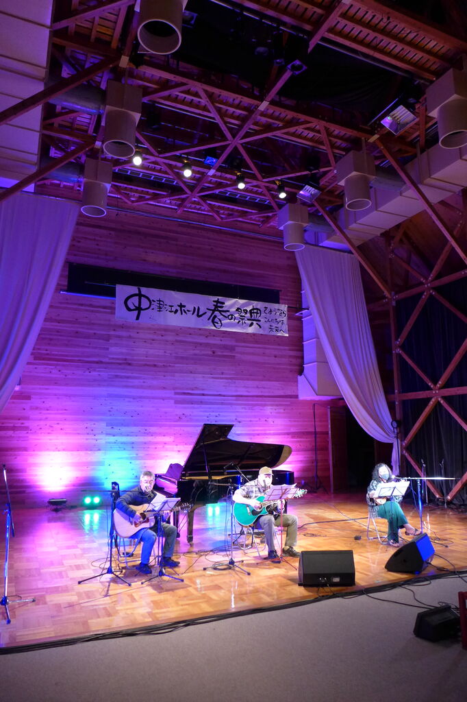 ついに登場!上津江診療所の医師山崎世紀先生は、威風堂々とした体躯に、実行委員会からのたってのお願いで、今日こそ白衣を着ていただき、大絶唱!のギター弾き語りライブ!