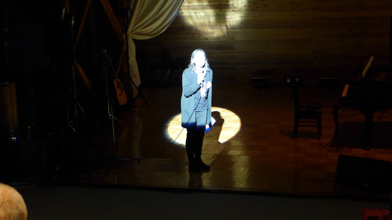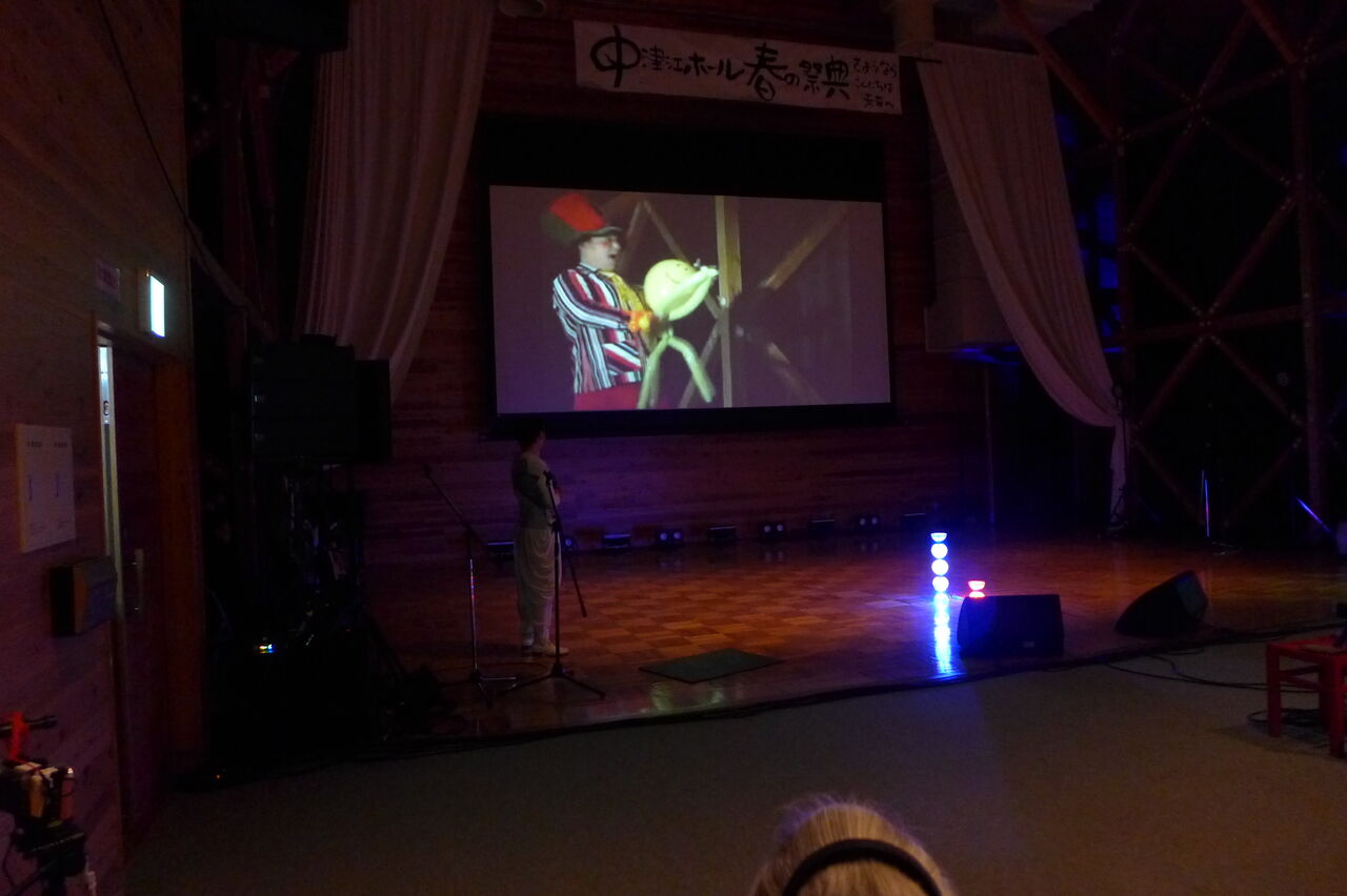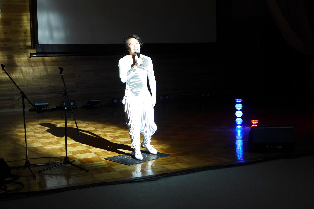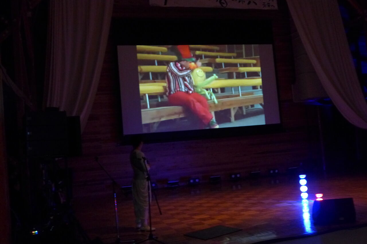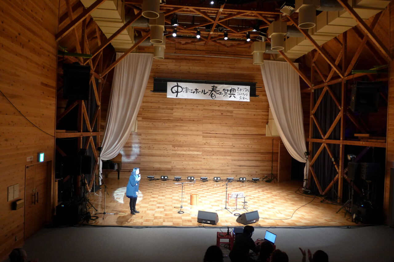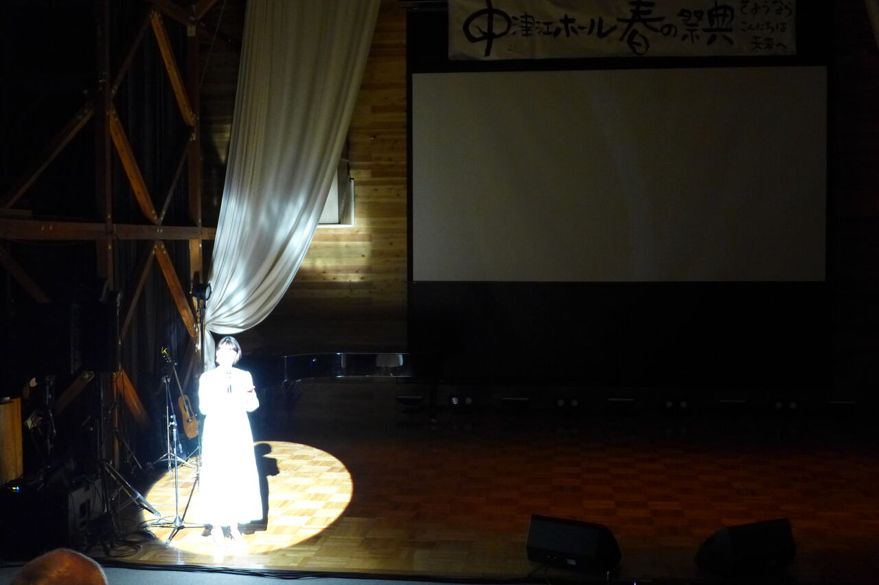 ついに登場!上津江診療所の医師山崎世紀先生は、威風堂々とした体躯に、実行委員会からのたってのお願いで、今日こそ白衣を着ていただき、大絶唱!のギター弾き語りライブ!