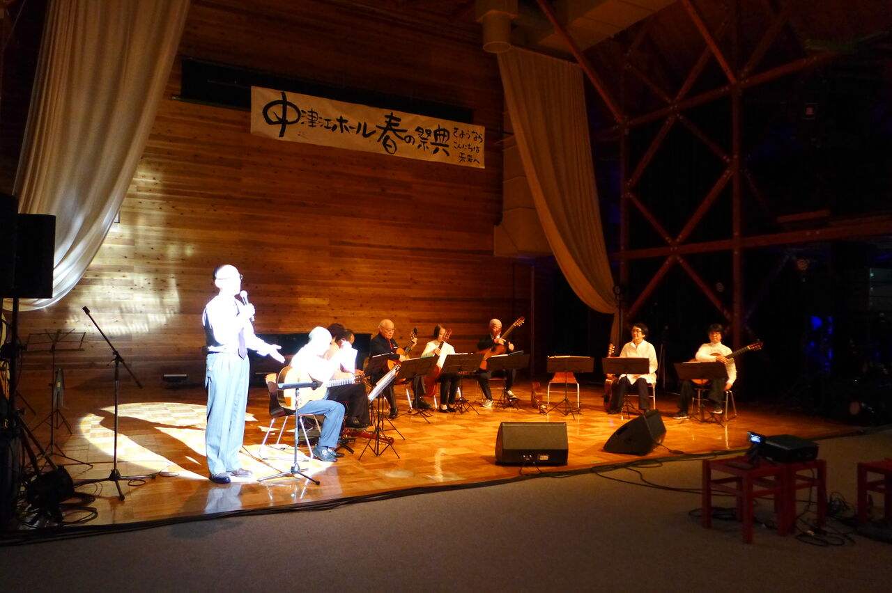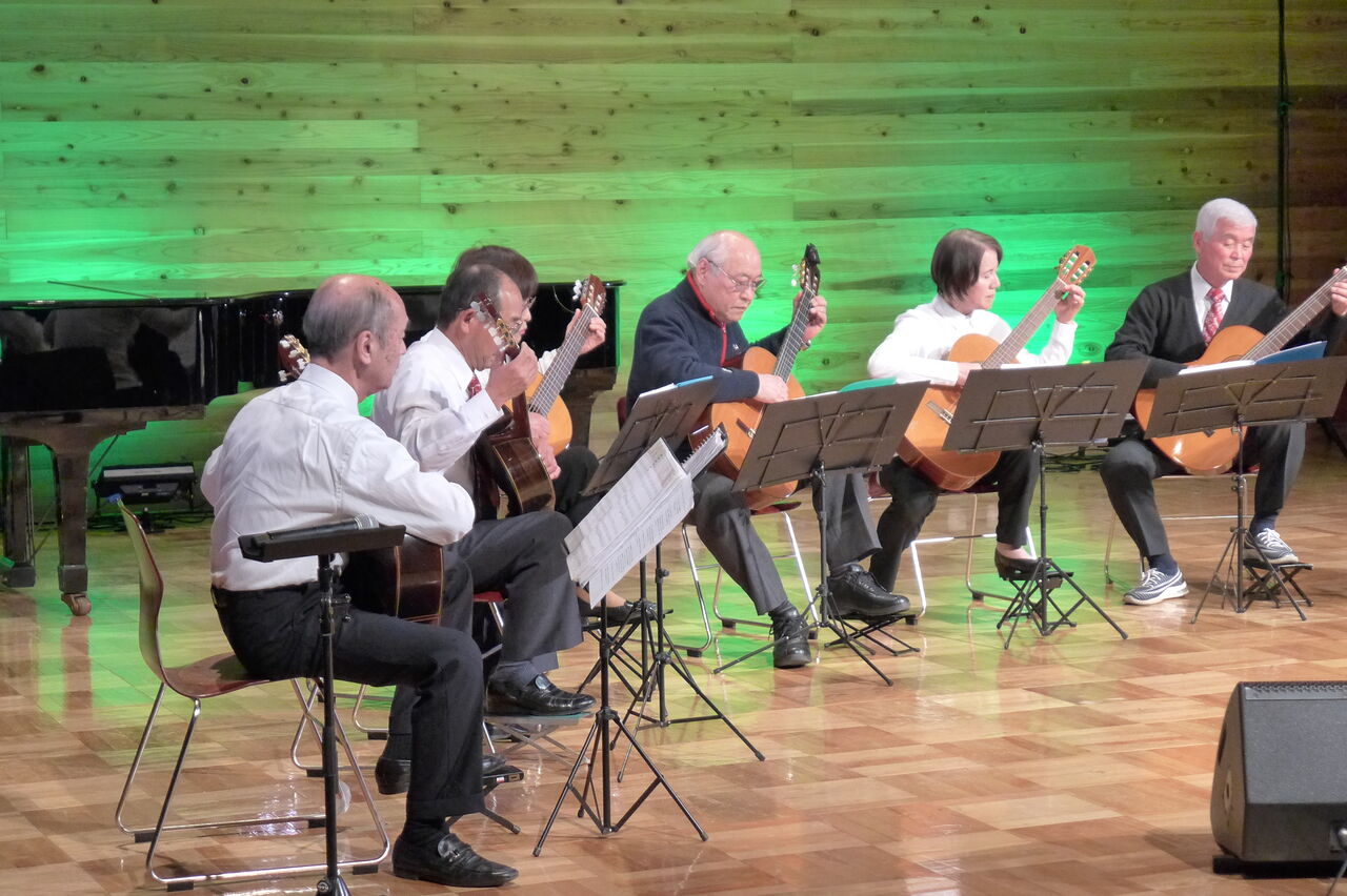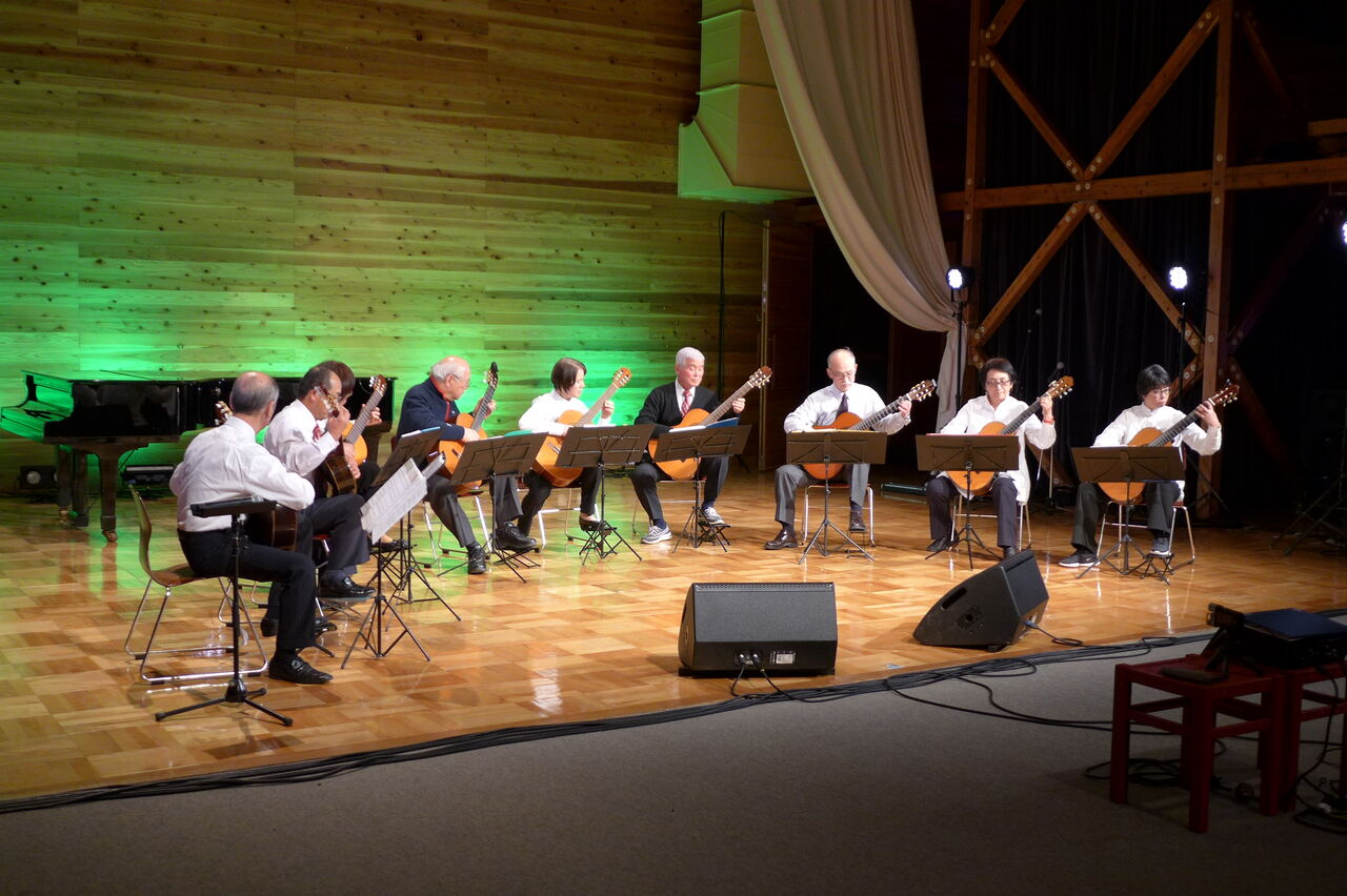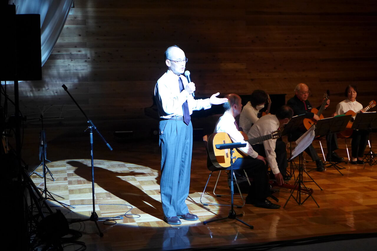 実行委員会共同代表の宇野公是先生が参加される日田ギターアンサンブル、指導の桜木先生は大分県内でも知られたピアノ調律名師です。軽妙なMCも大好評でした!