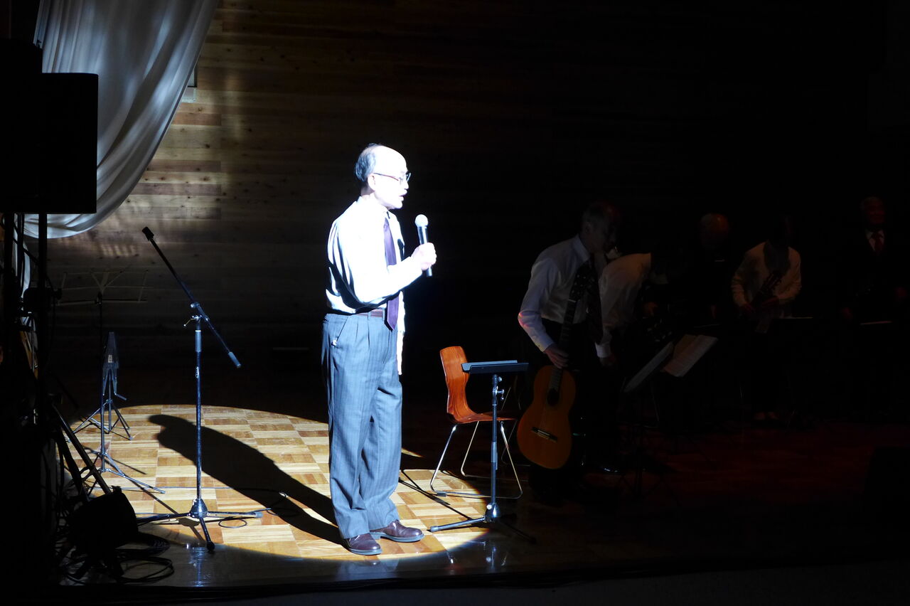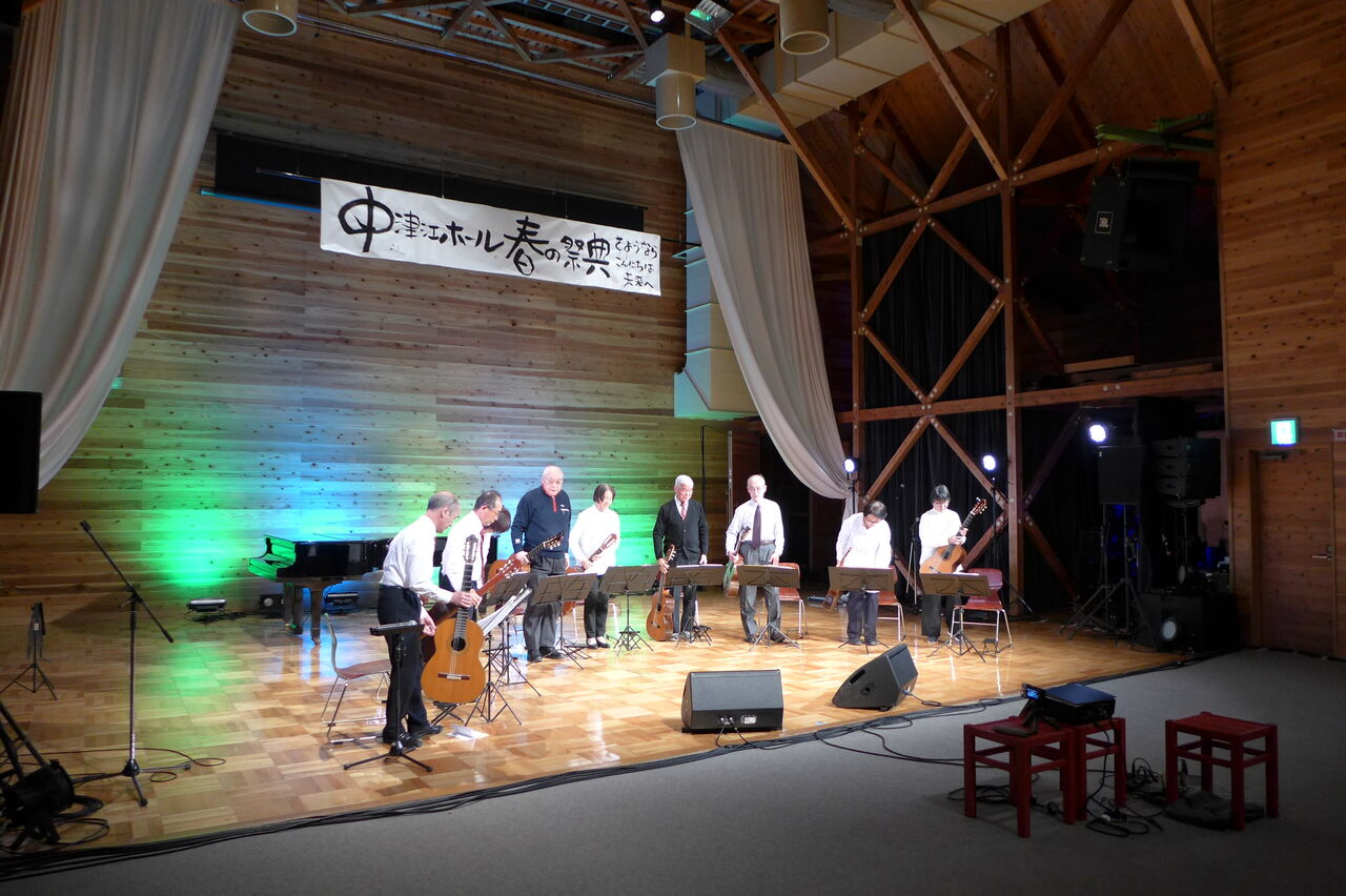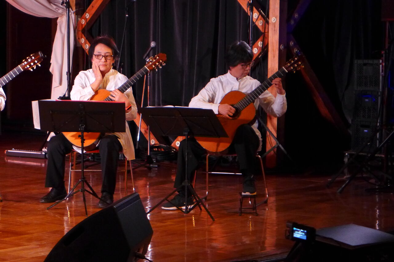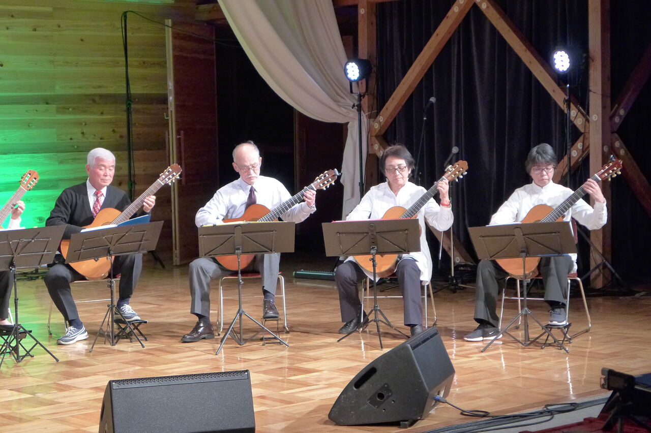 実行委員会共同代表の宇野公是先生が参加される日田ギターアンサンブル、指導の桜木先生は大分県内でも知られたピアノ調律名師です。軽妙なMCも大好評でした!