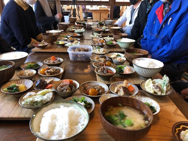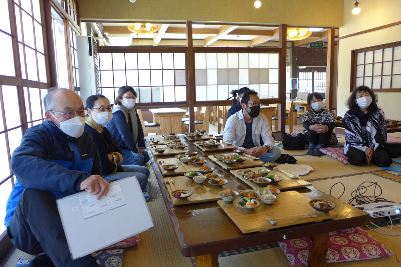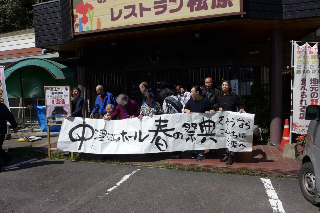 中津江ホール〈春の祭典〉実行委員会の事後活動。宮成英昭先生の進行で善男善女による第21回ミーティング、おすそ分け野菜の松原レストラン(大分県日田市大山町)にて開催!!