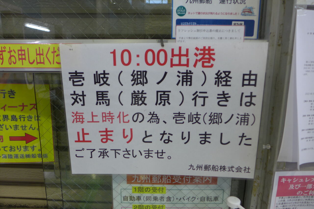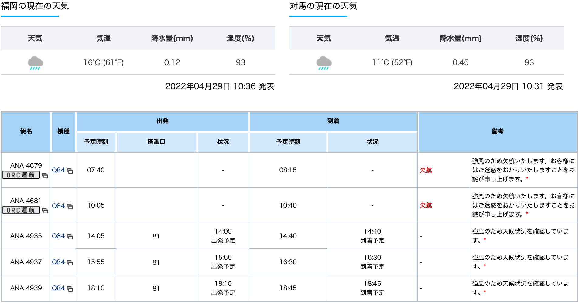 ANA便も、ジェットホイル(ヴィーナス)もフェリーも厳原行きを決行せずに欠航となった。