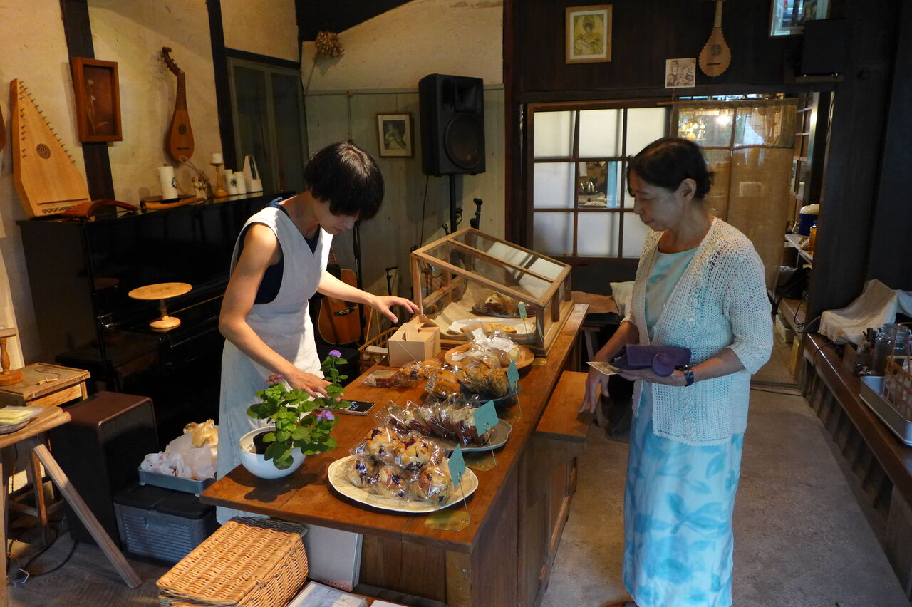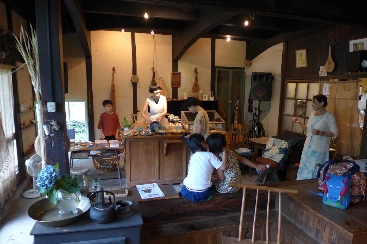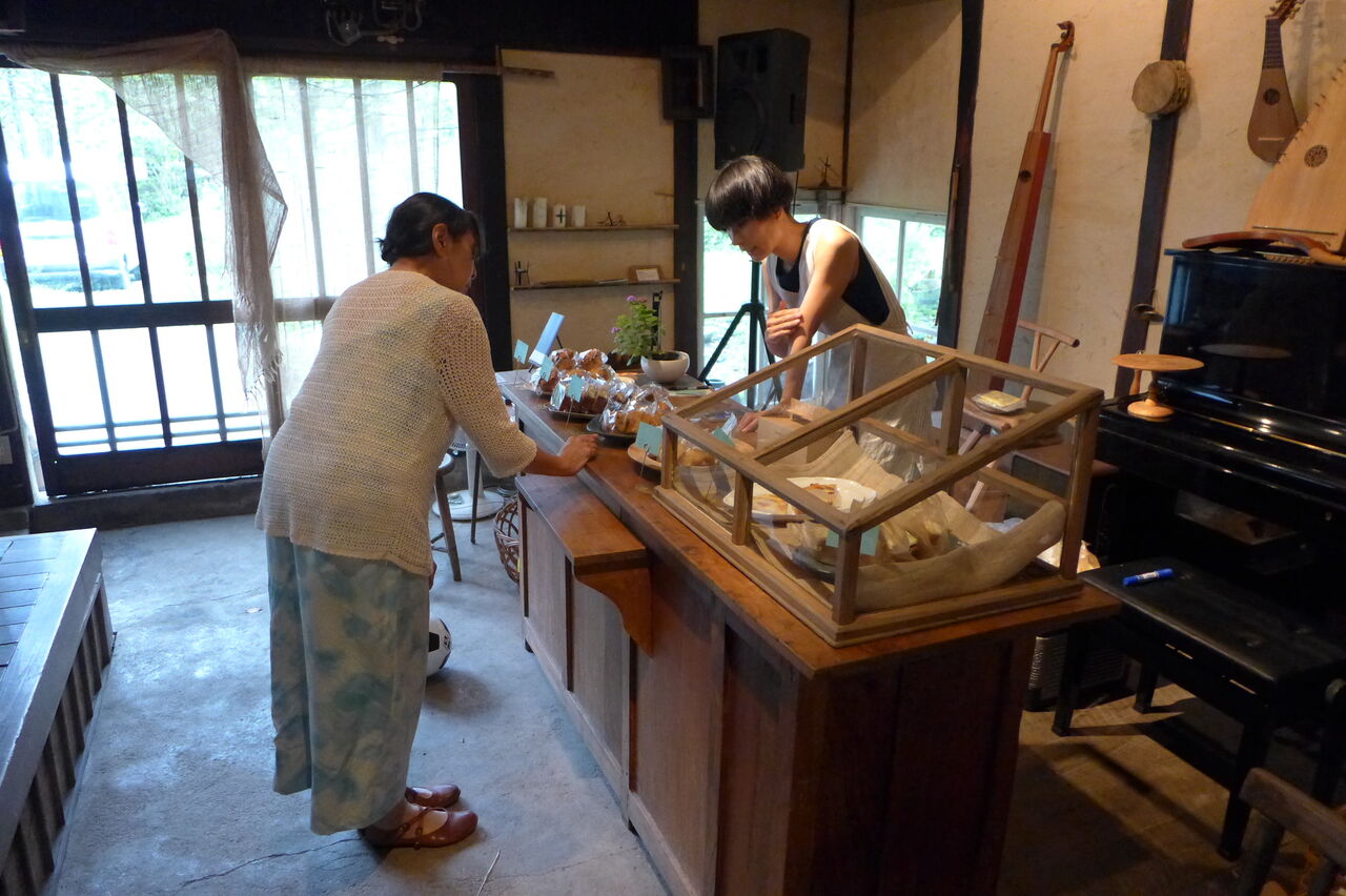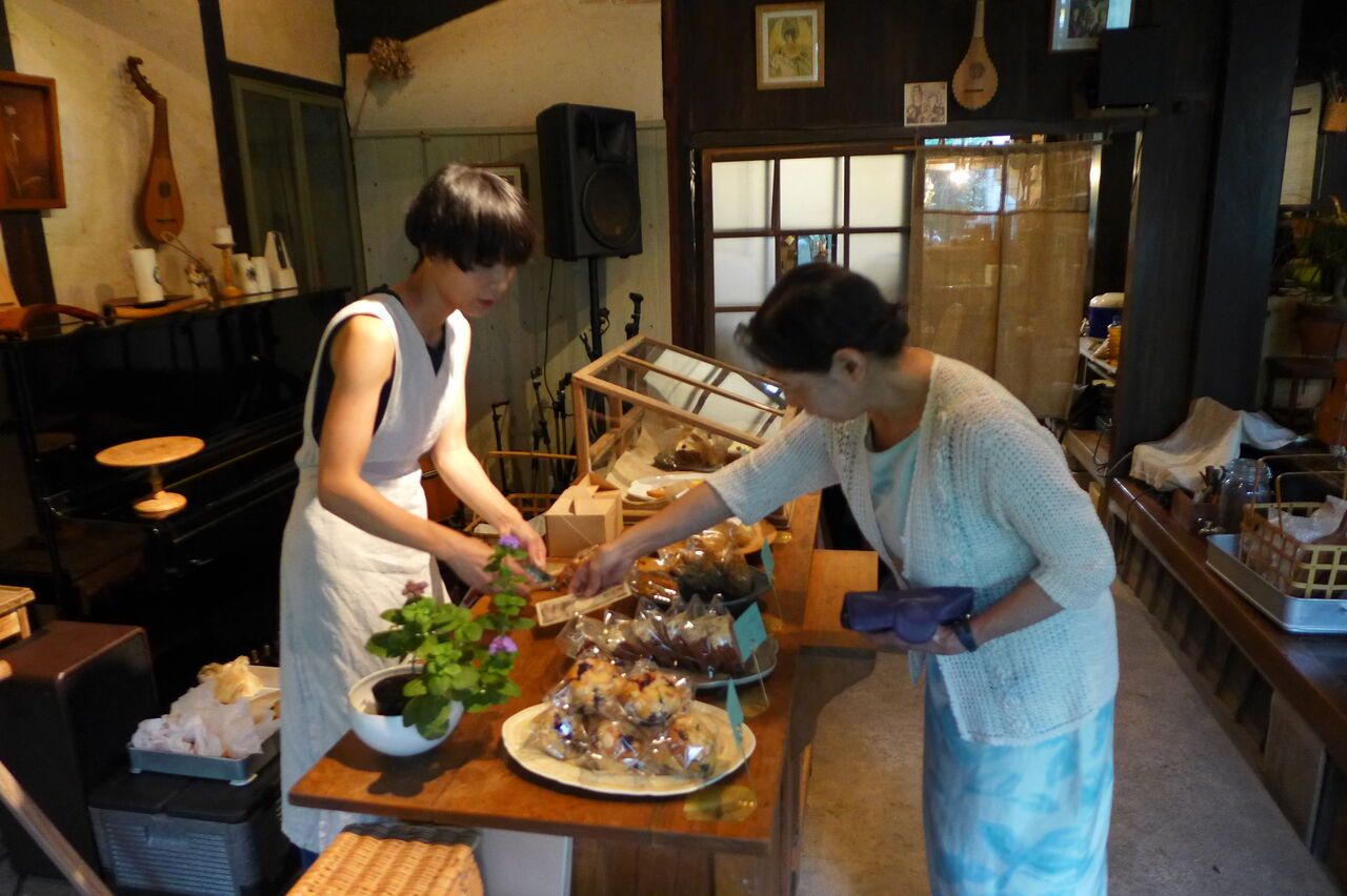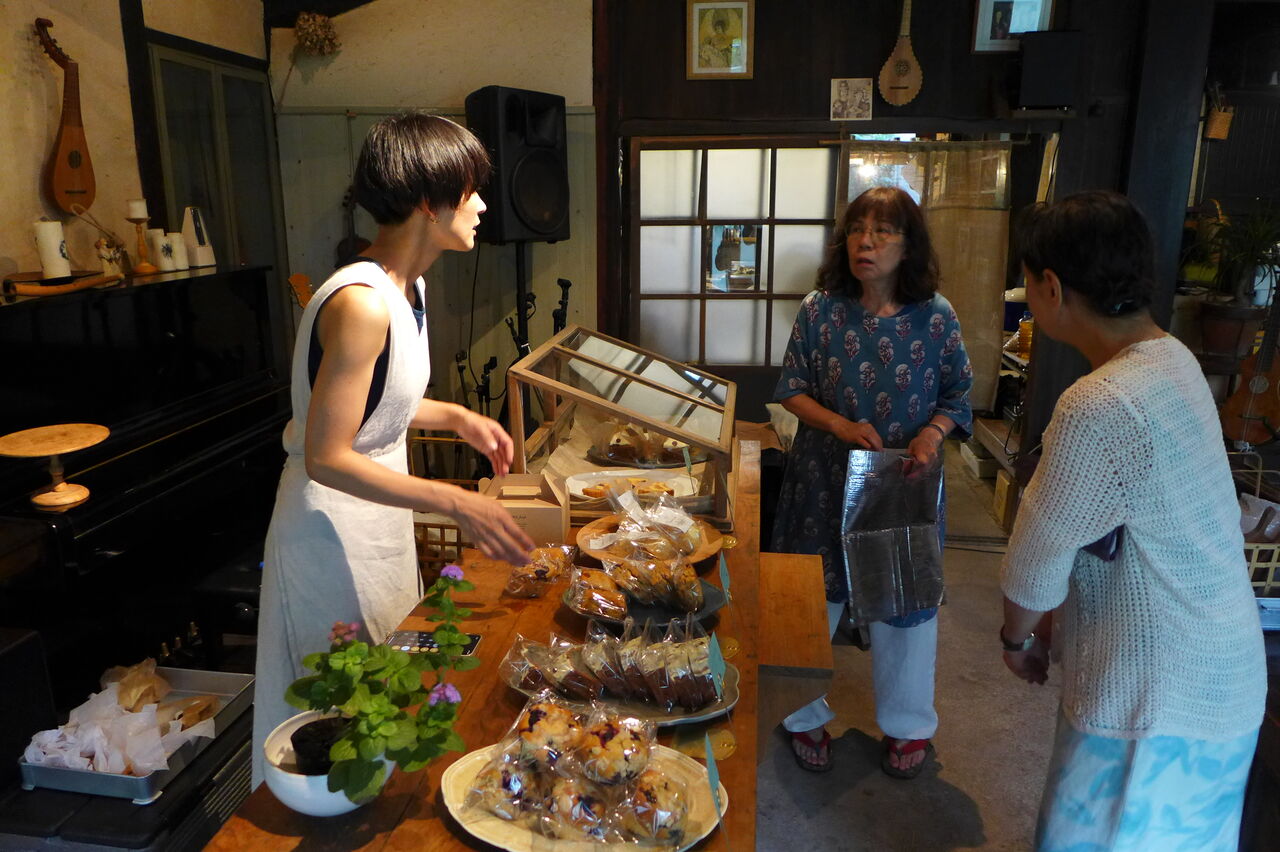 カテリーナの主屋土間ステージを用いて畑(松本)みんなさん(九州大学21世紀プログラム卒業生)手づくりケーキ屋開店!