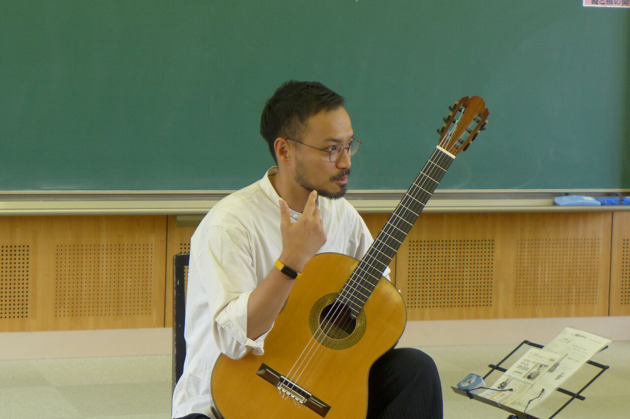 2023年6月22日(木)竹田市立都野小学校へ、ギタリスト大萩康司さんのアウトリーチ演奏に立ち会い!
