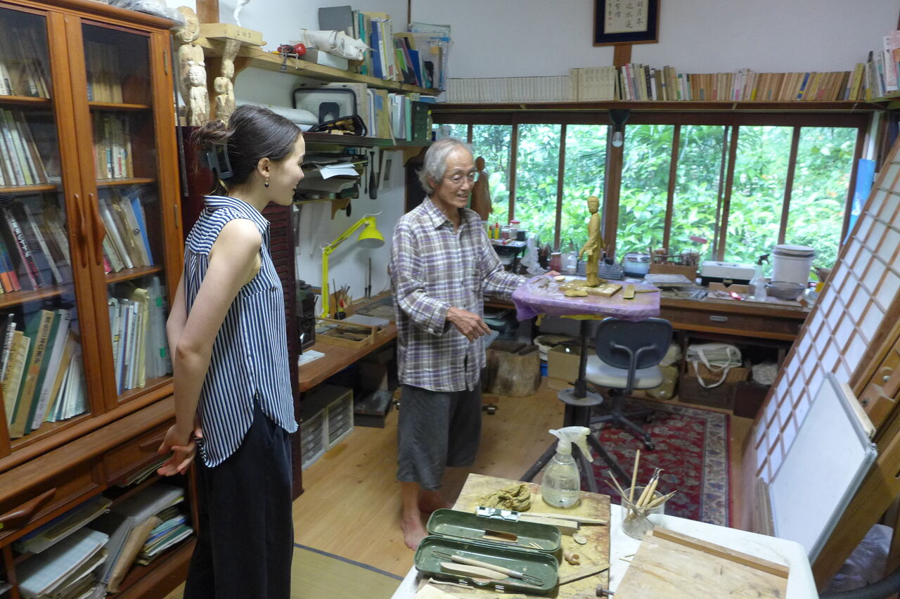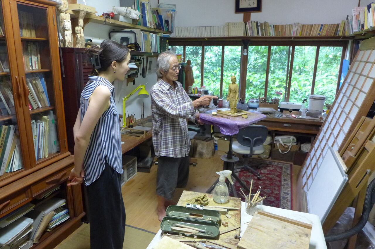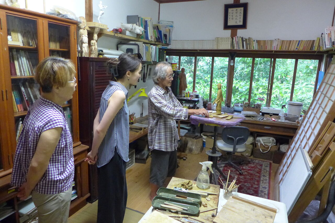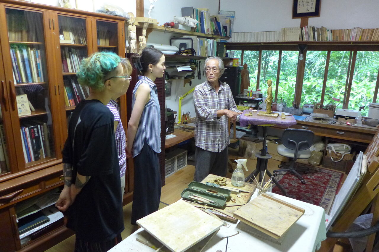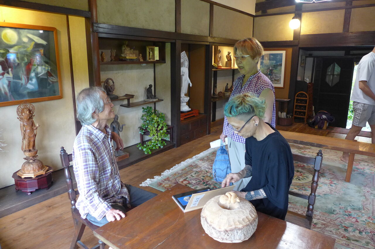 ベルリン・カメ真智子さん御一家、竹田総合学院を訪問、竹工芸家中臣一先生アトリエにて!