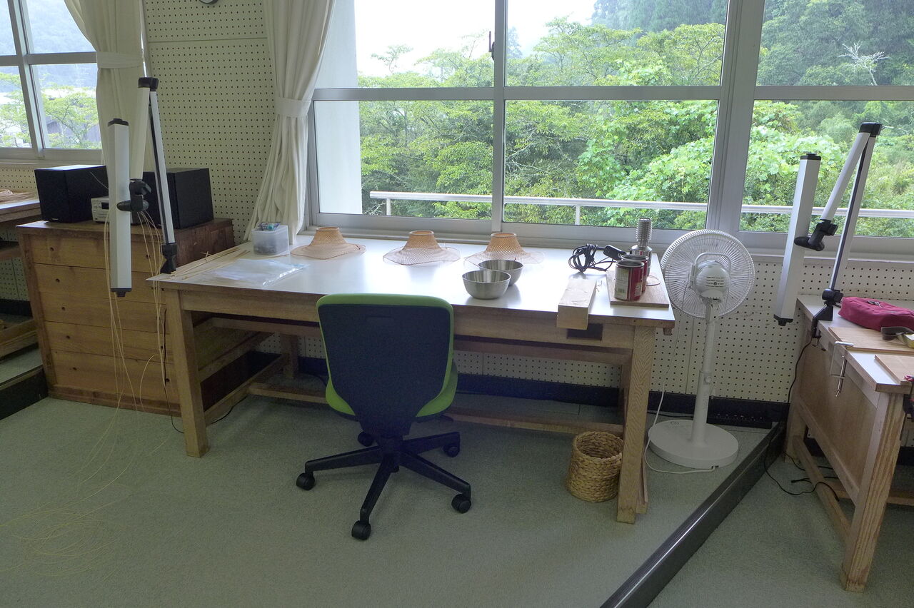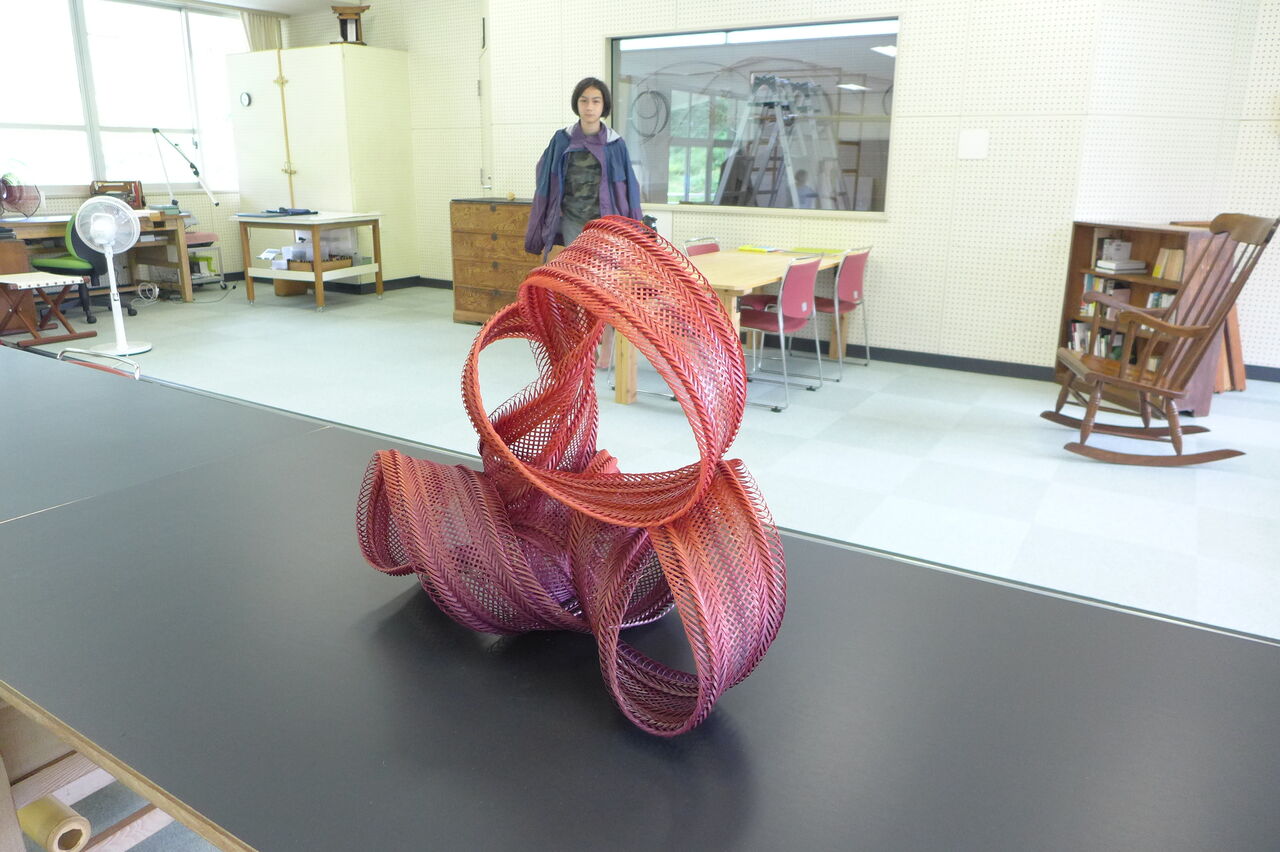 ベルリン・カメ真智子さん御一家、竹田総合学院を訪問、竹工芸家中臣一先生アトリエにて!