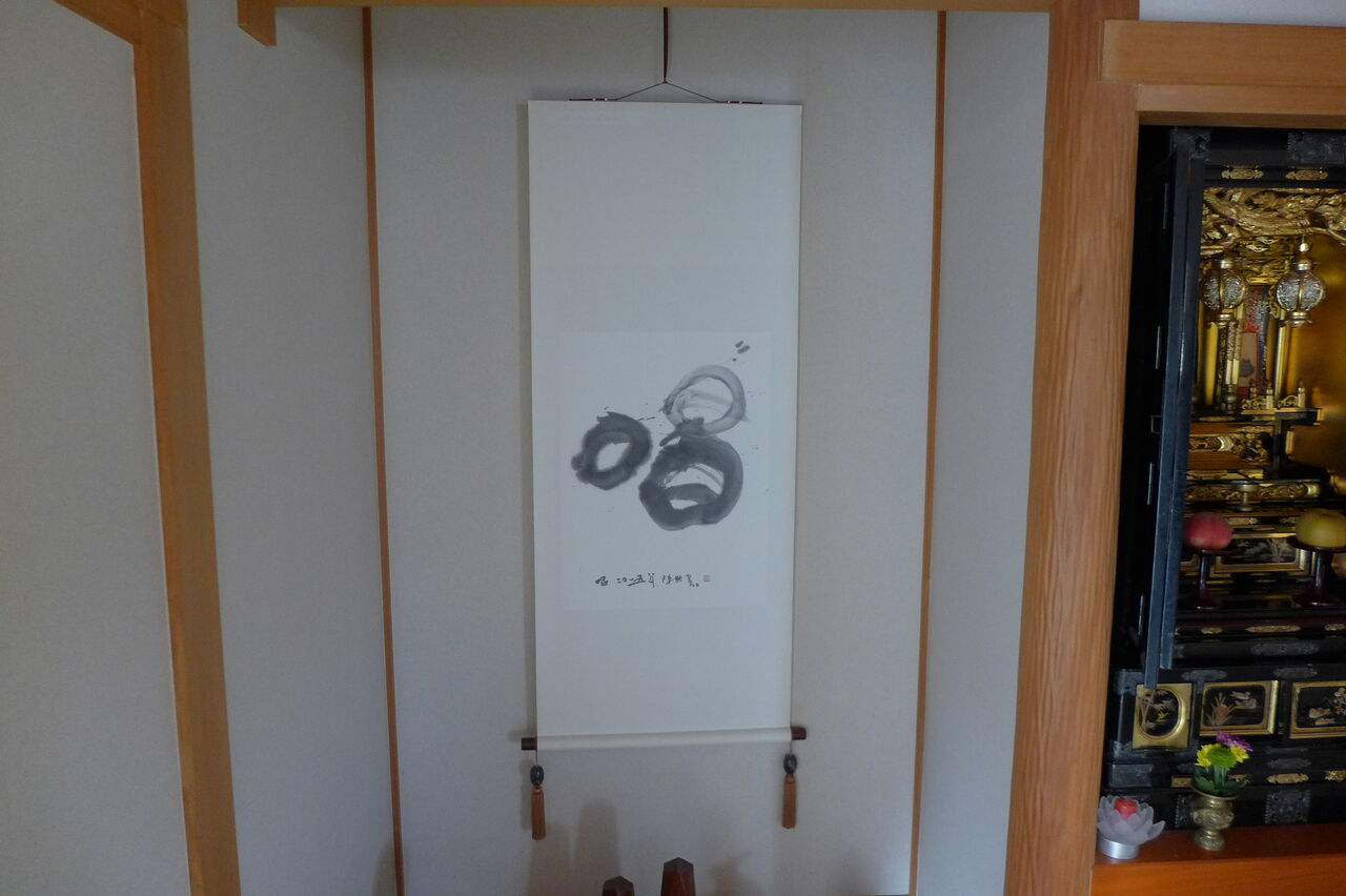 さすが!竹田市文化連盟会長田部朋二先生宅床の間御軸「唱」(台湾書家揮毫)に感じ入る❣️