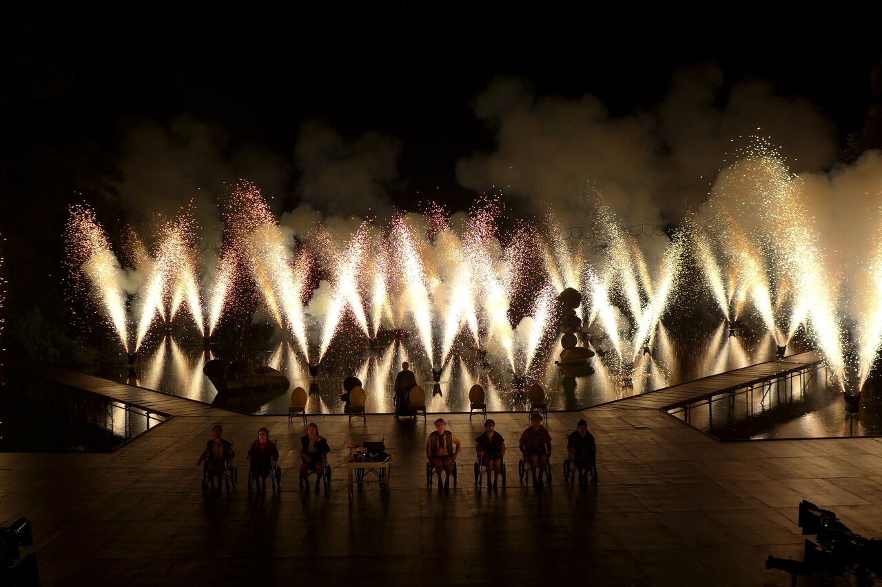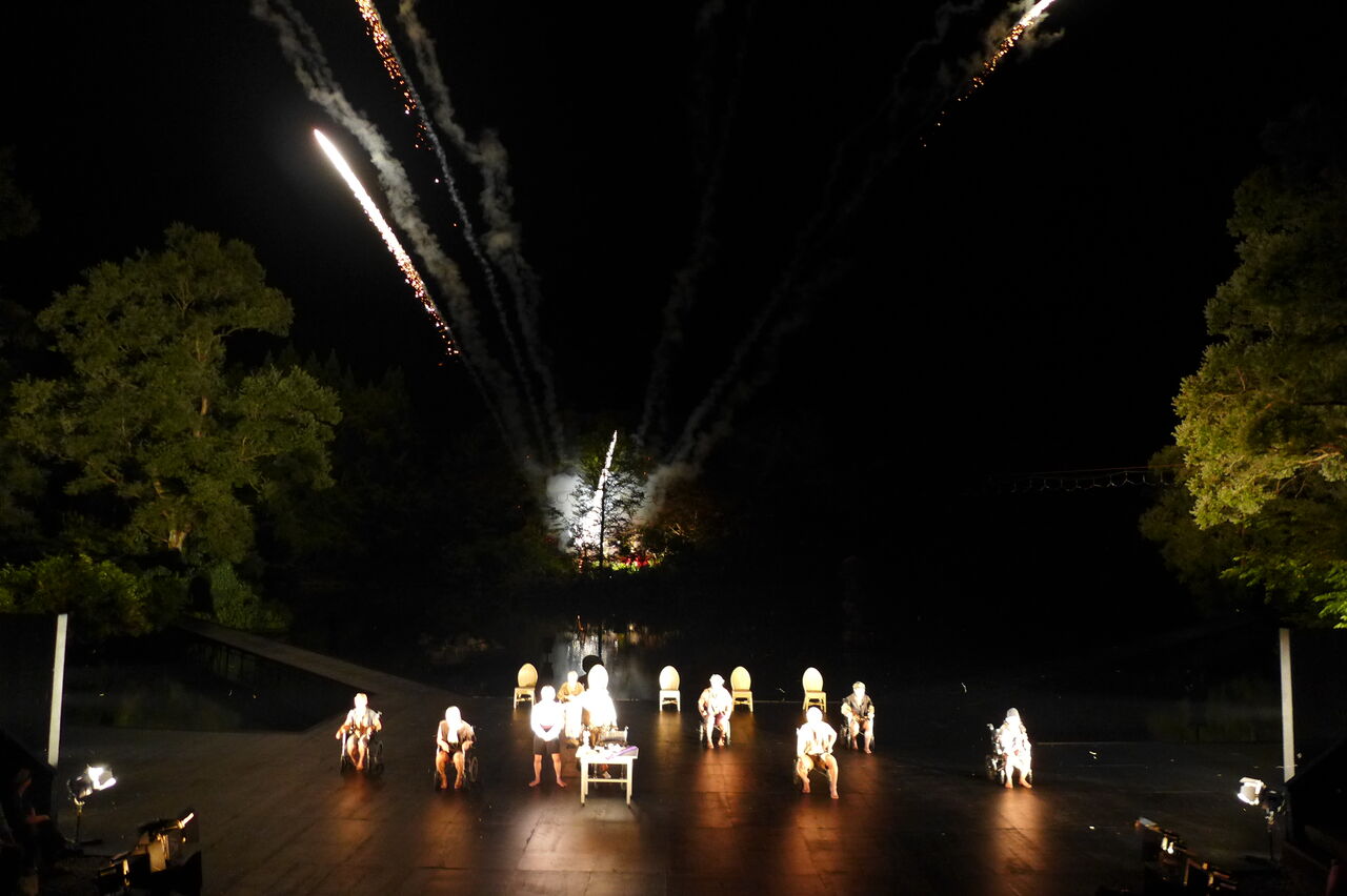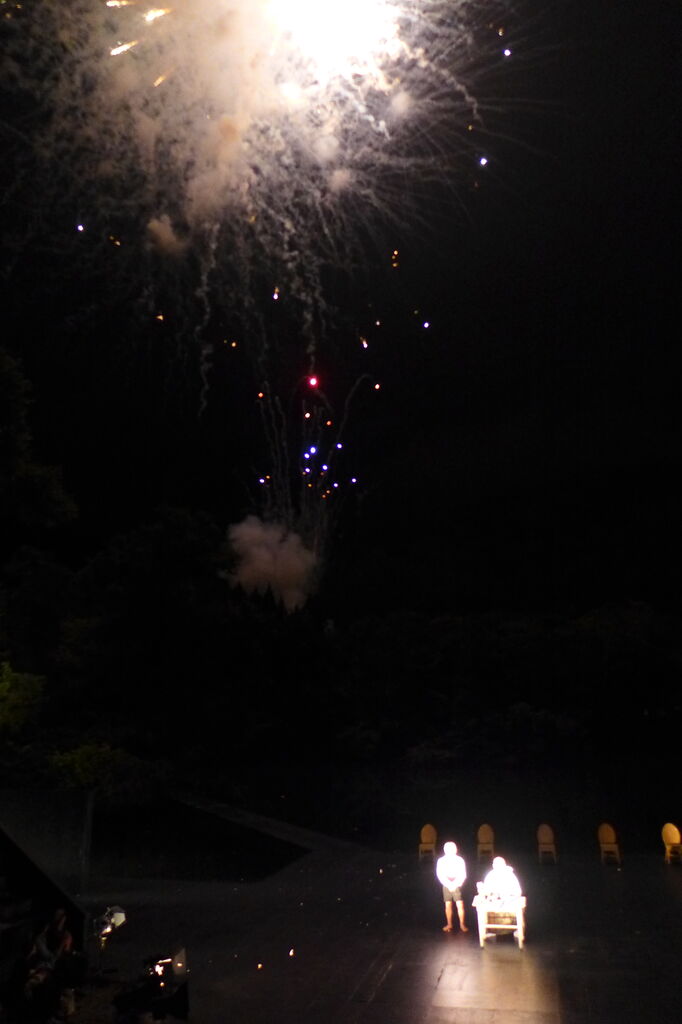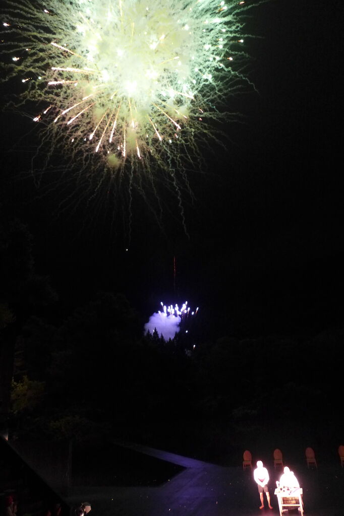 9月9日(土)16:00〜『ディオニソス』 於:利賀大山房、19:00〜『世界の果てからこんにちは』大花火付き、鑑賞後に鏡割り、役者のみなさんが精魂込めて育てられた伯爵カボチャ・ナス・赤ピーマンの鑑賞客への贈答 於:野外劇場