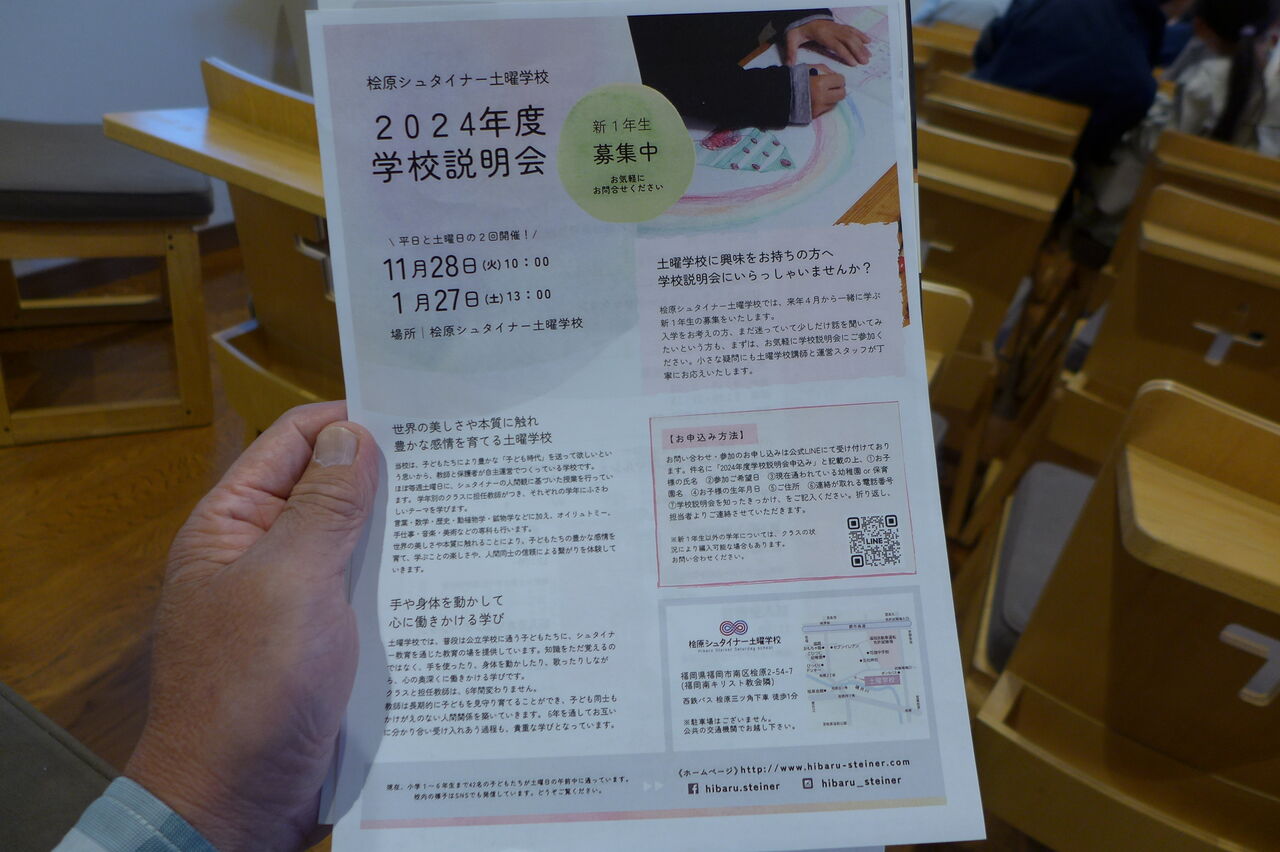 そして小さい頃の東京シュタイナーシューレ時代の思いで話も意義深いものでした。小規模クラスだったにもかかわらず、こどもたちが世間や他人の評価とは別の、子どもたち同士がお互いの長所(ピアノ、ダンス、歌、絵画、語彙力、などなど)を認め合い自主性を育みあって遊びを創り出していた、それが大人になって今の職業(歌手、メキシコ在住陶芸家、コンテンポラリーダンサー、大学の先生などなど)になっていますね、というお話はいたって感動的でした。こどもを大人が自分達に都合よくつくるのではなく、こどもはこども同士が相互に自主性を伸ばし合いながら感覚も伸ばしている、とのお話もまた!今日のお話が緩やかに伝播しながら生み出す福岡の地での豊かな実りのことが期待されます。