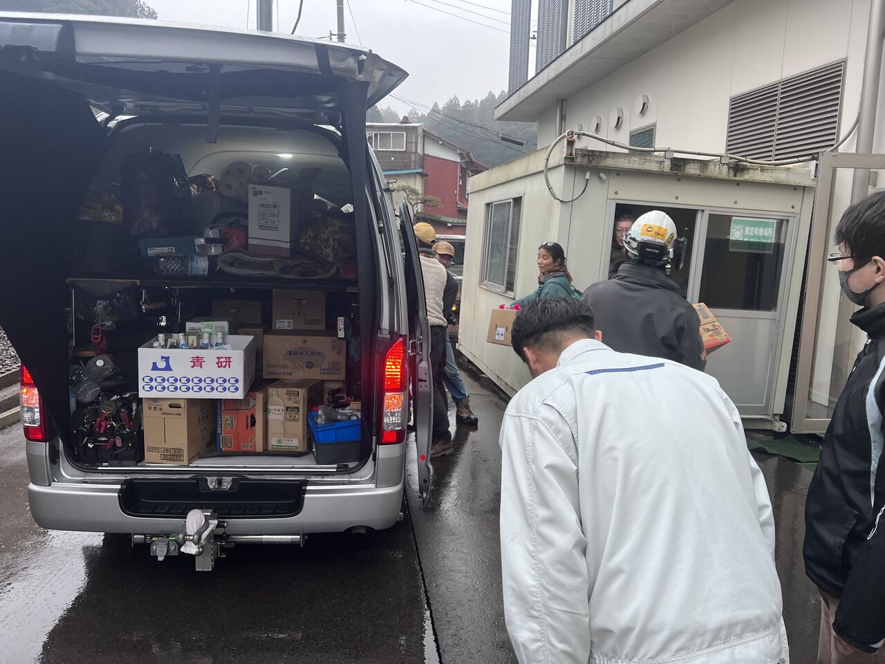 ・物資は、穴水町までは届きつつあるが、能登町などは道路状況もあり避難所まで届いていない。本日、夜に能登町役場の避難所では、菓子パンとみかんが配られていた。その後、屋外で炊き出し(汁物)が配られ避難者が並ぶ姿が見られた。炊き出しをもらう器がなく、食べたカップ麺の容器を持っていた方も。