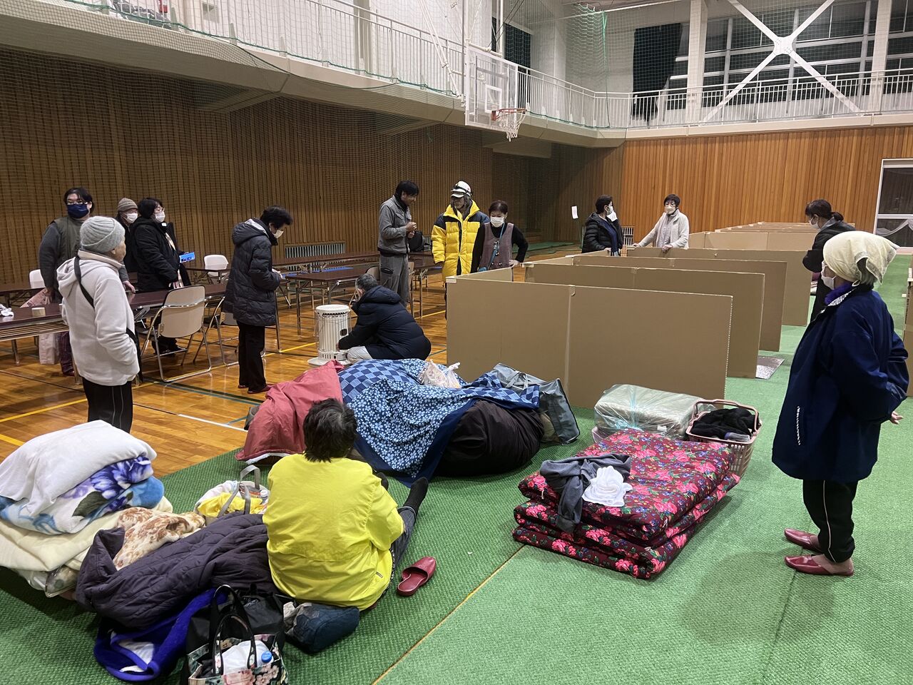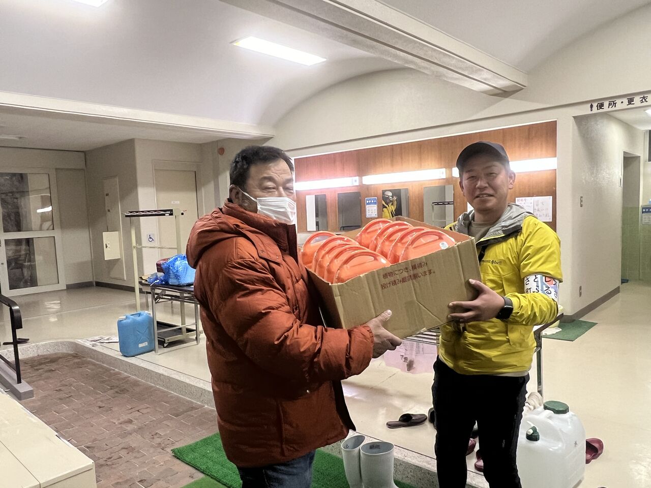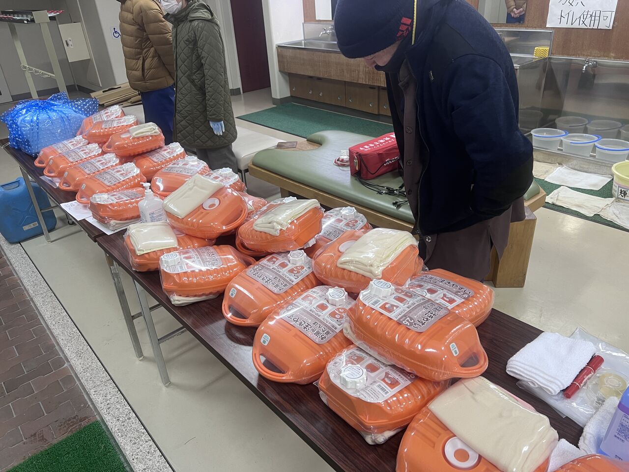 ・避難所の「ホテルのときんぷら」の避難者が、本日向かいの体育館に移動した(約15名程度)。ホテルは暖房があったものの、体育館は寒いため、湯たんぽを30個を支援。避難所移動のため1日のルール作りをサポートした。朝と夜は避難者で食事を調理するそうで、行政から食糧(おにぎりやパン)の支援は不要とのこと。