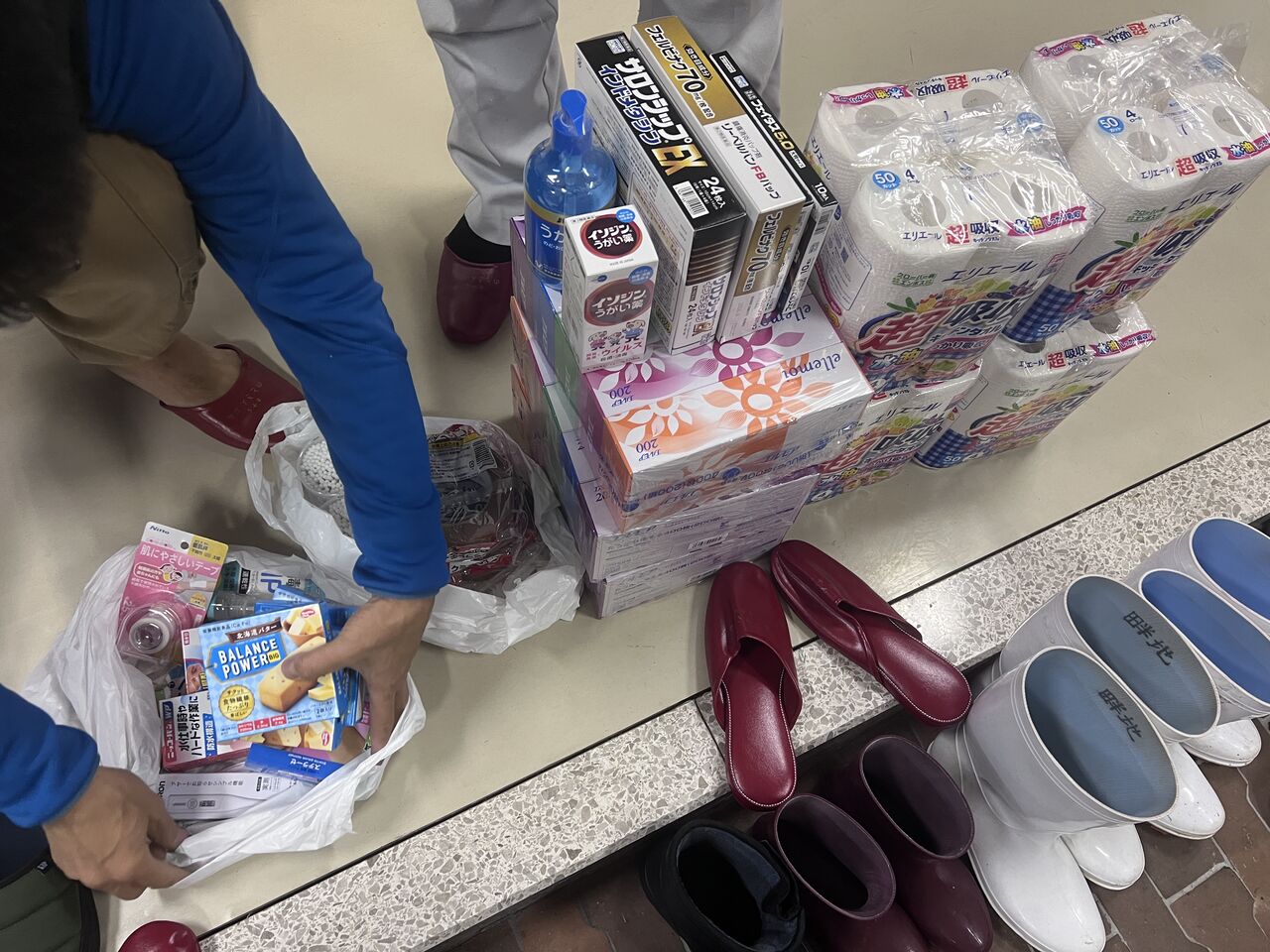・スマートサプライにて、避難者から依頼があった敷き毛布や救急セット、キッチン周りの消耗品(キッチンペーパー)等を七尾市で購入し、ホテルのときんぷらの避難者へお渡し。スマートサプライに掲載してすぐに100%の達成率に。ご支援に感謝します。