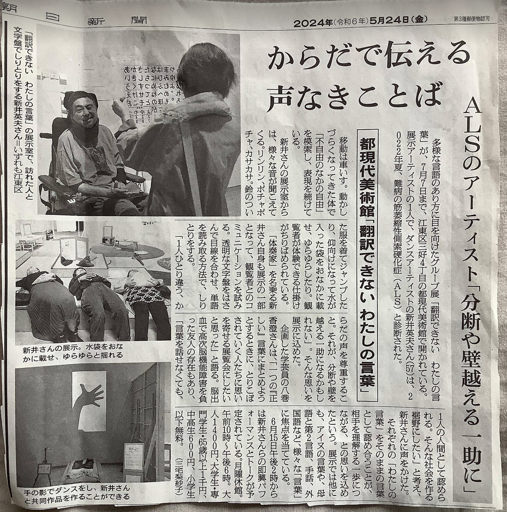 身体表現を続けてきた新井さんにとって、ALSの告知は「絶望だった」。今も受け入れているつもりでも、ひどく落ち込むこともある。