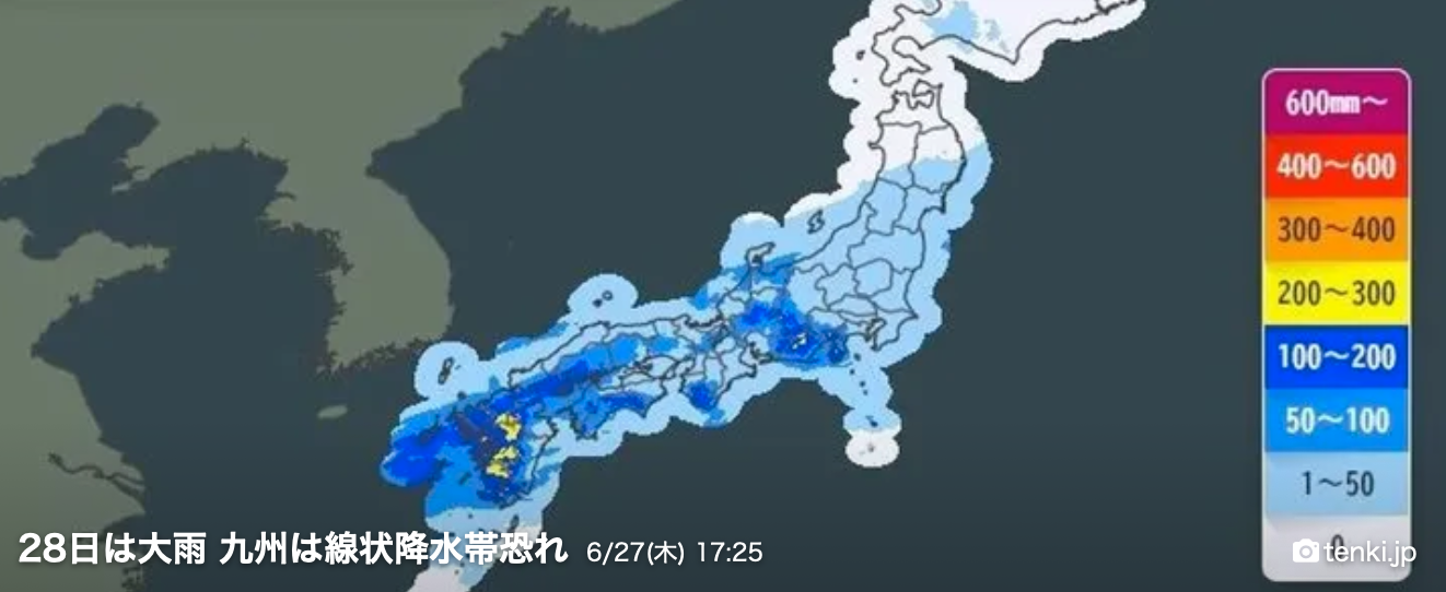 今日は6月27日(木)、すでに福岡では朝から雨となっており、九州北部では明日へかけて大雨となっていく模様です。