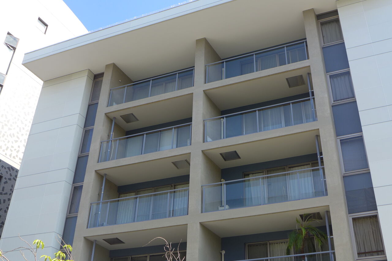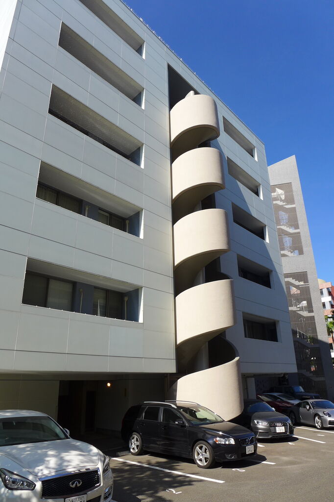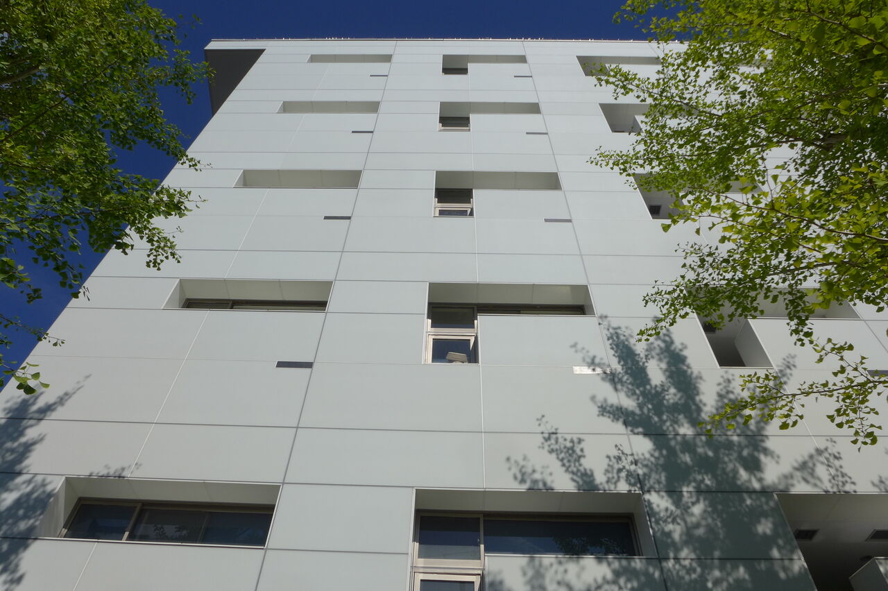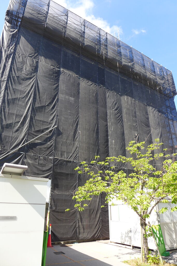 20240812朝日で香椎浜ネクサスワールド・ポルザンパルク棟の改修白壁が光り輝く!