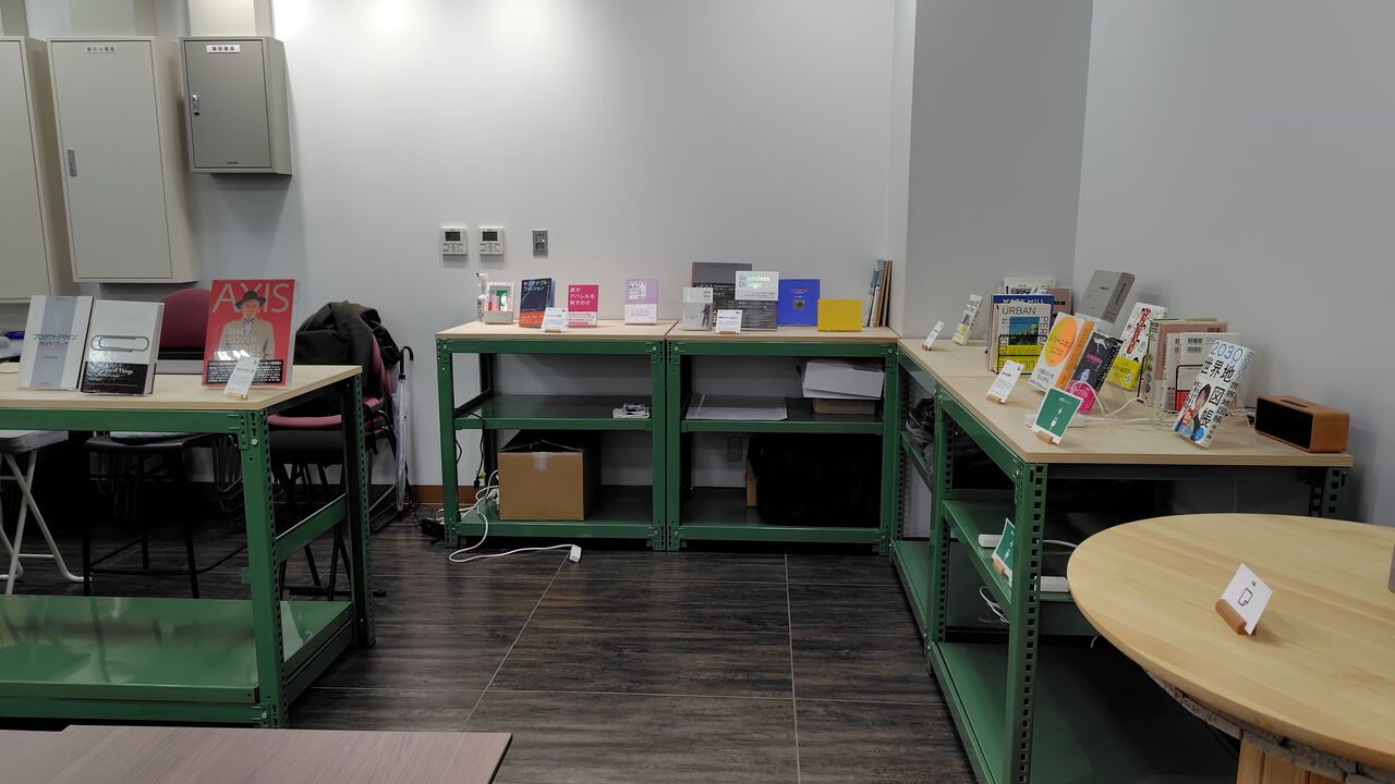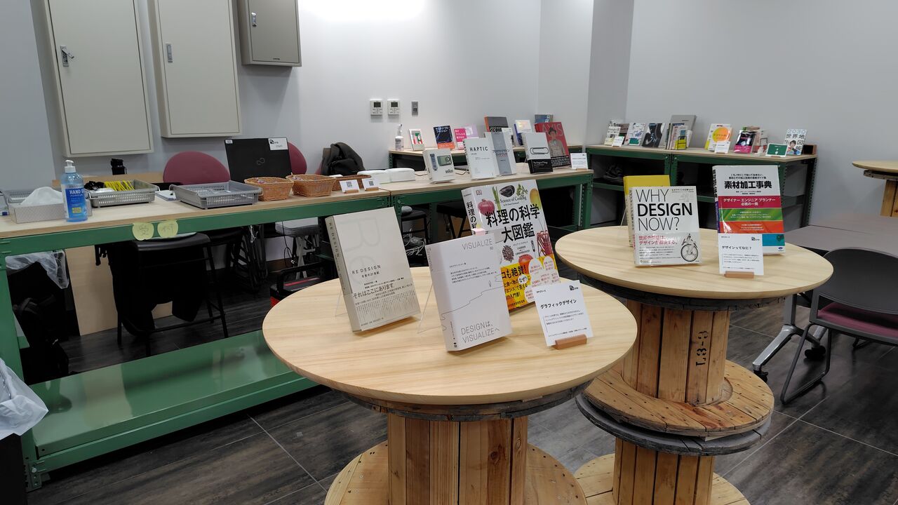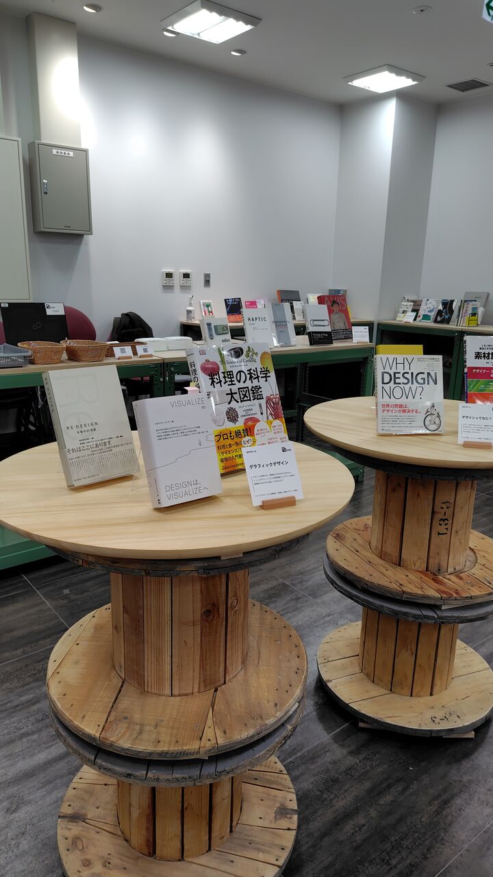 職員の方に伺ったところ、この高校生待合室を企画したデザイン会社が所有している本ということでした。